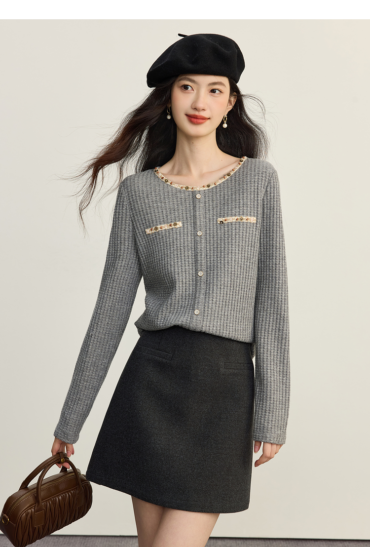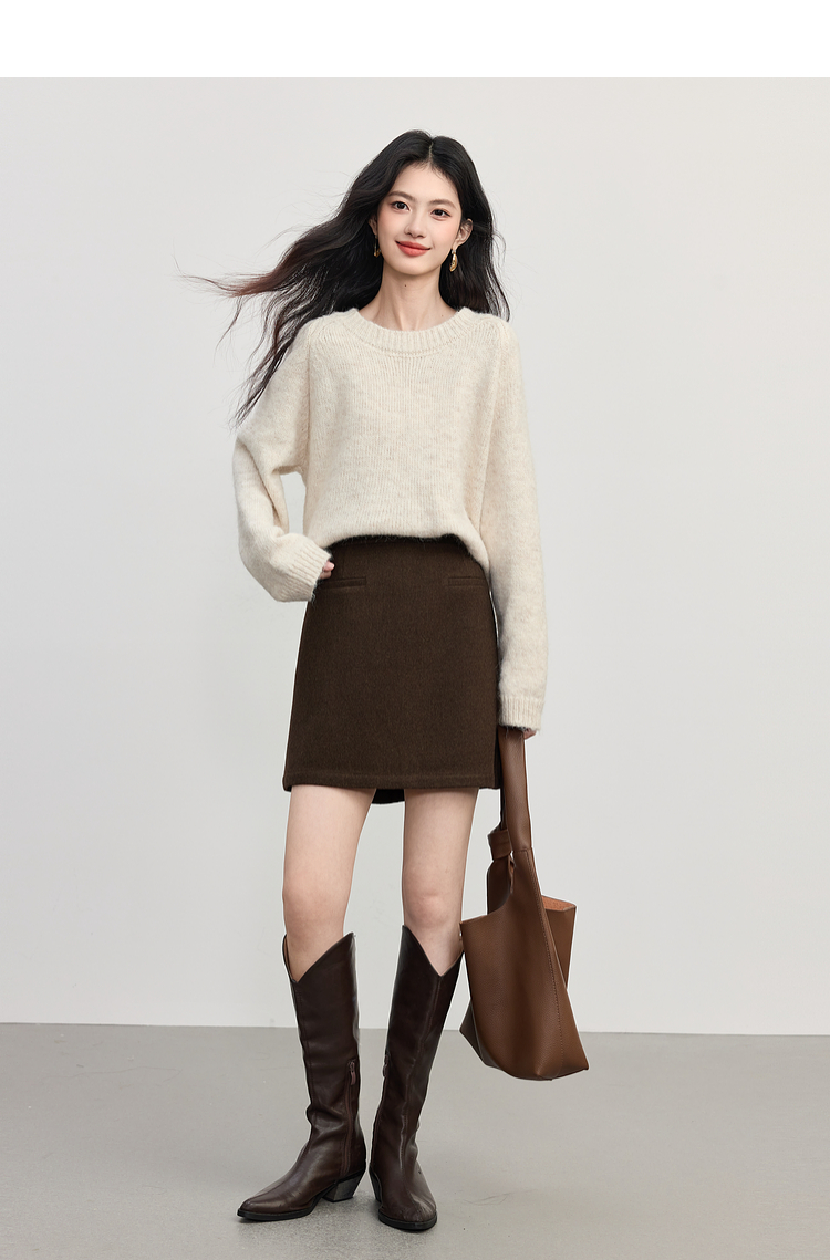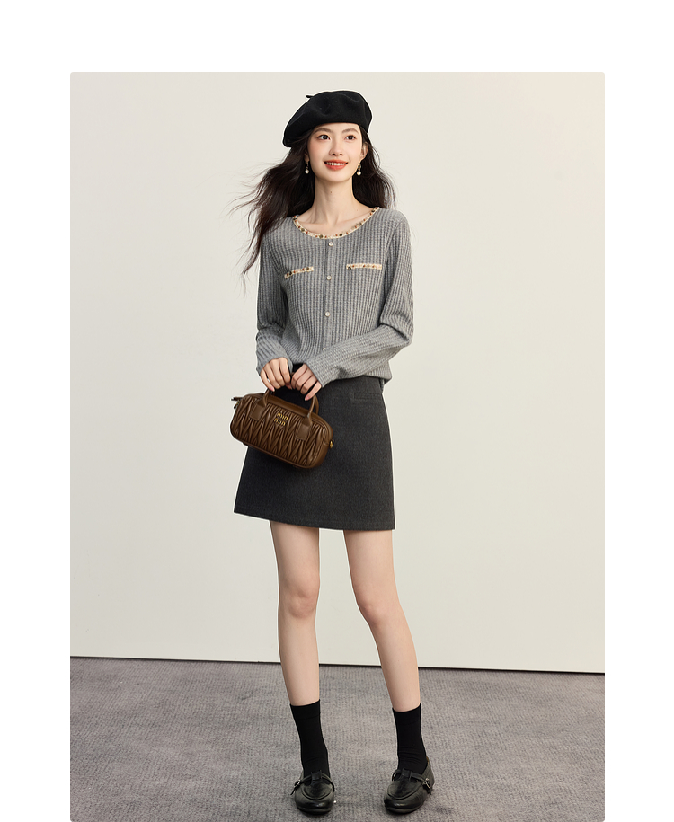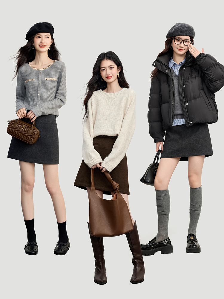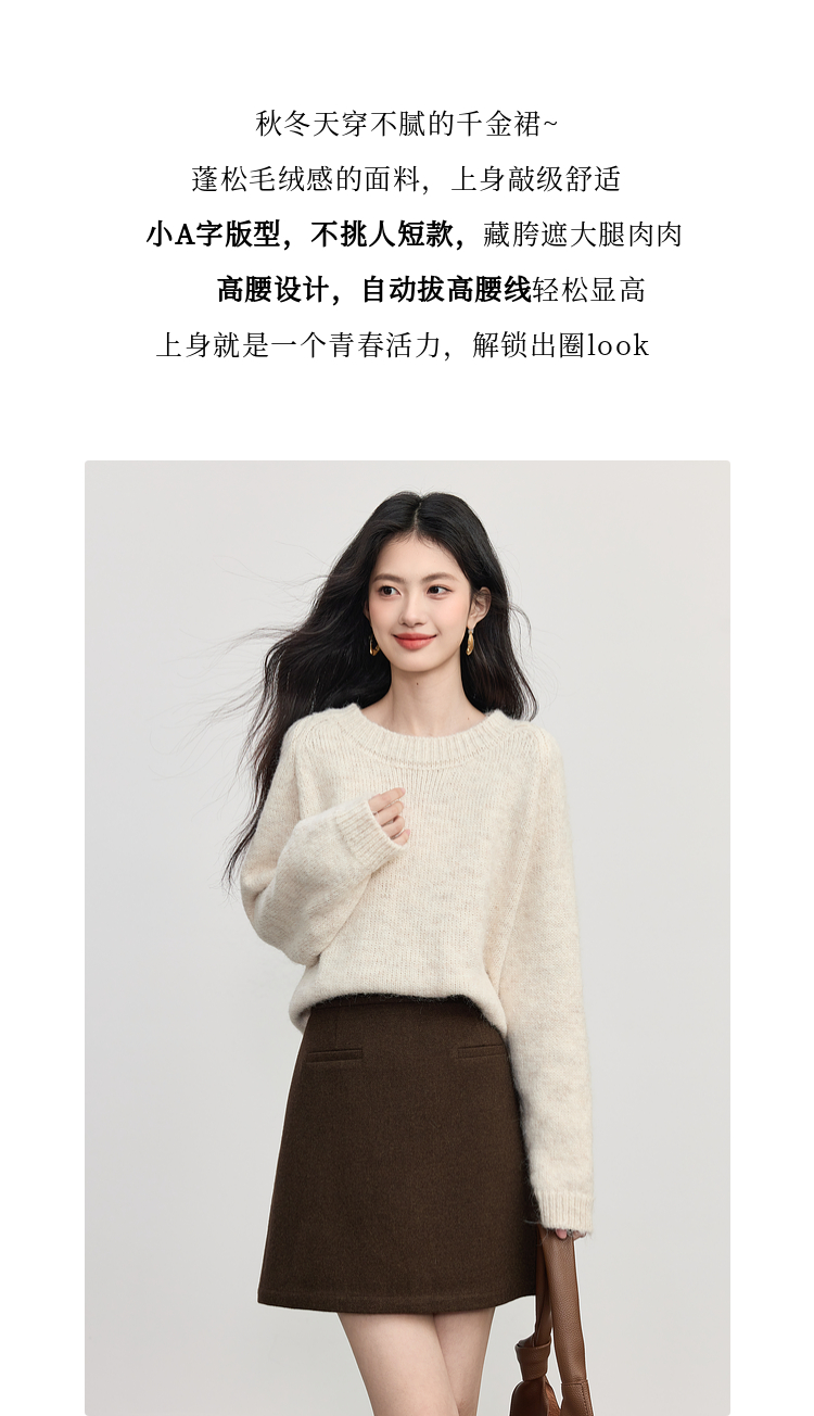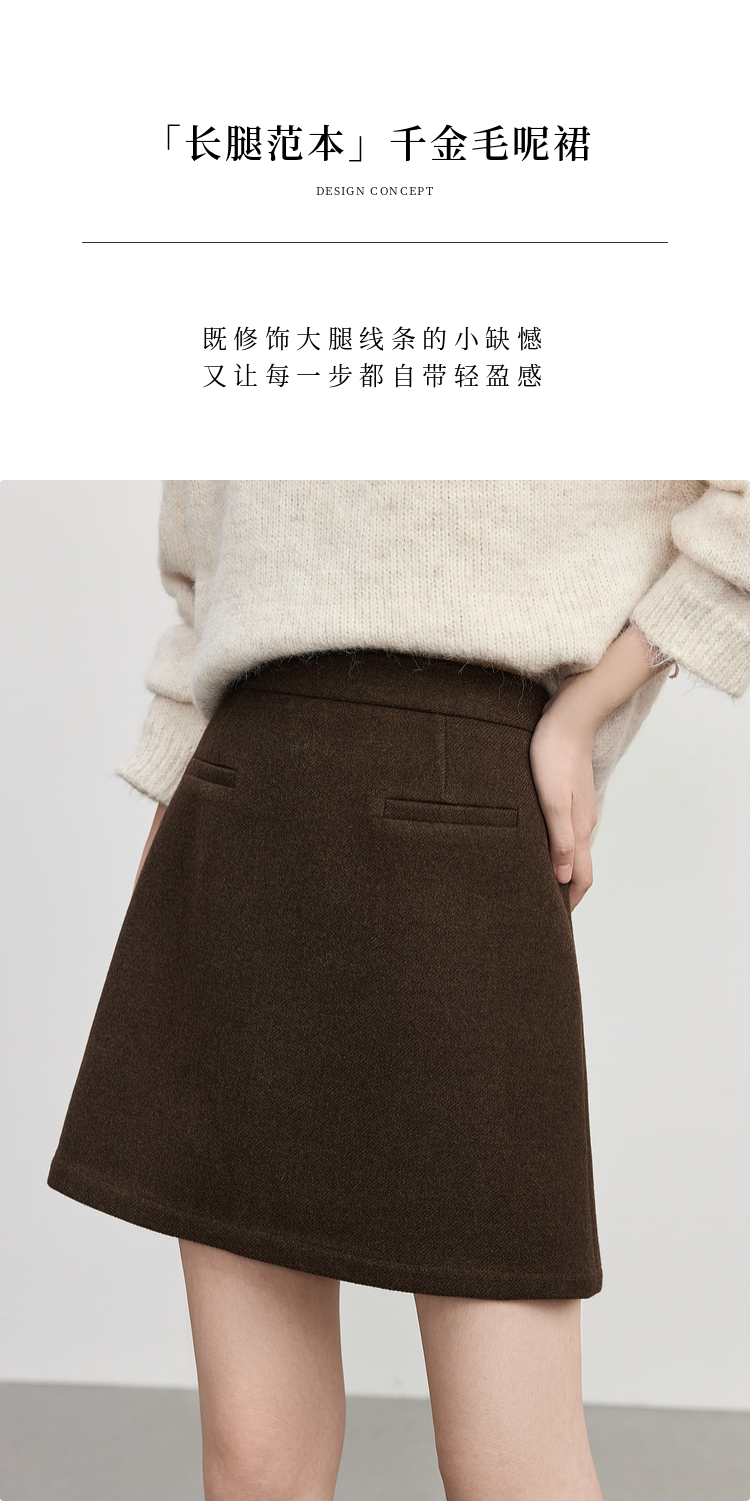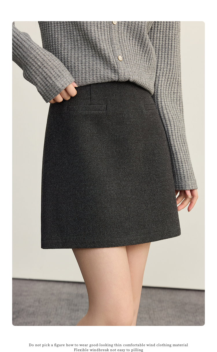 【09/17新品】熙世界【灰色千金裙】毛呢包臀短裙子女2025秋冬款通勤a字半身裙