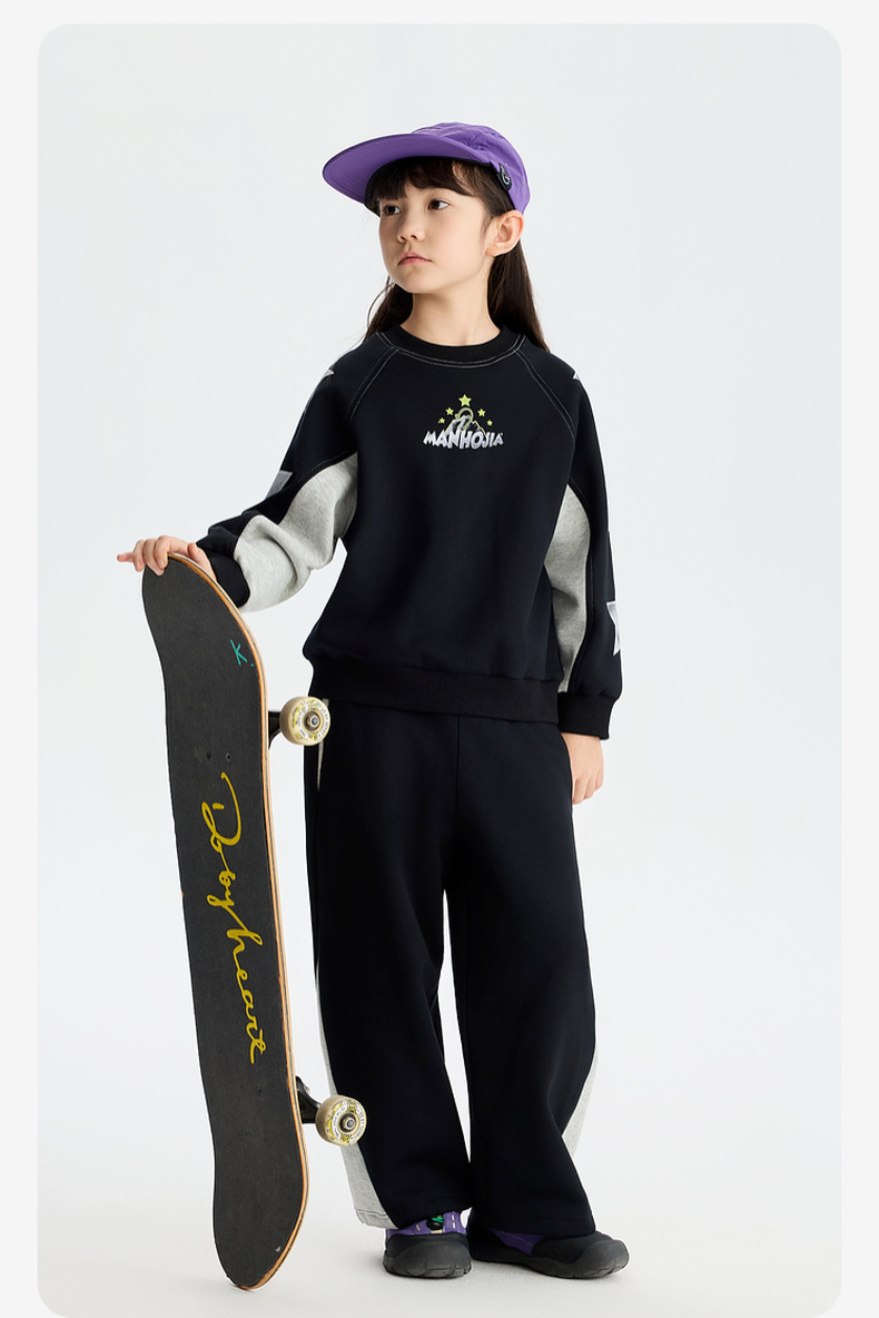 漫画家【拼色运动卫裤】儿童运动裤冬新品男女松紧腰拼色耐磨卫裤