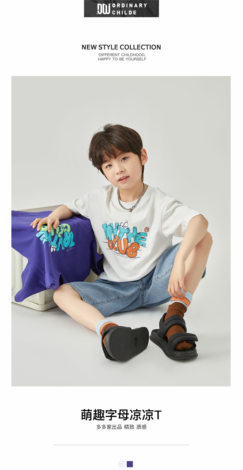【团购价35元】多多家童装男童T恤2024夏季新款纯棉透气印花短袖儿童中大童夏装9369