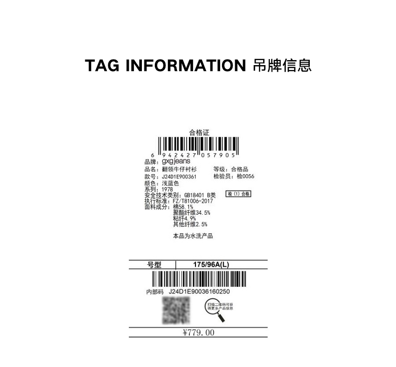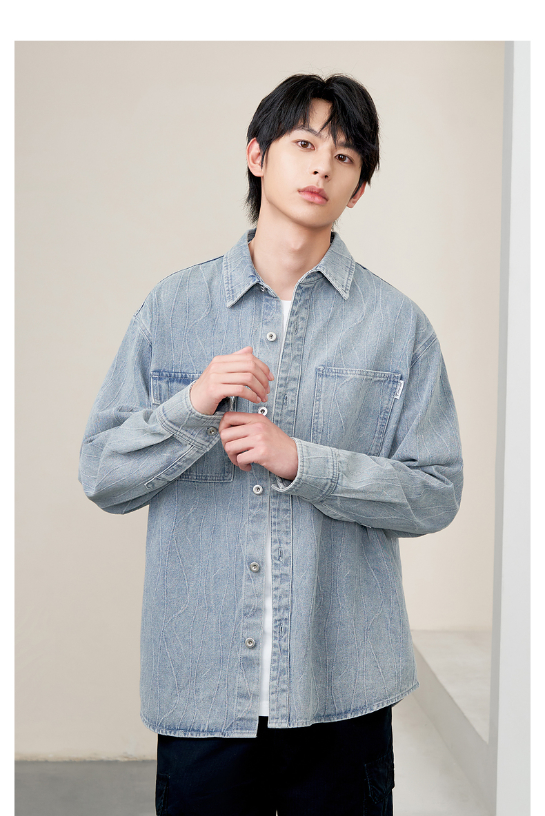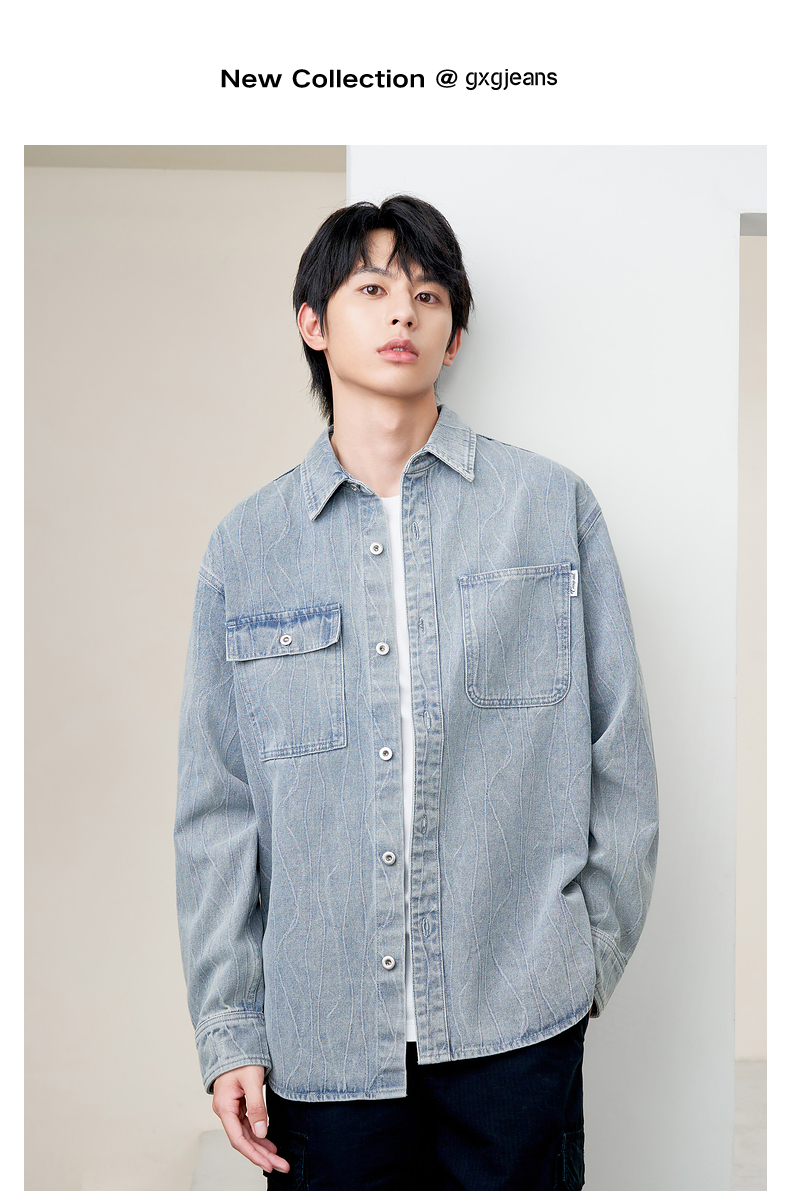 gxg.jeans男装2024年春季热卖翻领牛仔衬衫J24D1E900361