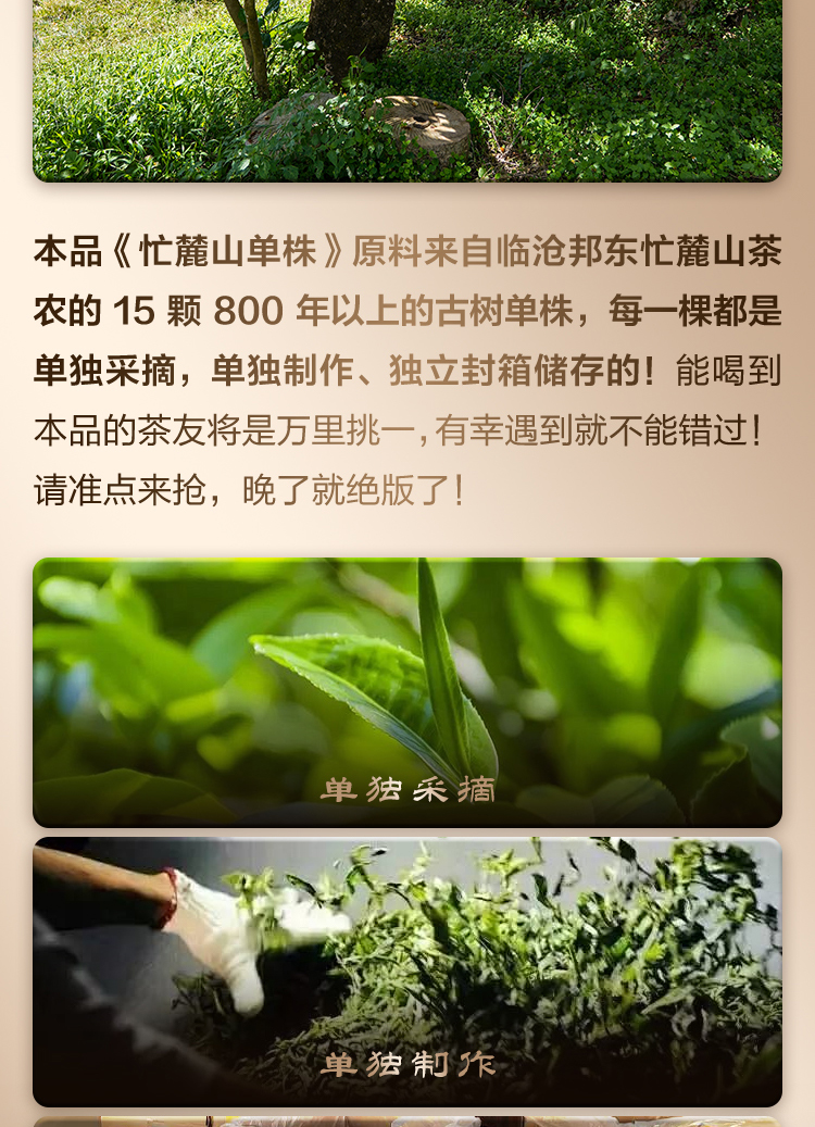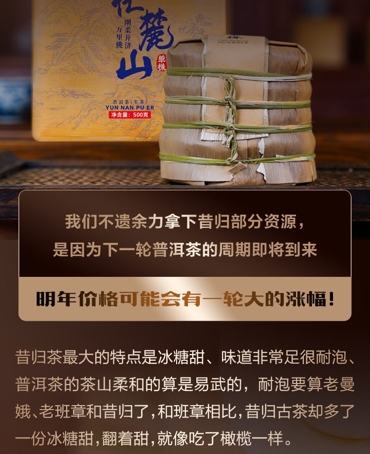【忙麓山单株】茶界内质王 临沧茶王忙麓山 1类单株超大型古树 2023年头春临沧茶区昔归普洱茶800年古树生茶饼100g