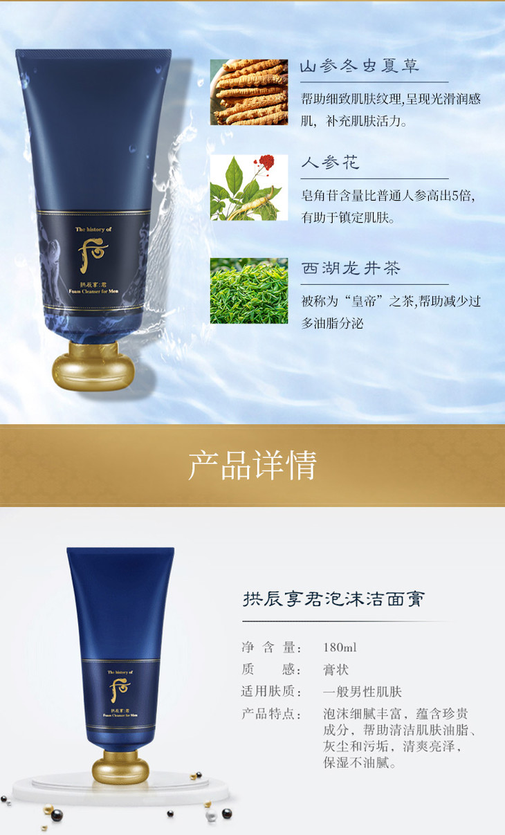 后.拱辰享男士洁面膏 180ml 氨基酸洁颜膏深层清洁去黑头