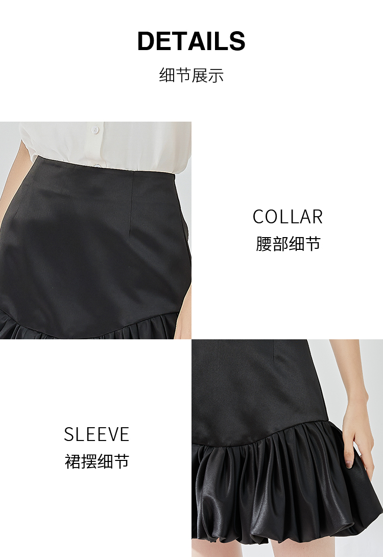 oldcolour黑色半身裙春季新款高腰复古A字显瘦中长裙女P11064408