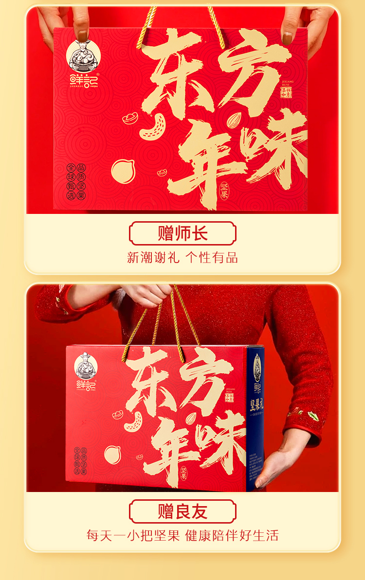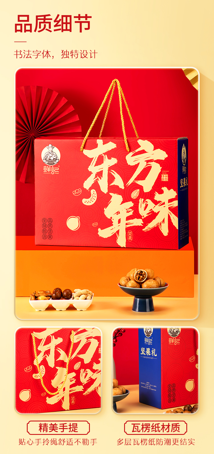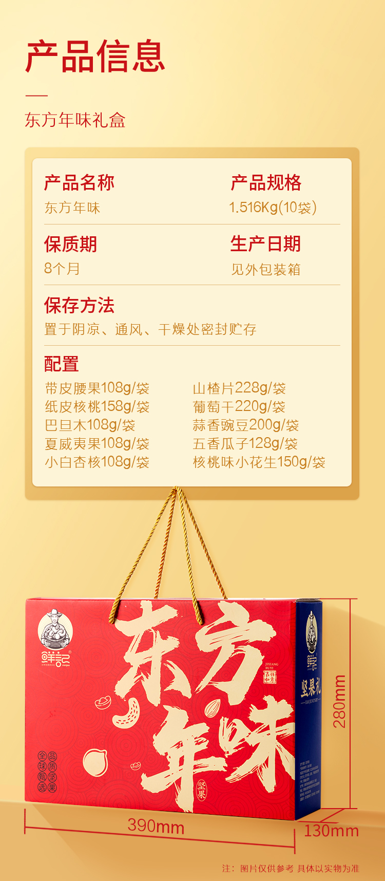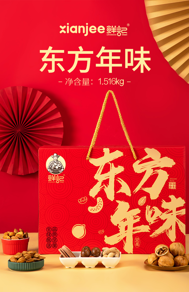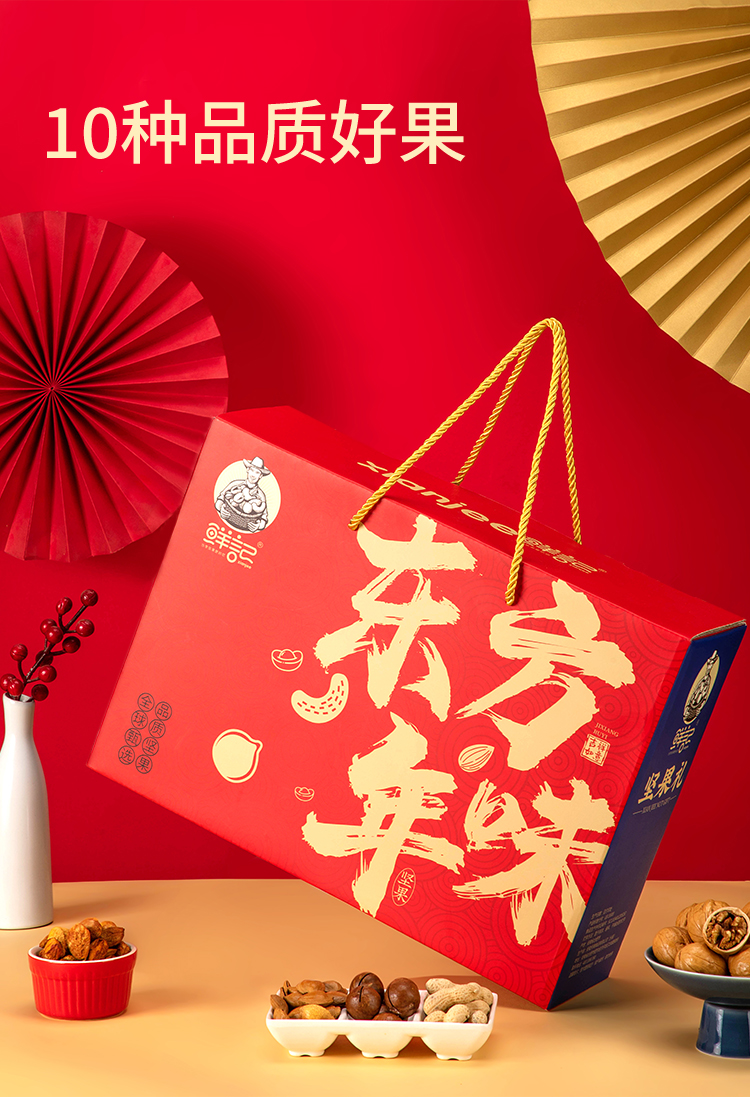 鲜记 东方年味坚果礼 健康礼盒 10袋装 1.516kg 休闲零食 干果组合 48小时发货