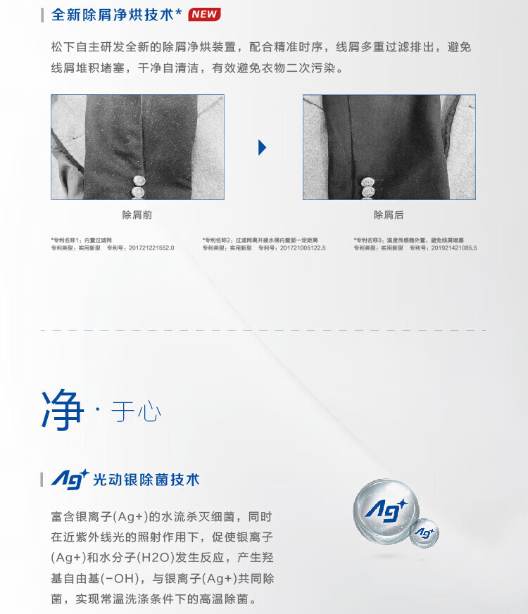 松下(Panasonic)10公斤洗烘一体滚筒洗衣机触控彩屏智能投放系统光动银除菌除屑烘技术纳诺怡护理 XQG100-EG186