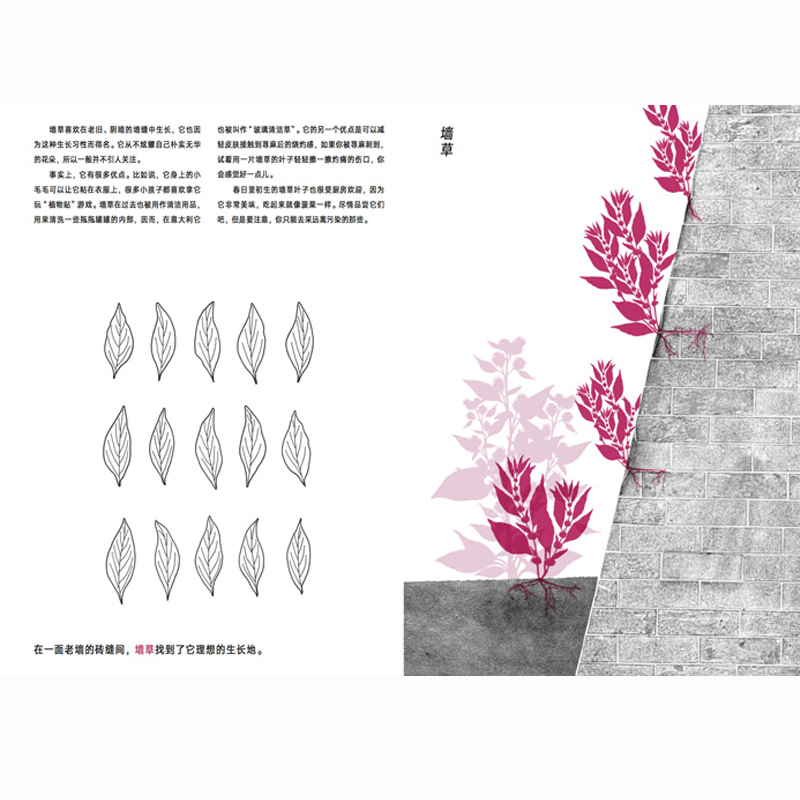 《墙角的森林》是一本写给小小自然观察员们观察自然、城市,欣赏植物非凡生命力的实用指南。这些植物是世界上最常见但最有趣的植物。地面潮湿的角落里,满是石子的荒地上,水泥地或柏油路的缝隙中,墙角或墙壁的砖缝间,铁轨边,屋顶上,甚至是下水道的井盖里,被人遗弃的旧花瓶中……都能发现它们的身影。它们生在贫瘠之地,但依旧充满元气和能量,勇敢生长、欣欣向荣。它们是谁?翻开图画书,它会告诉你它们的名字,带你发现它们的秘密。带上这本书,去你的城市里探索这些植物的存在吧。