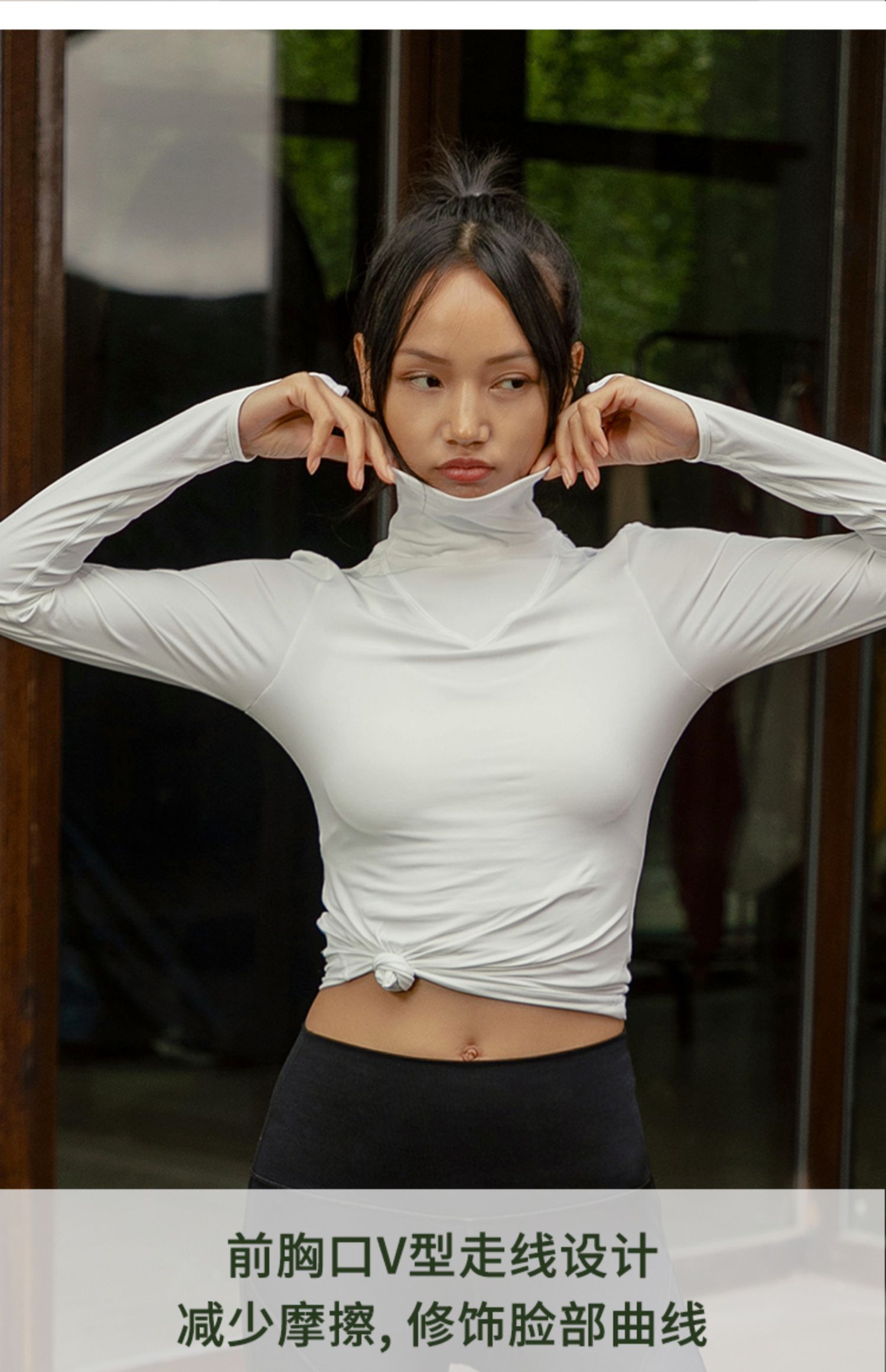 【裸感高弹】修身后背拼纱长袖