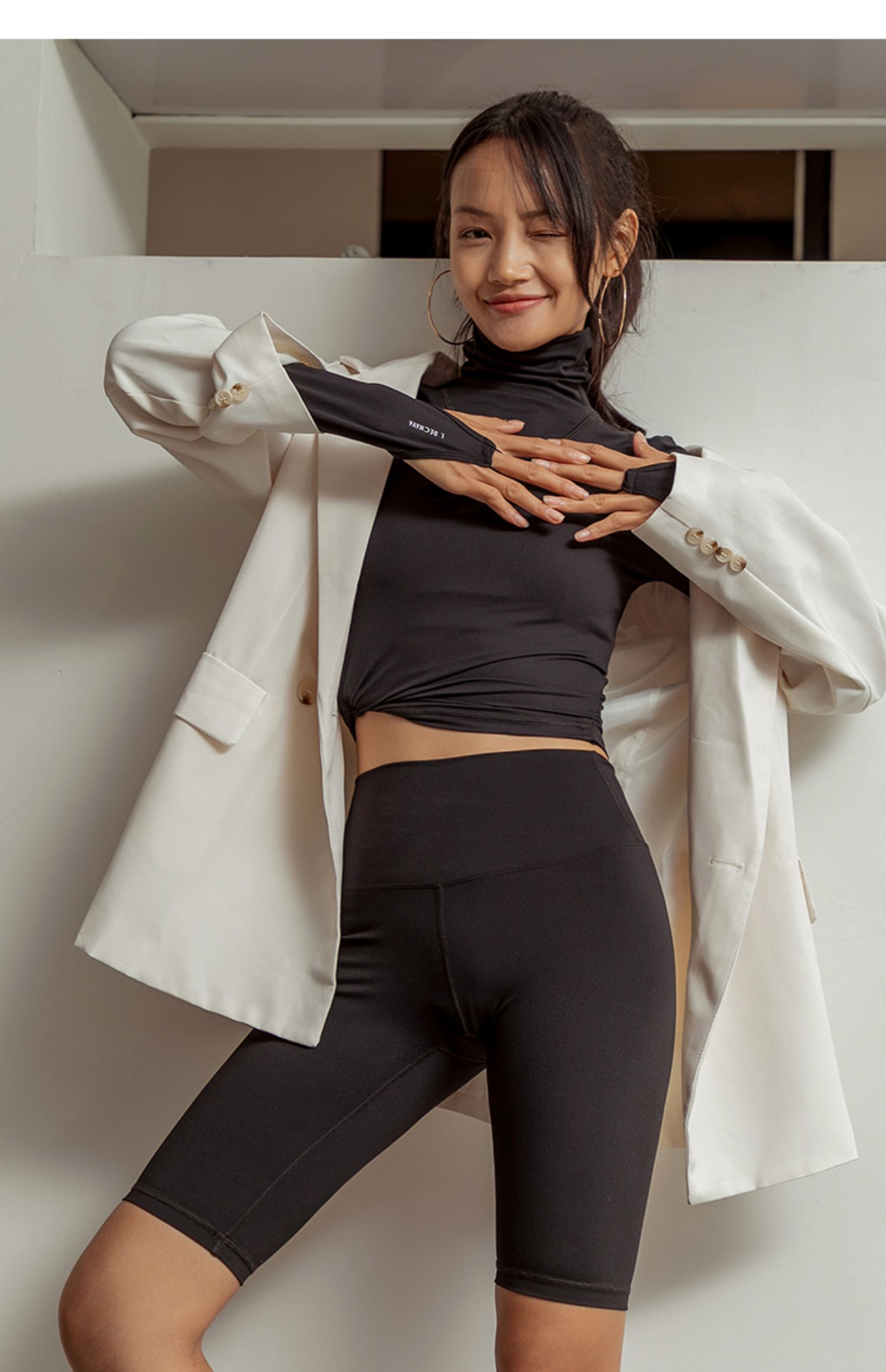 L RECNAVA [裸感] 高领 堆堆领 带手指扣 巨柔软运动长袖 秋冬内搭健身服