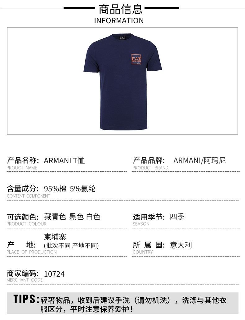 阿玛尼(ARMANI)男装 运动休闲夏季短袖圆领T恤 10724
