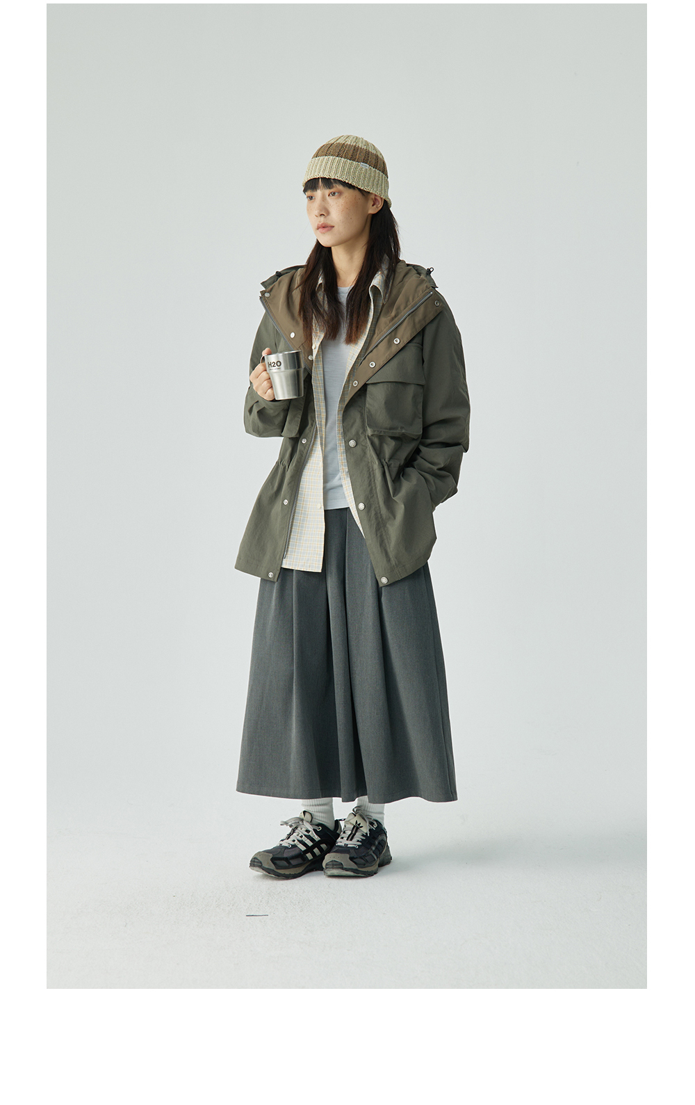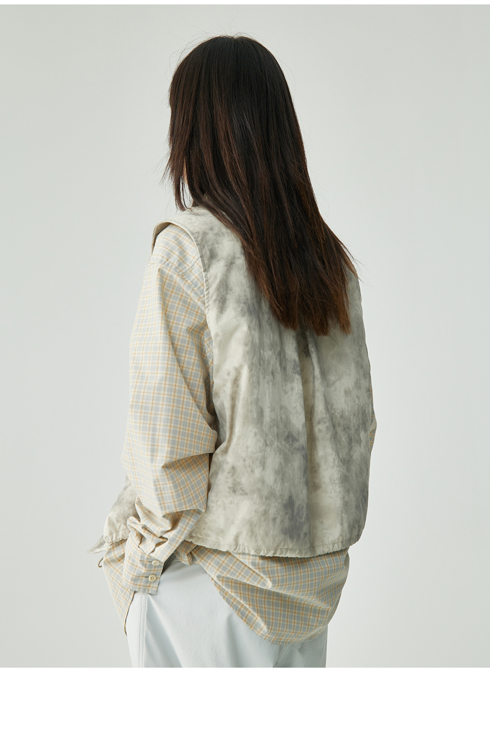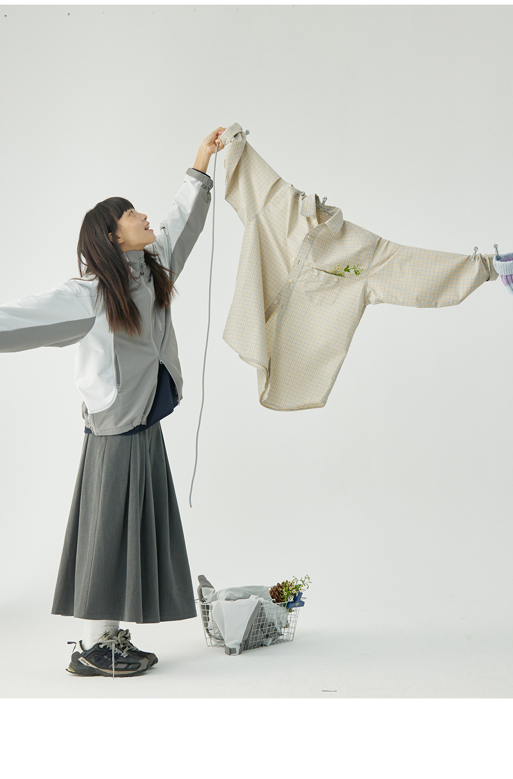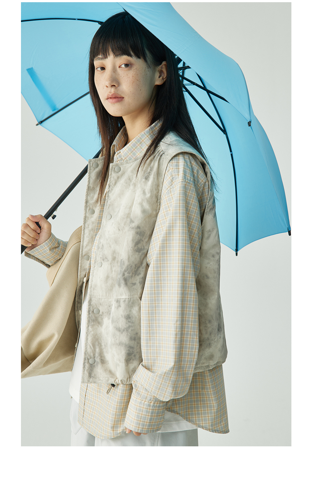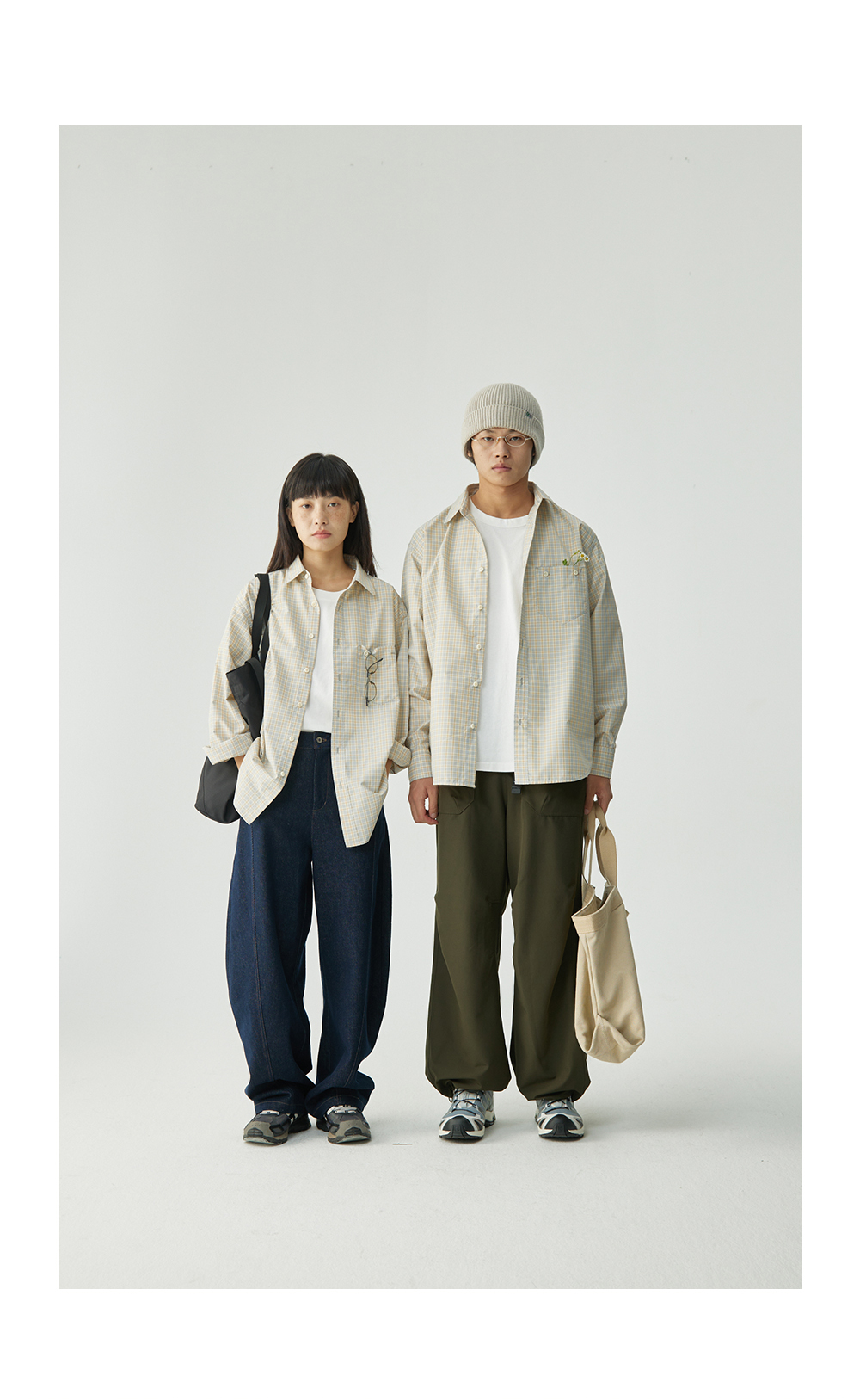 步履不停/4C11204C/复古清新翻领灰咖格子长袖衬衫