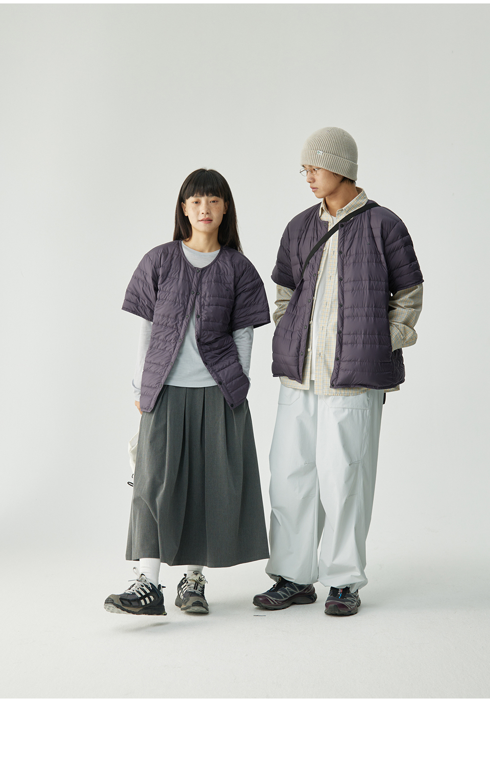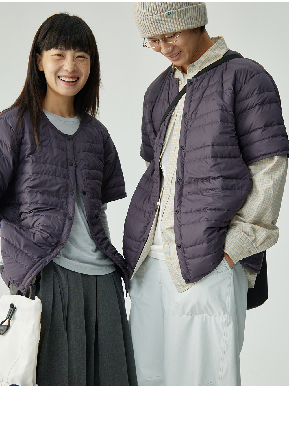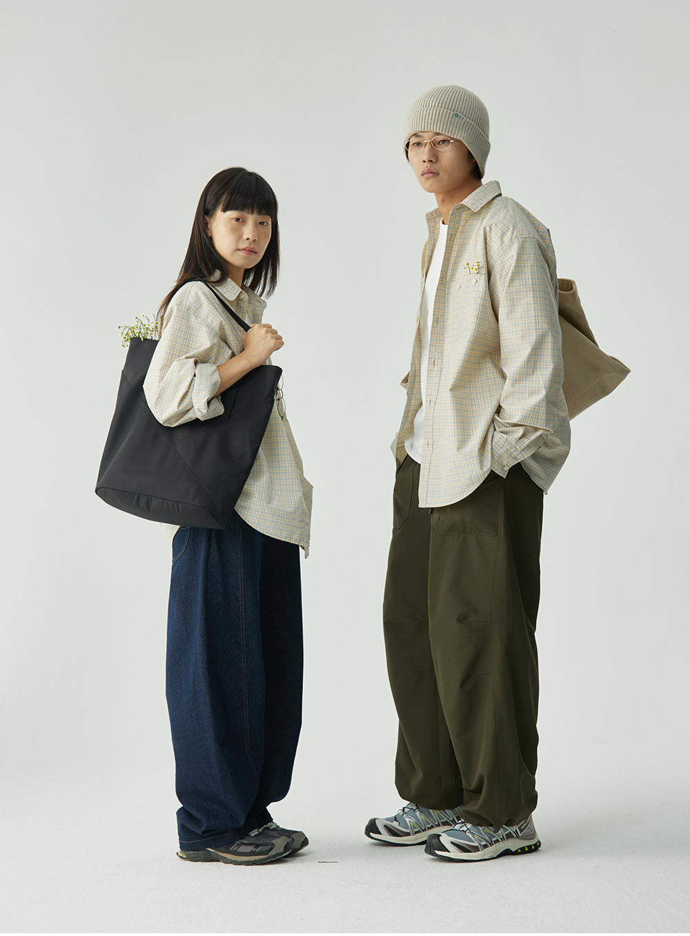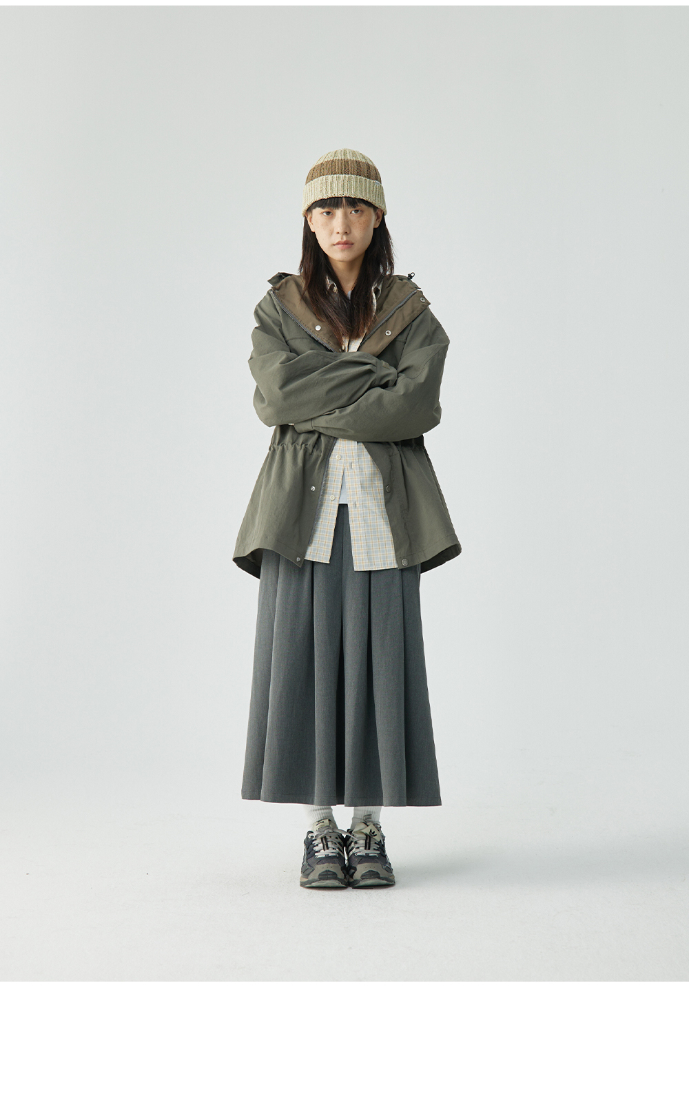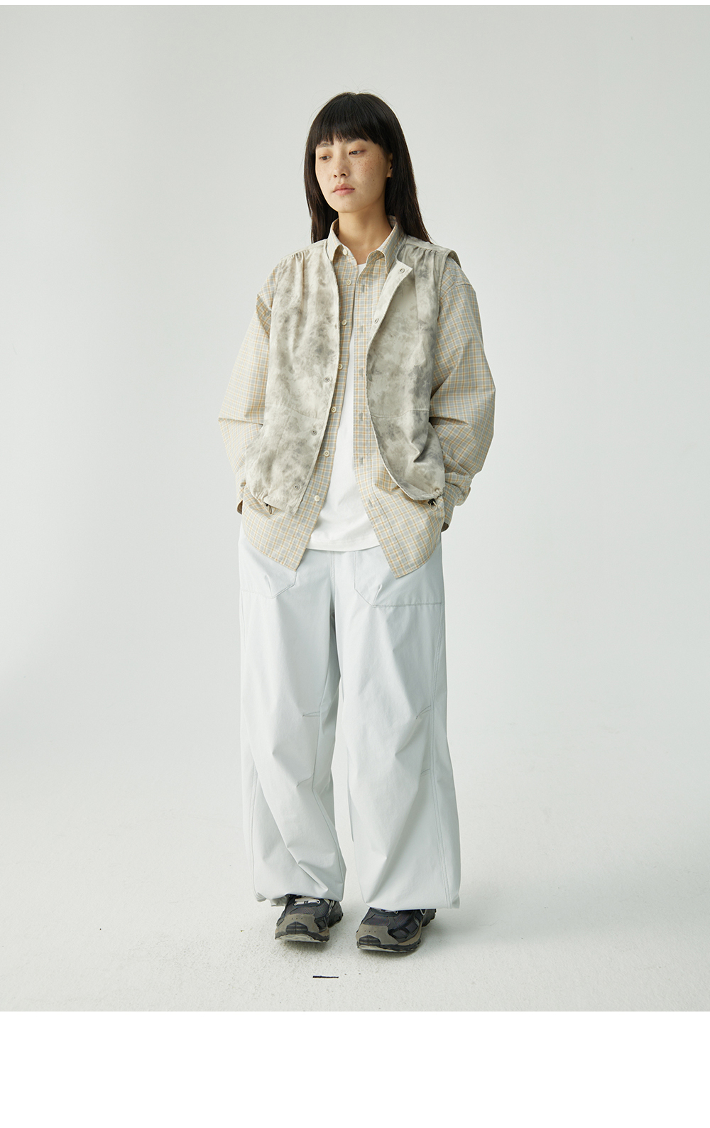 步履不停/4C11204C/复古清新翻领灰咖格子长袖衬衫