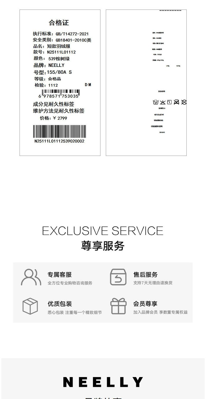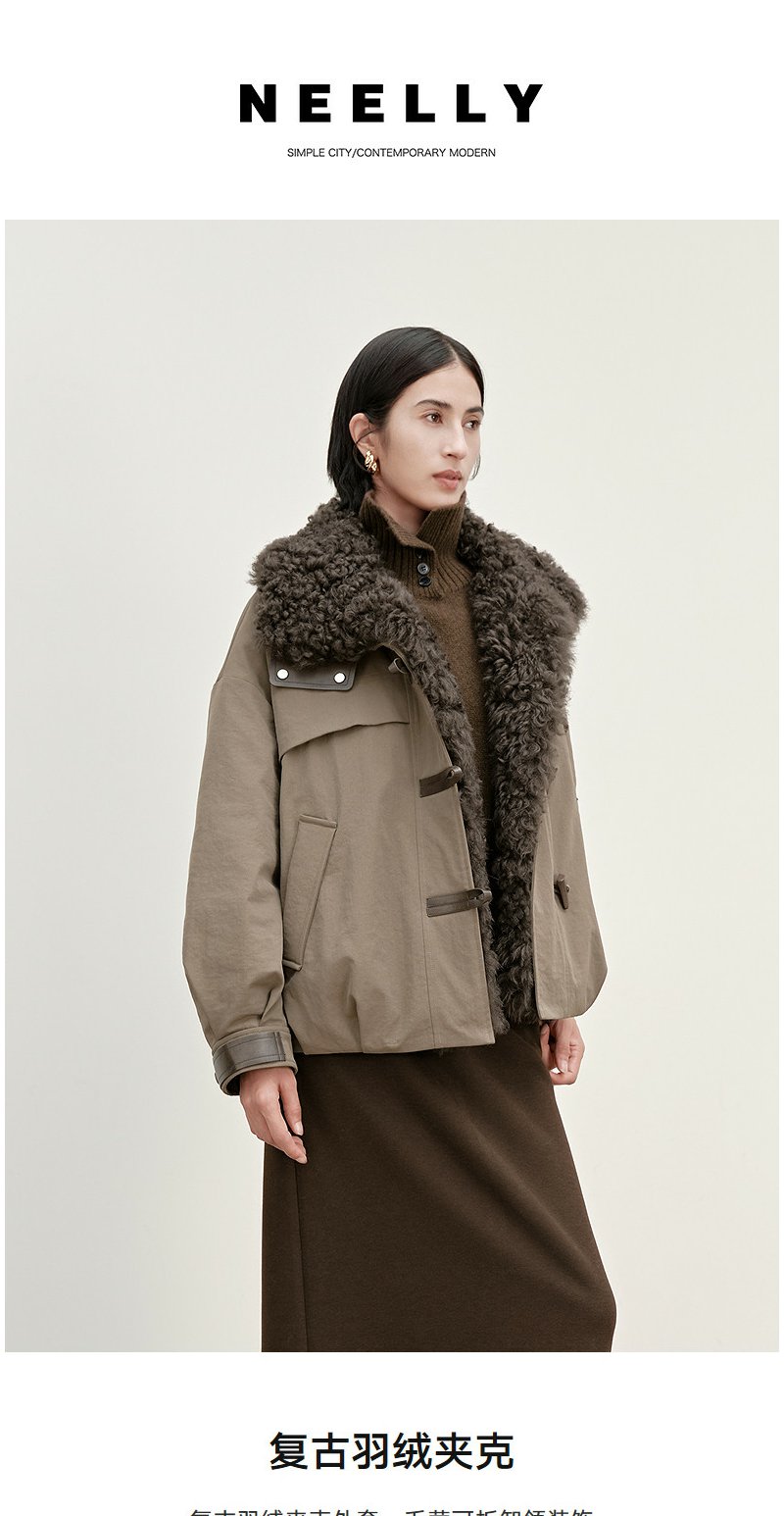 NEELLY纳俪商场同款冬季新款时尚复古羽绒夹克女百搭休闲保暖外套N25111L01112