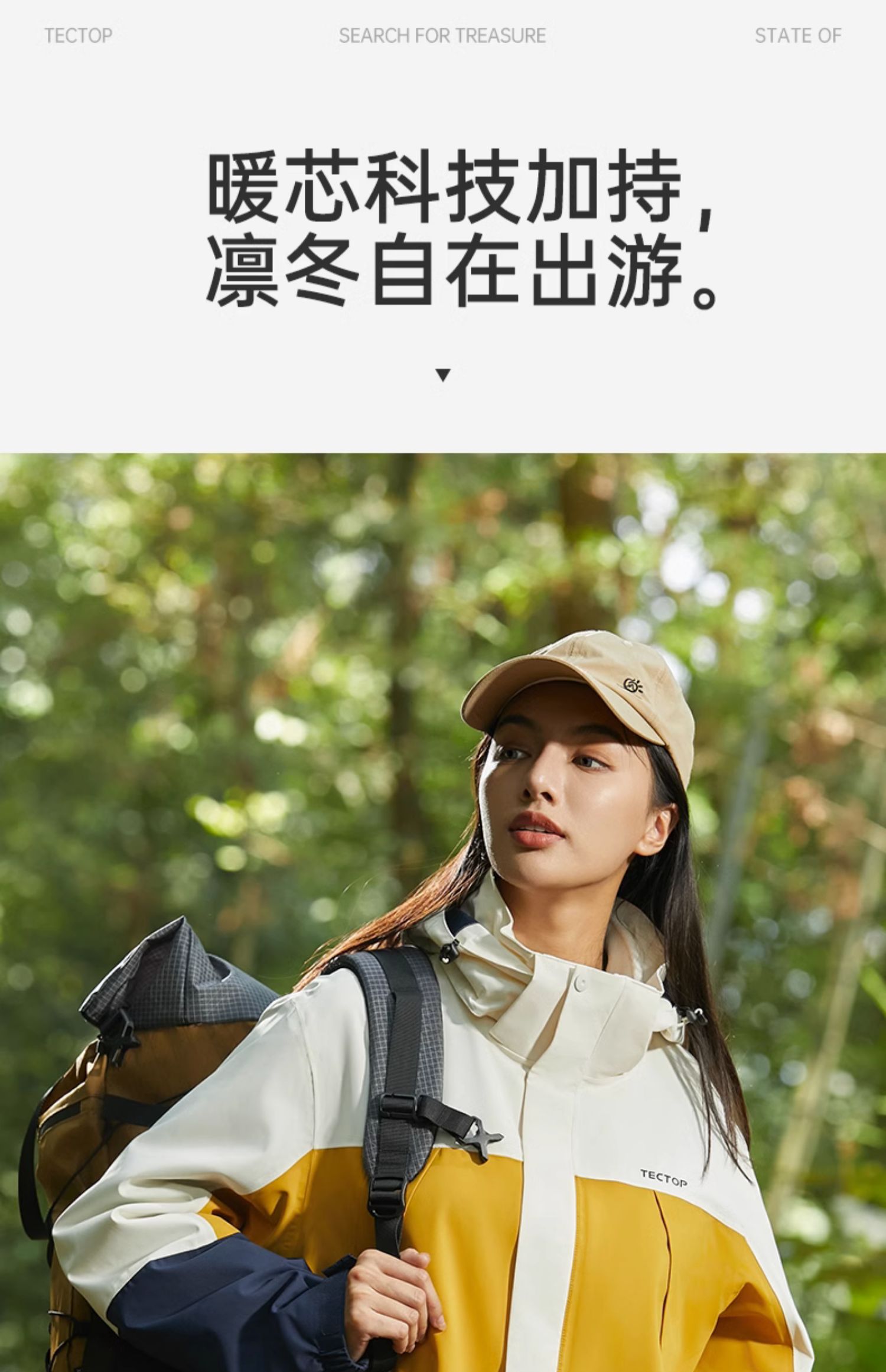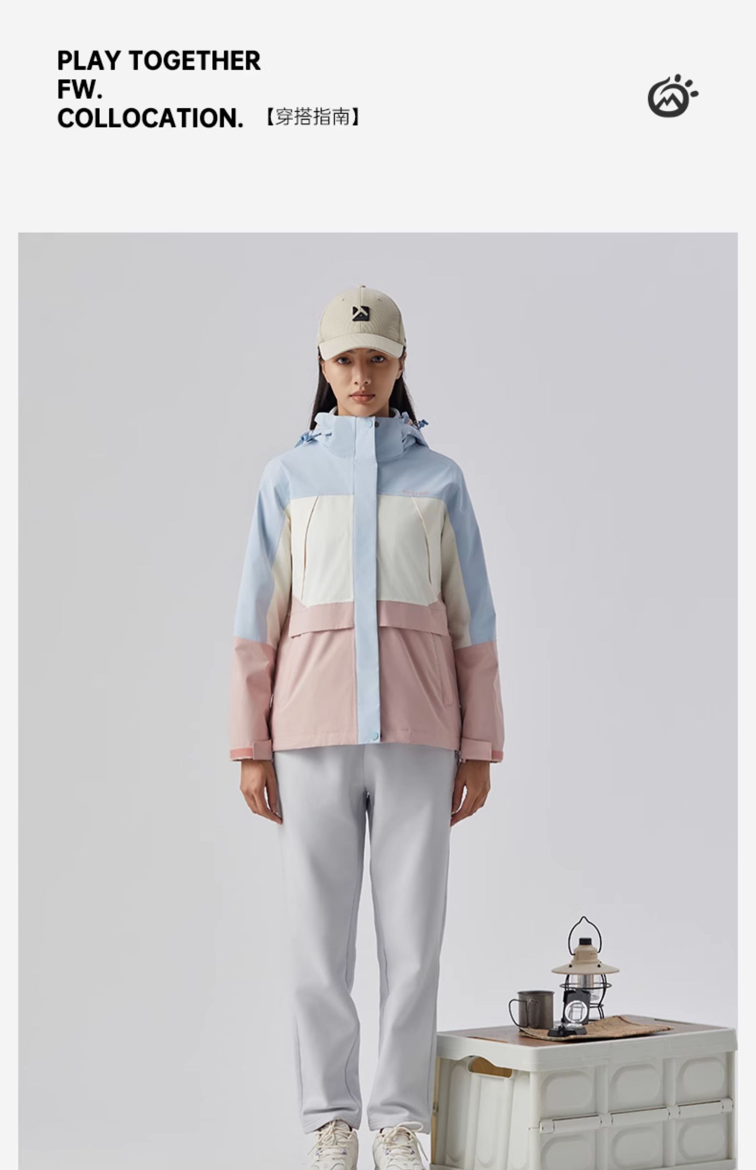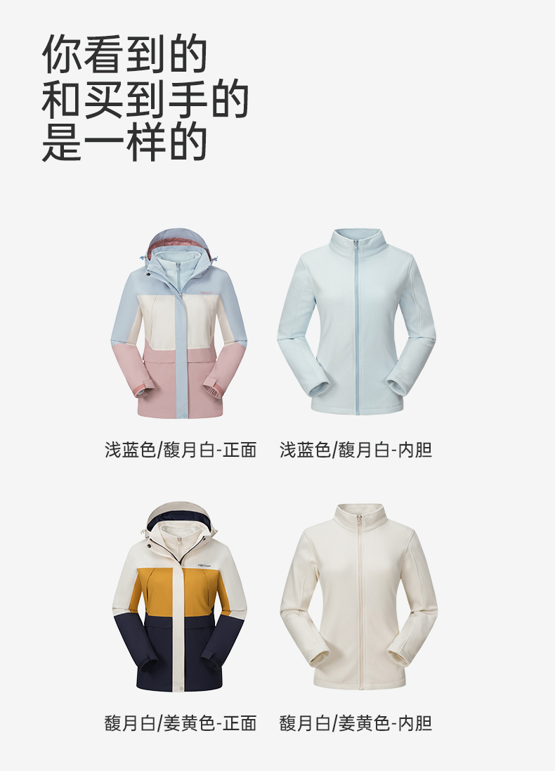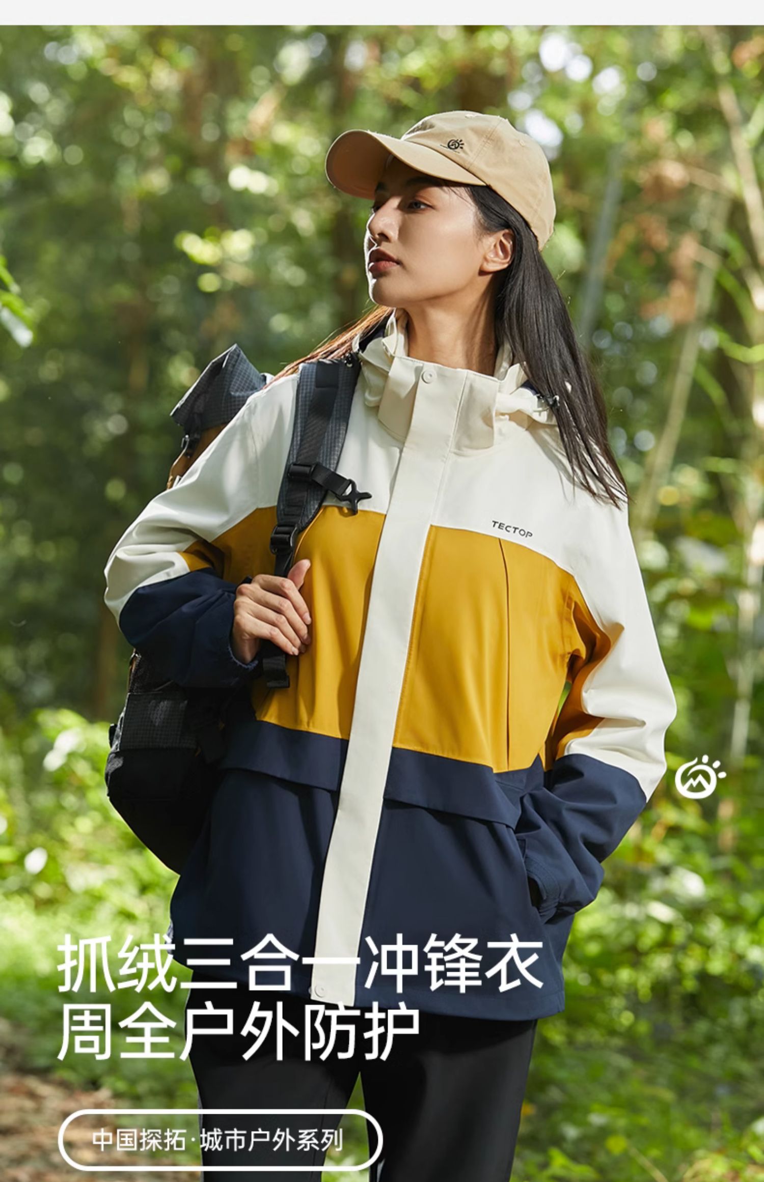 探拓户外冲锋衣女士三合一可拆卸防风防水两件套冬季保暖加厚外套