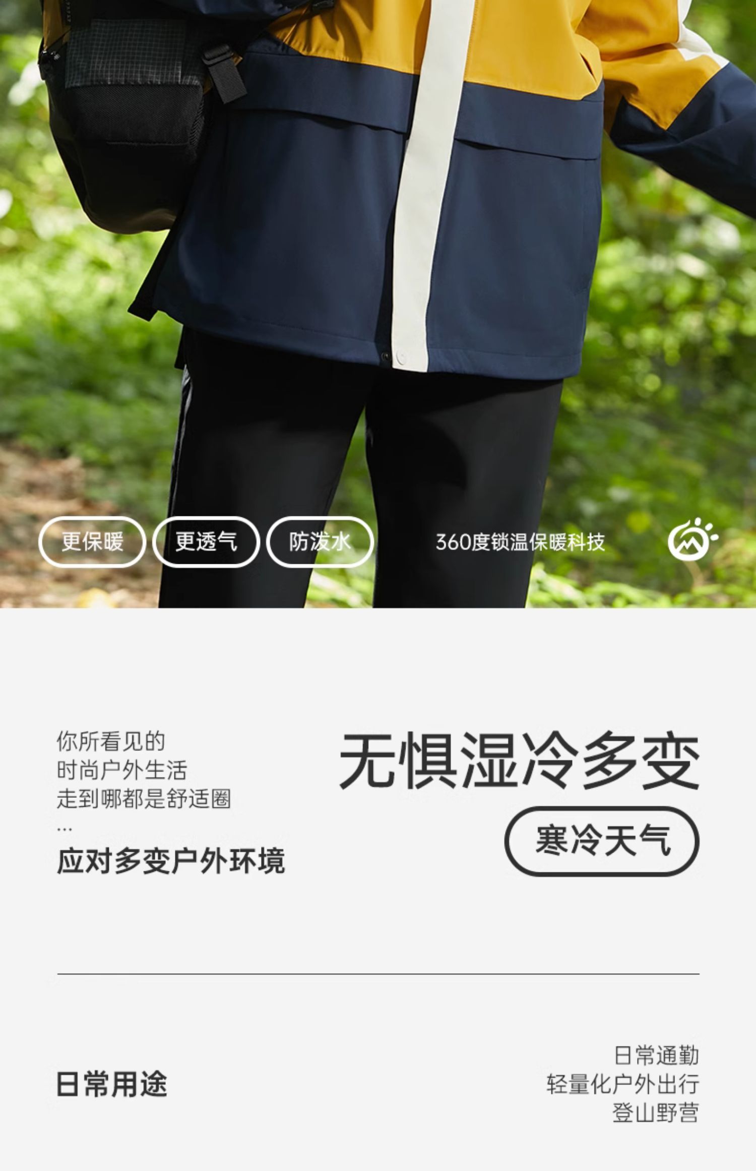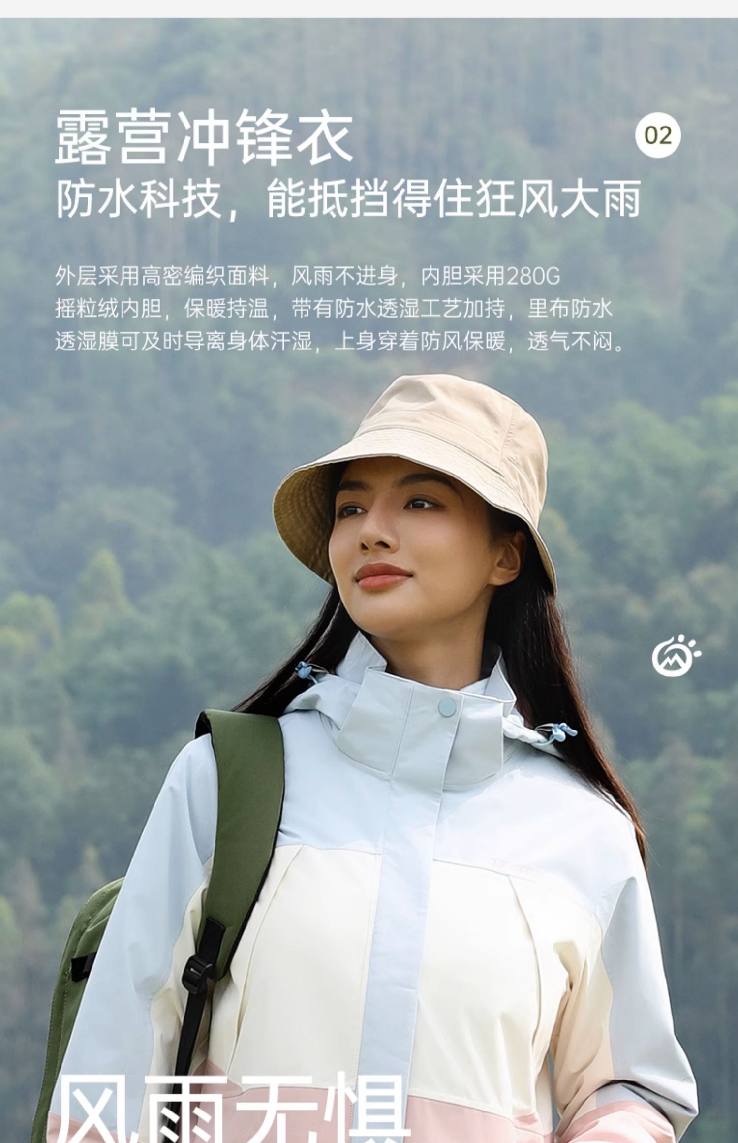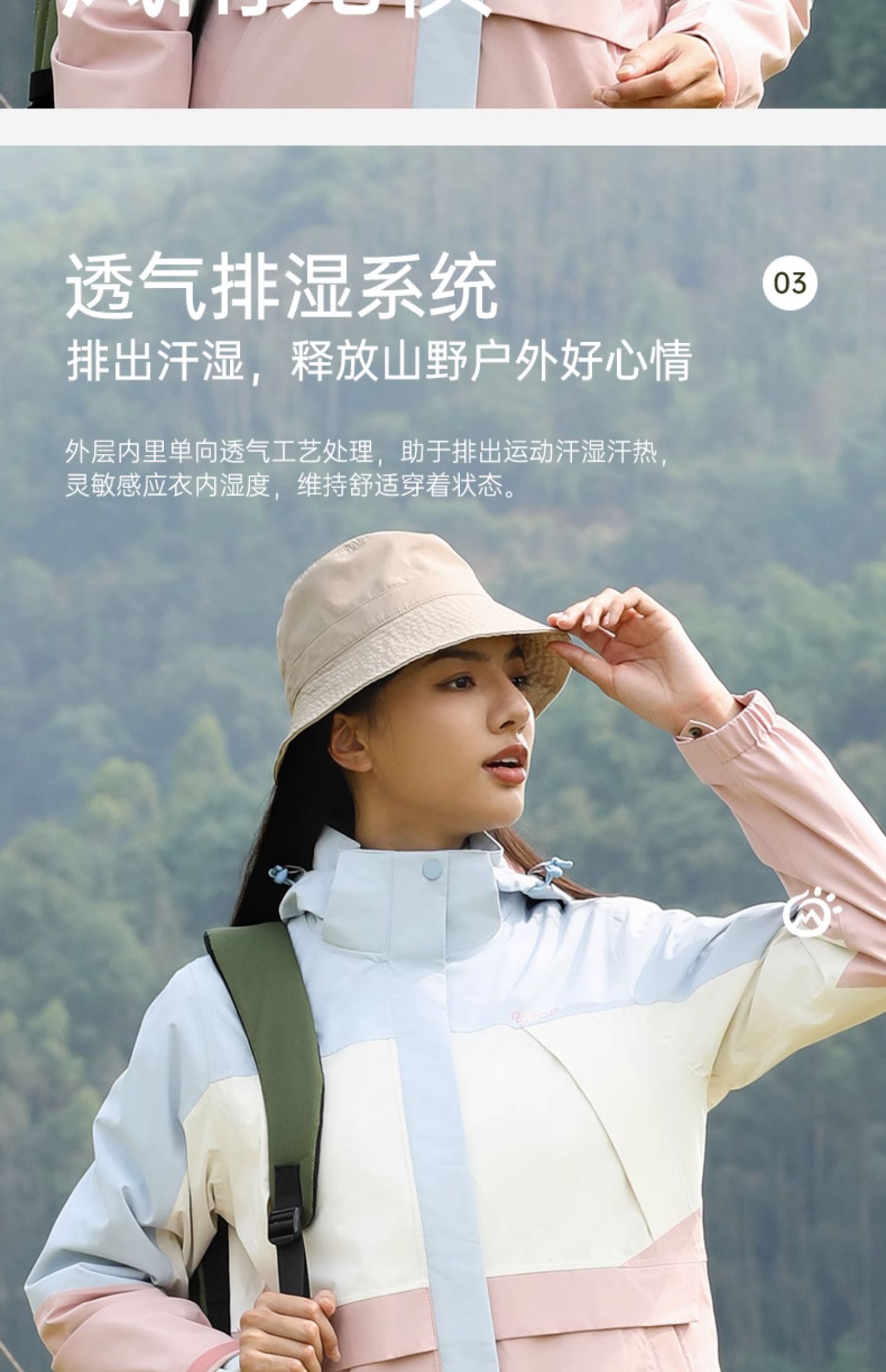 探拓户外冲锋衣女士三合一可拆卸防风防水两件套冬季保暖加厚外套