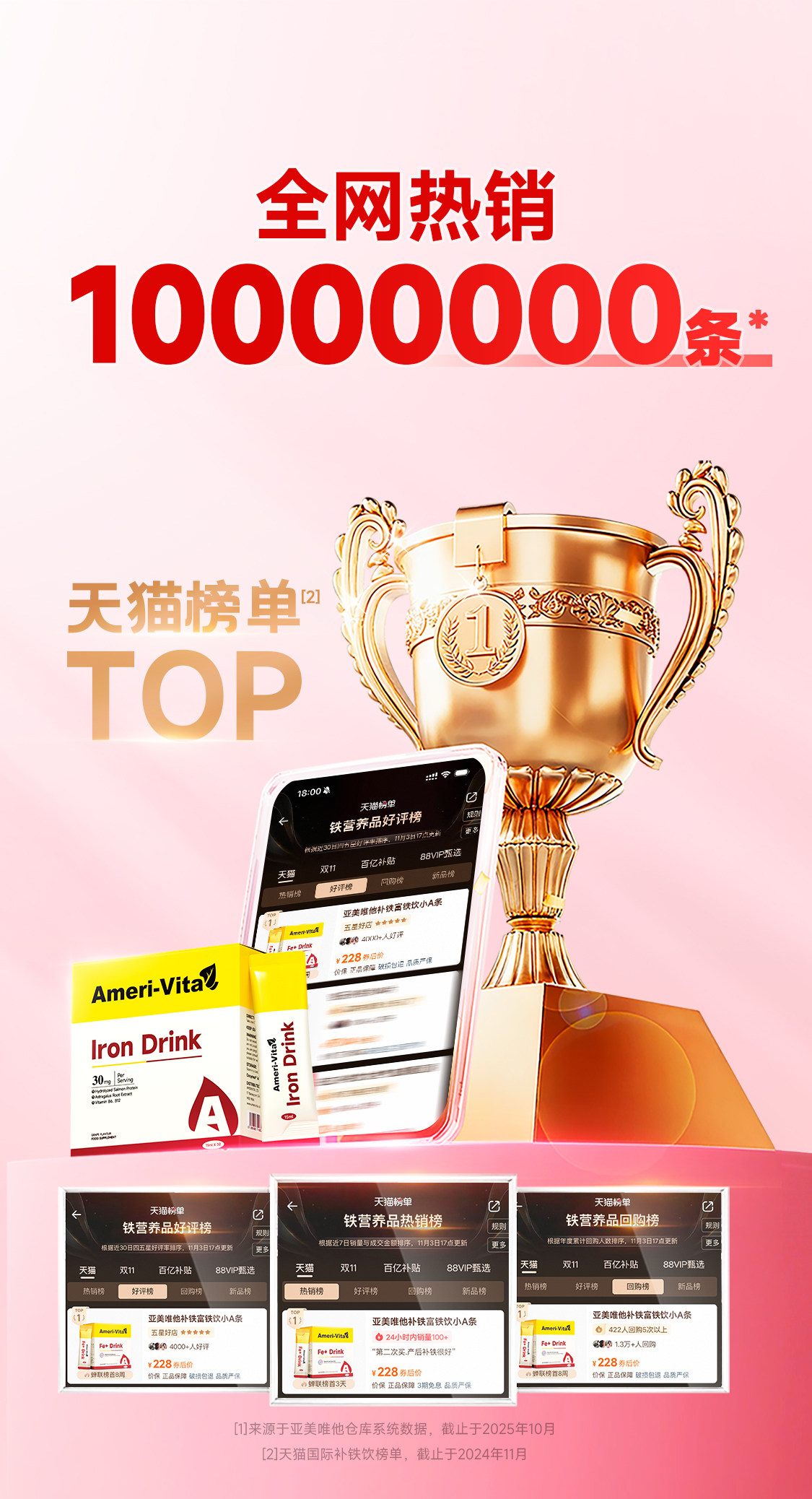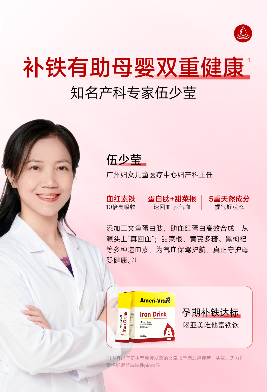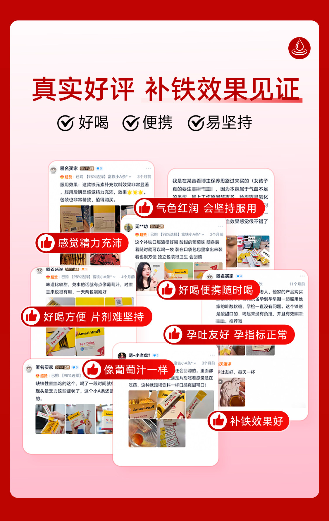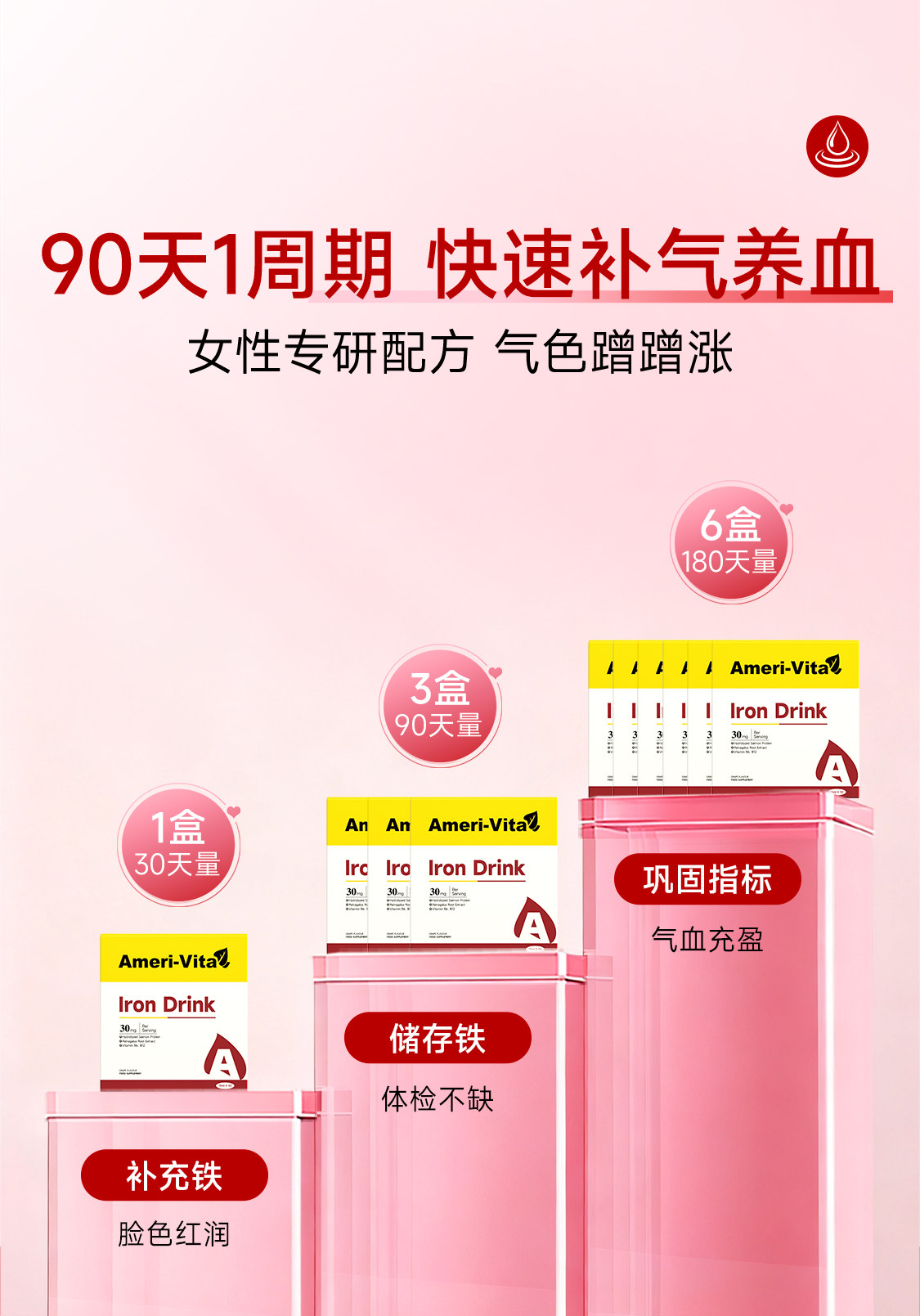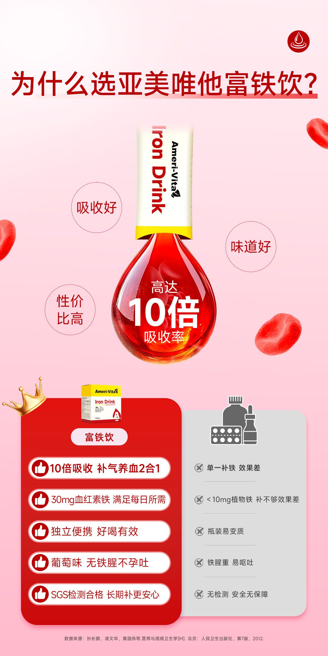 【周期见效 指标提升UP↑】Ameri-Vita亚美唯他 富铁口服液小A条 30条/盒 孕妇贫血女性经期便携铁剂铁元素口服液