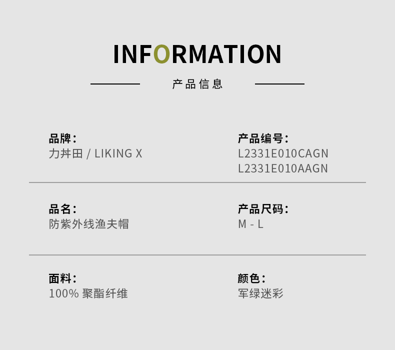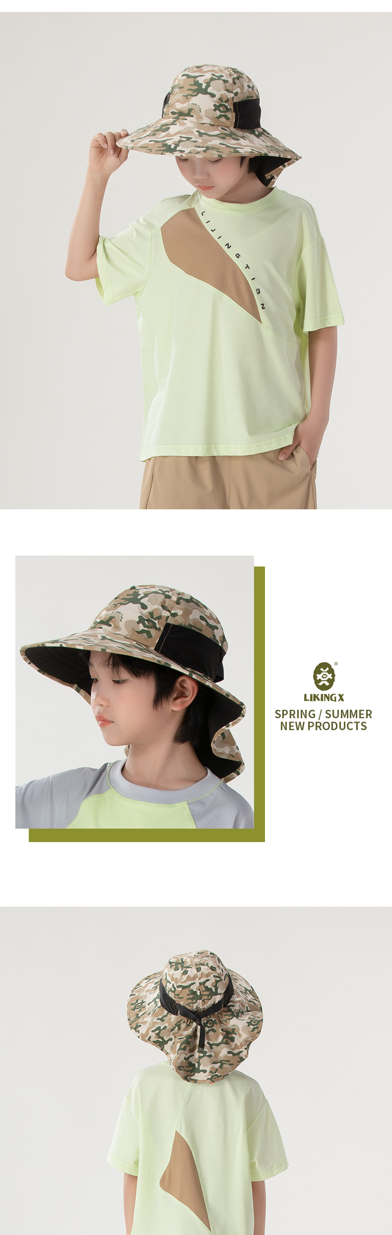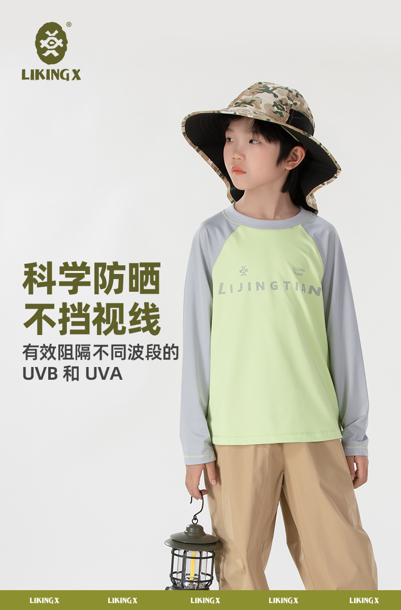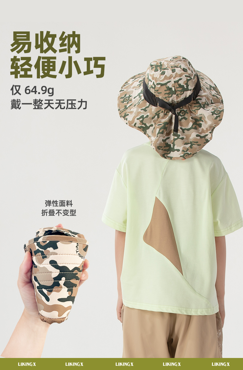 力丼田儿童户外辅助系统 杜邦三防满印渔夫帽 UPF50+挡风沙护颈 L2331E010CGN