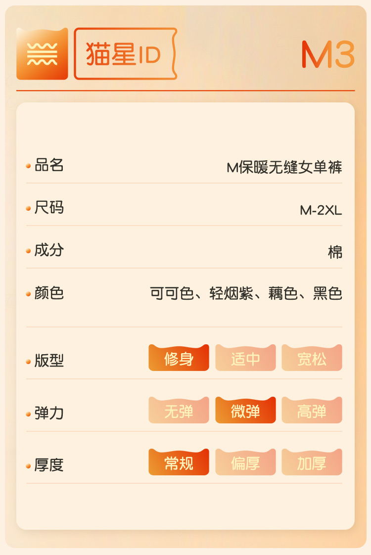 【M-XXL】【100%棉】【猫人】女士纯棉保暖裤