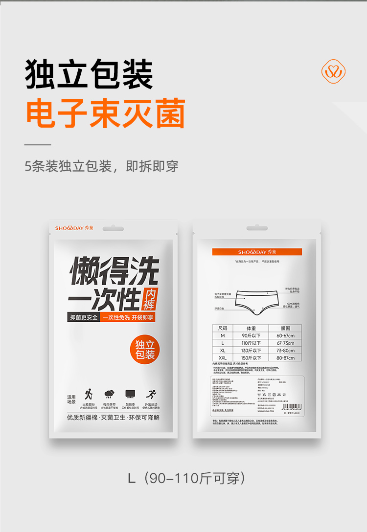 (女士5条装)【秀黛】一次性内裤女士一次性内裤S7333001T【门店同款】【内裤非质量问题不退换】