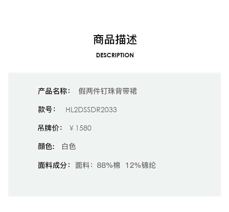 HL2DSSDR2033 假两件钉珠背带裙