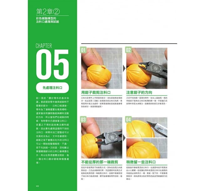 利用彩色樹脂模型認識組裝模型的工具與基本作業,接著再正式進入模型組裝。