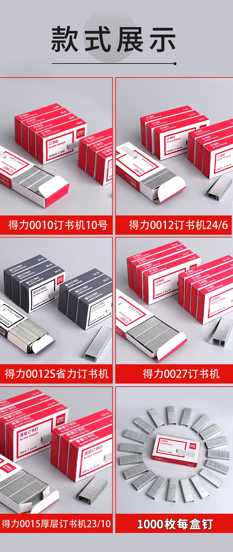 得力订书钉24/6通用型12号订书针小号大号不锈钢10号办公加厚批发