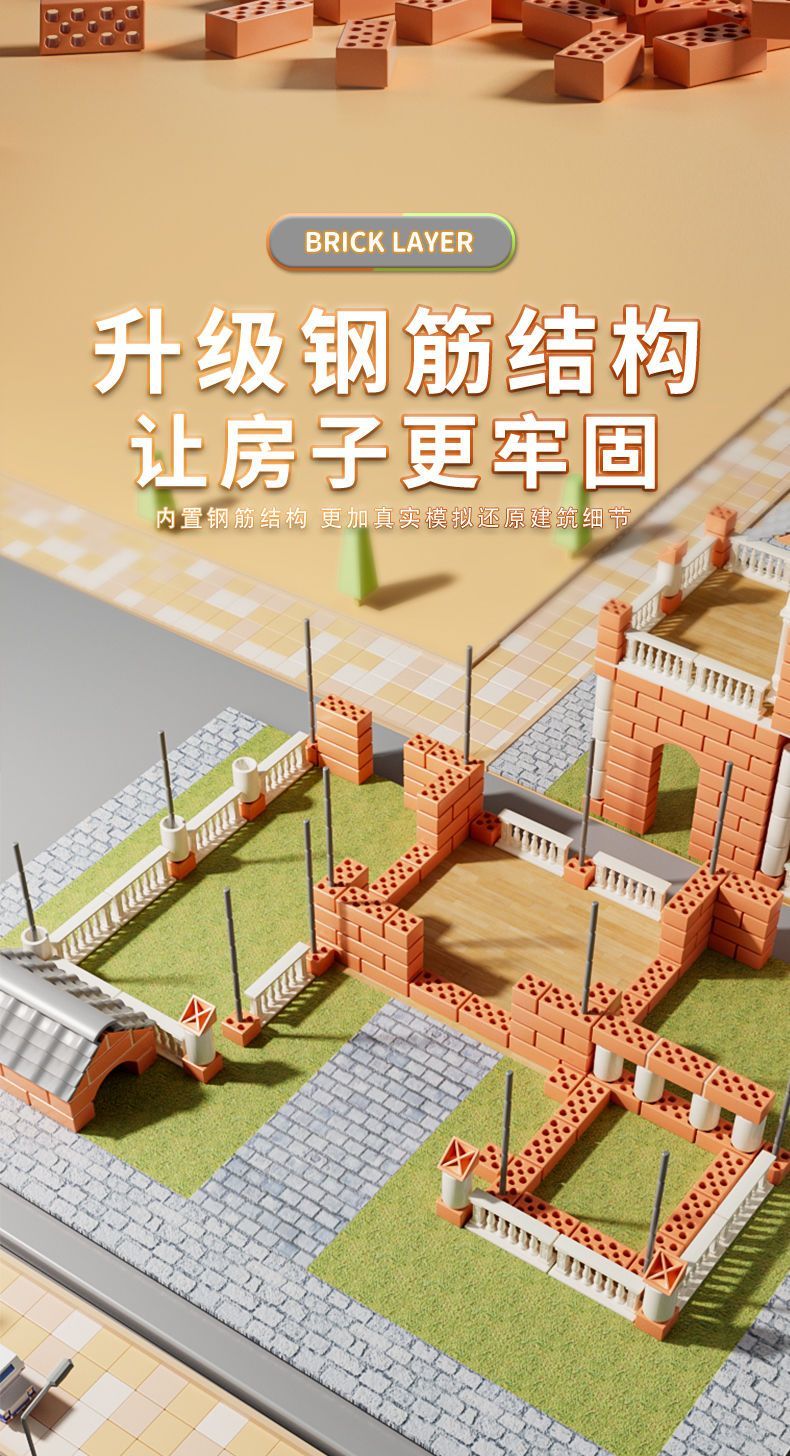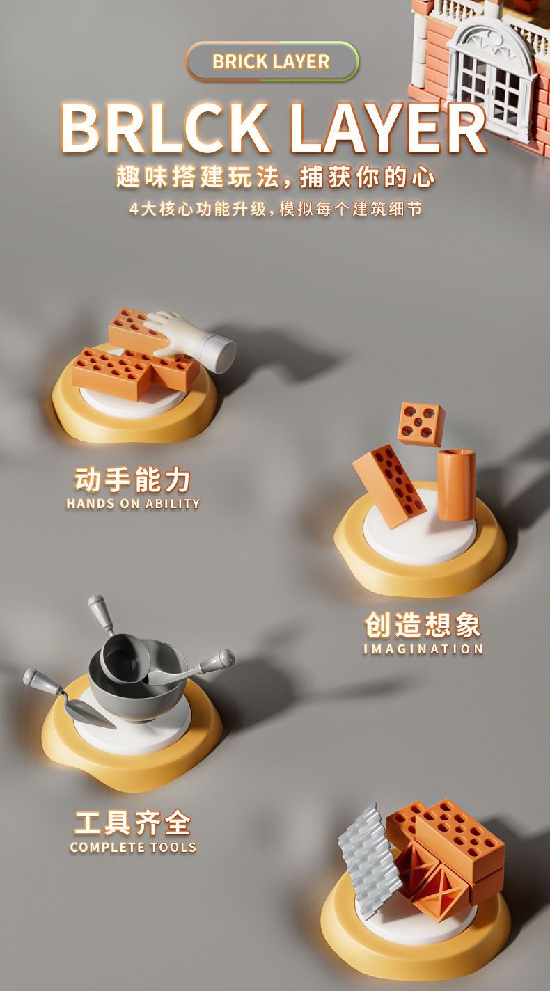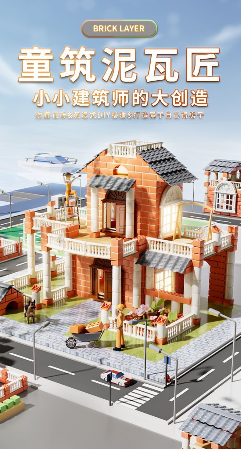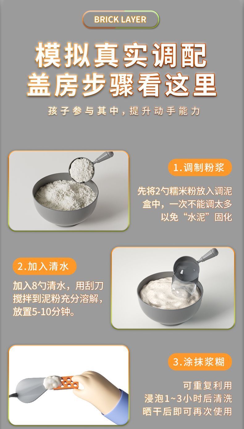 小小泥瓦匠儿童盖房子砌墙玩具屋砖头水泥拼装模型
