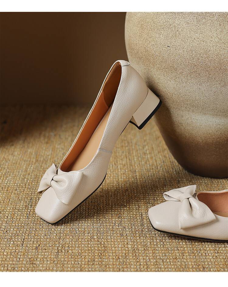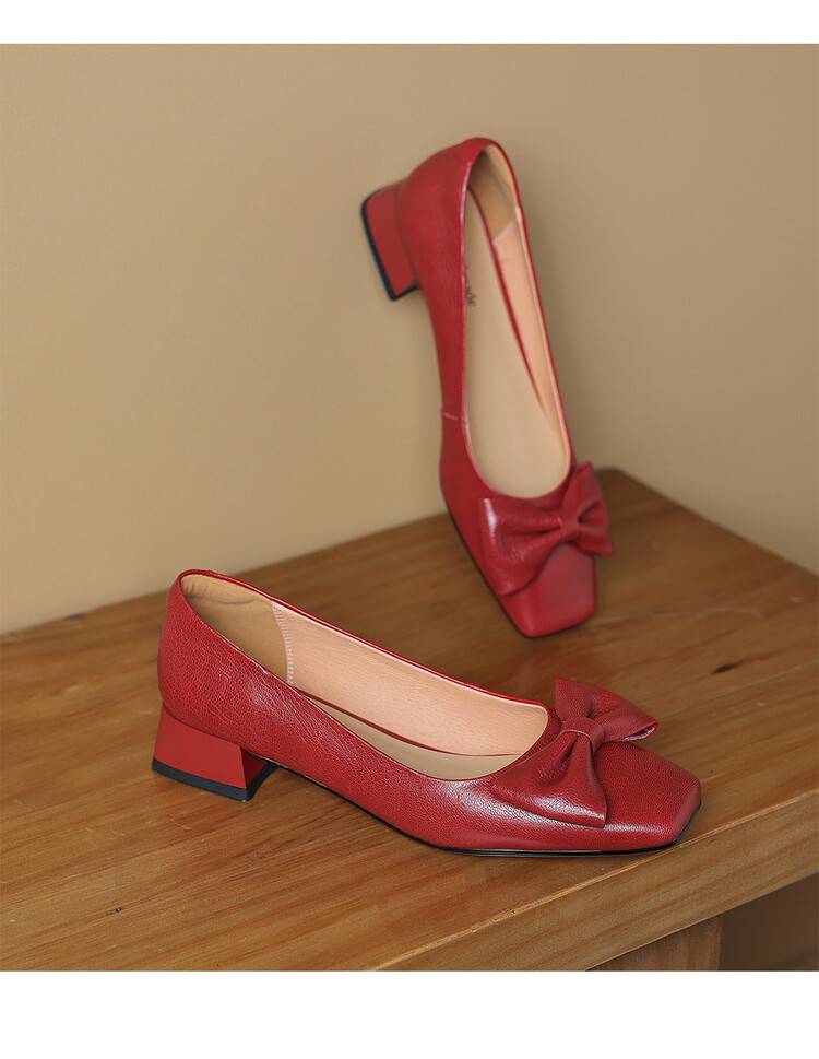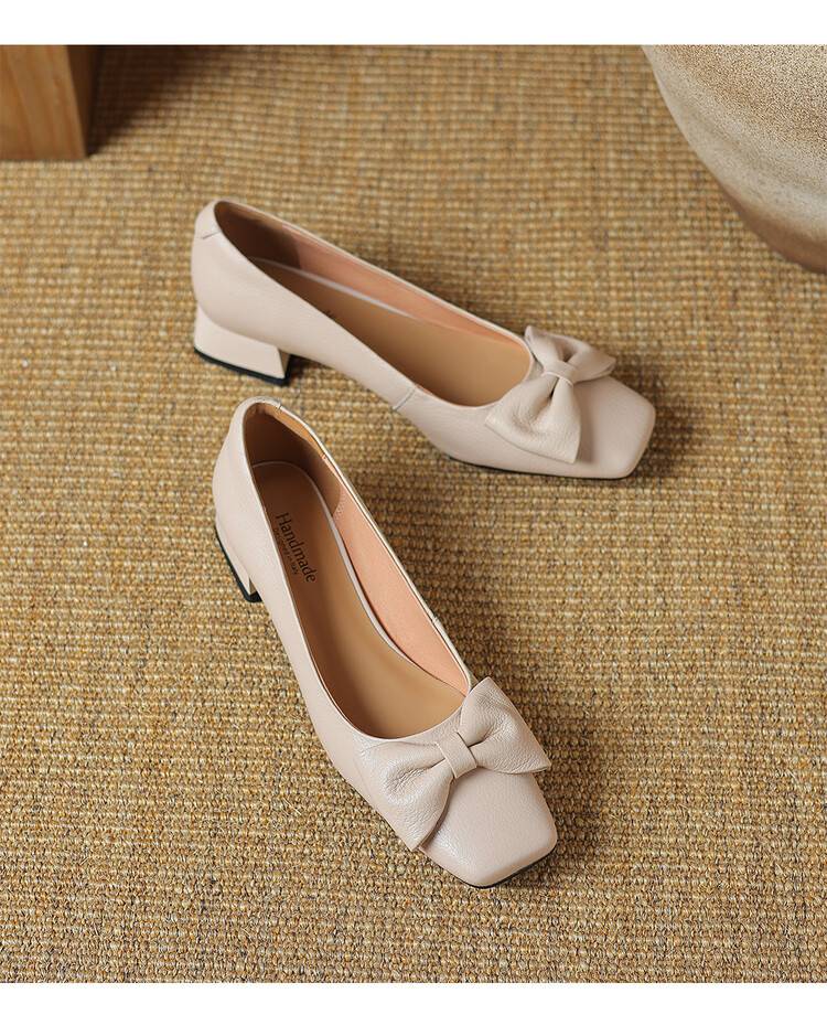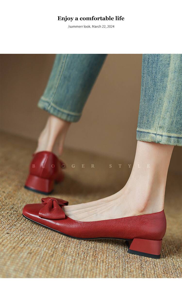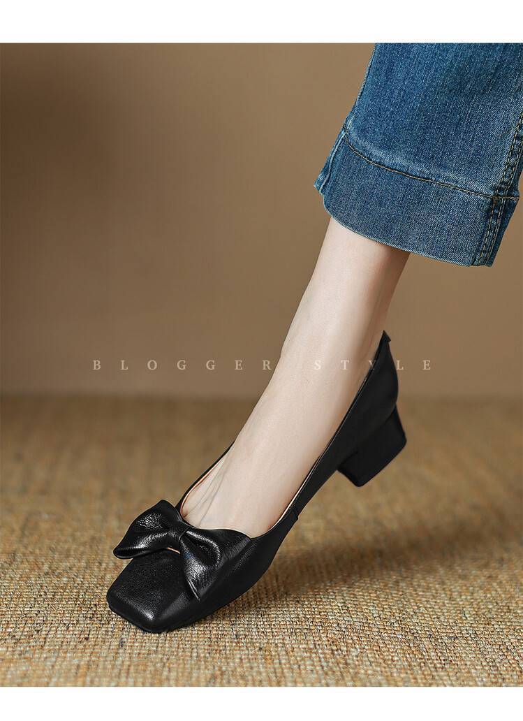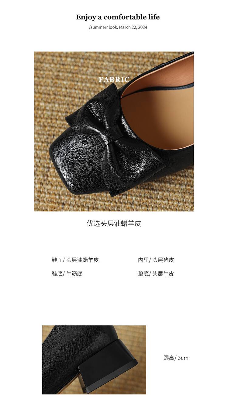 【预售5天】法式粗跟单鞋女2024年新款复古蝴蝶结配裙小高跟晚晚鞋LD&6849