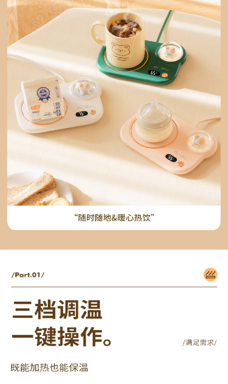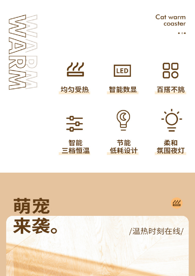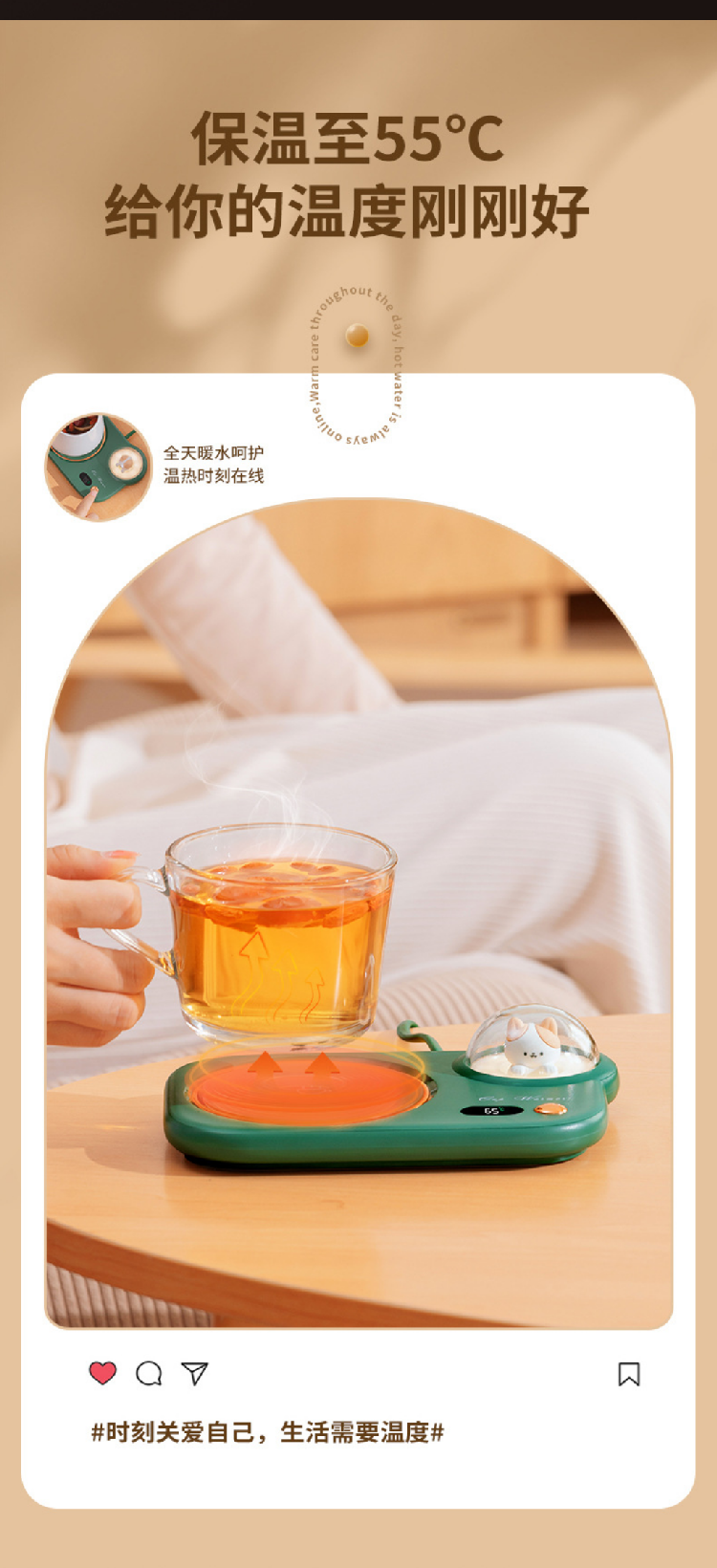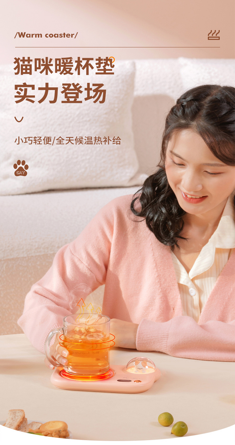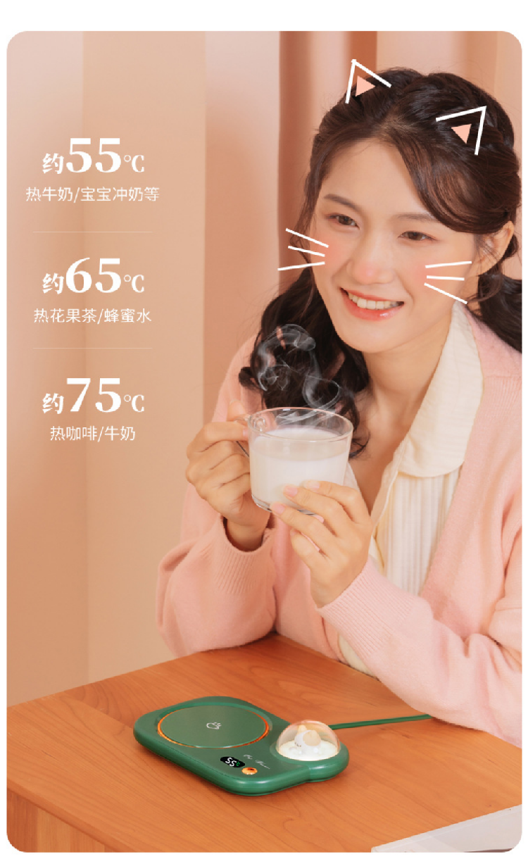 【猫咪55度暖杯垫】智能恒温加热杯垫送礼女朋友 办公家用暖奶茶壶网红爆款