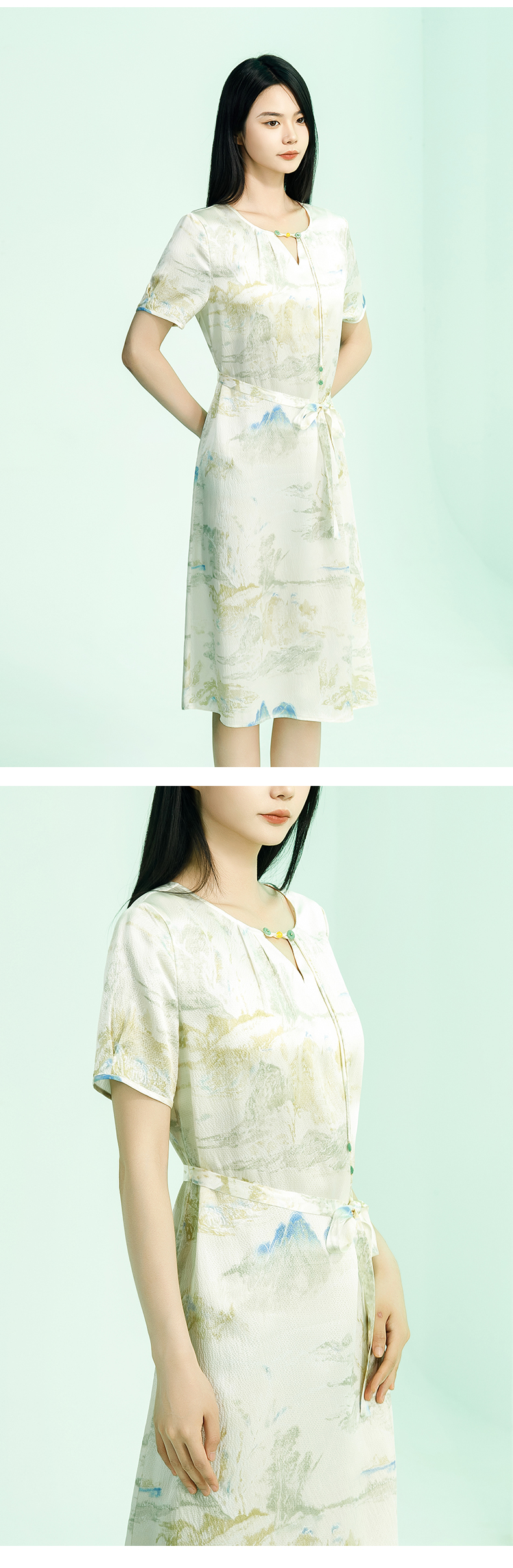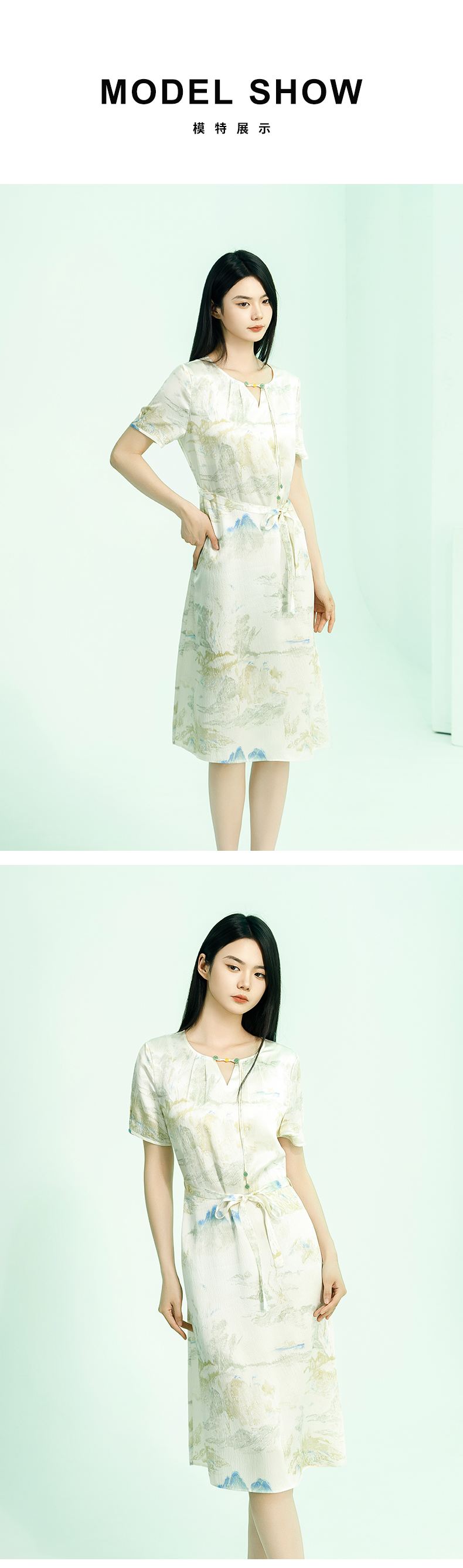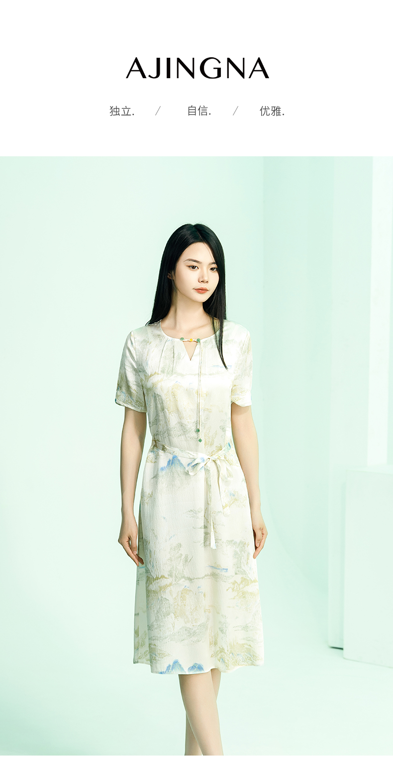 【商场同款】阿菁娜2024夏季新款新中式水墨画收腰连衣裙A30X212075