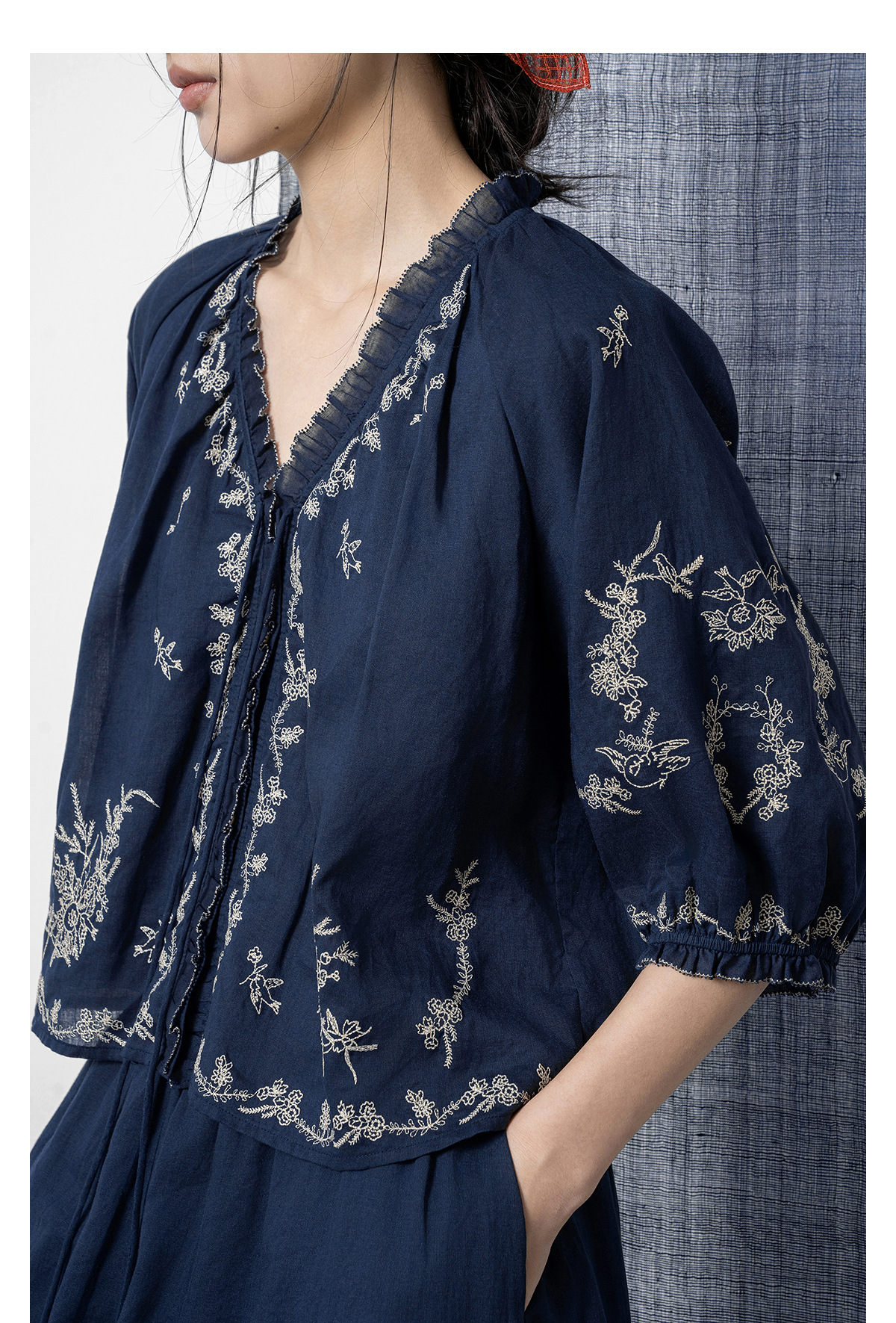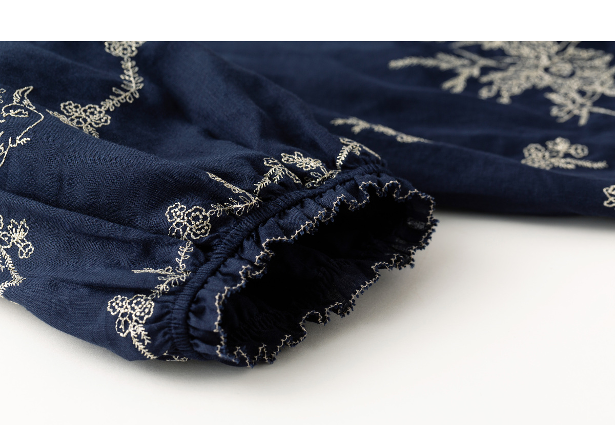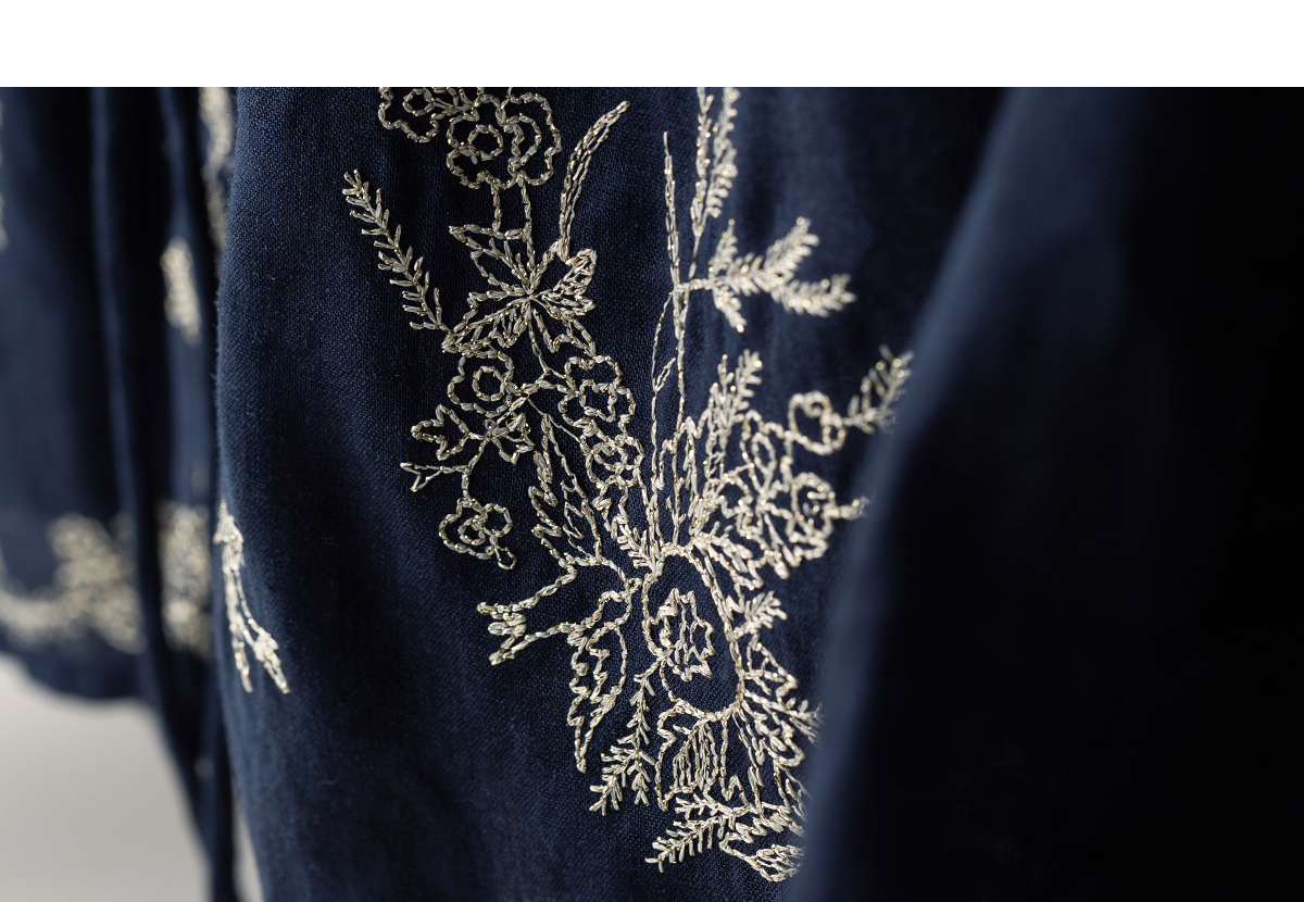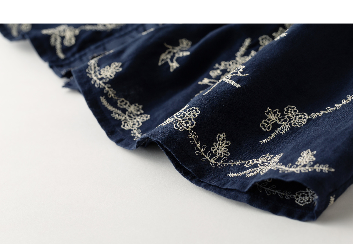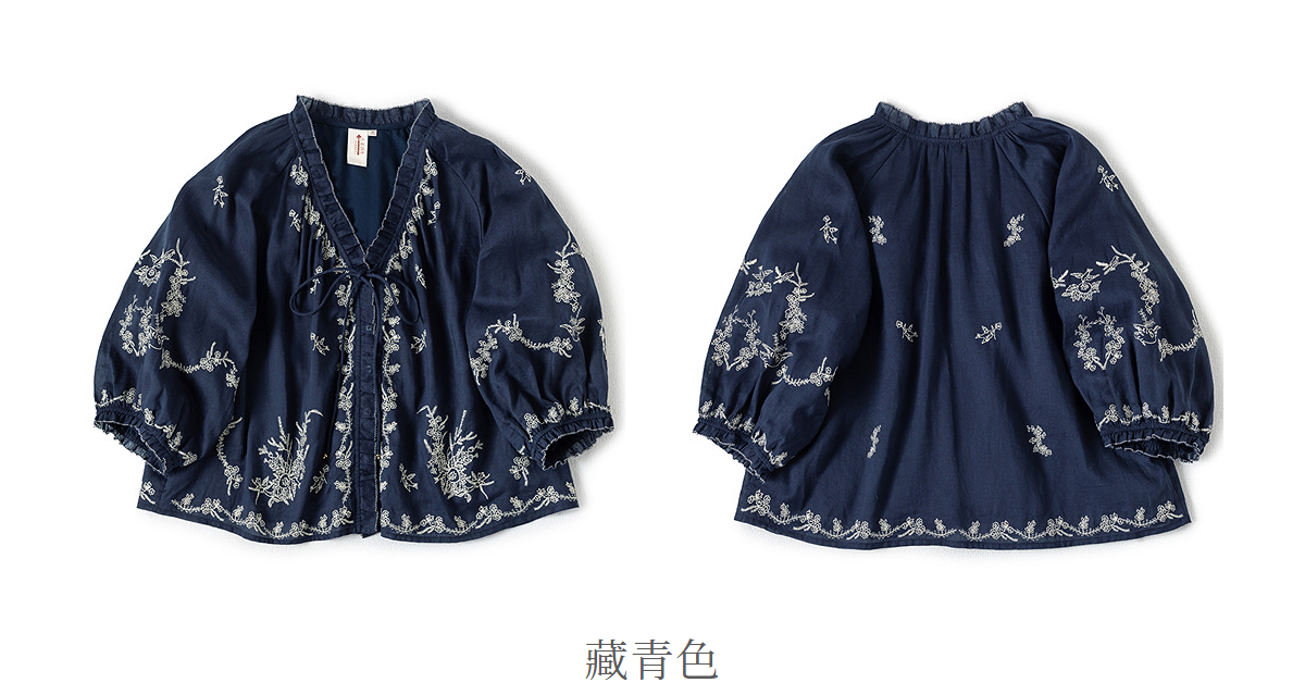 【林栖设计小店】鸟戏花间|藏青色绣花肌理宽松百搭2026春新款优雅衬衣1961146