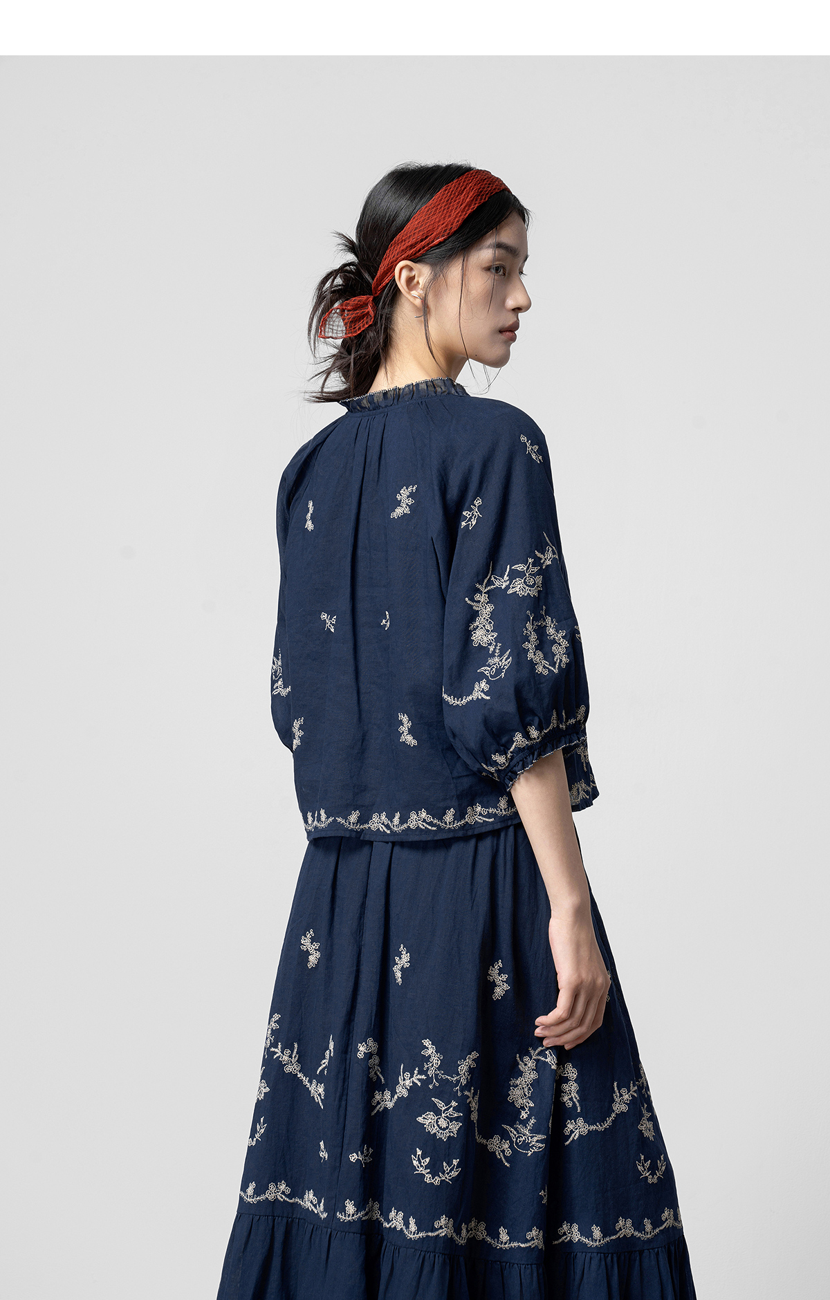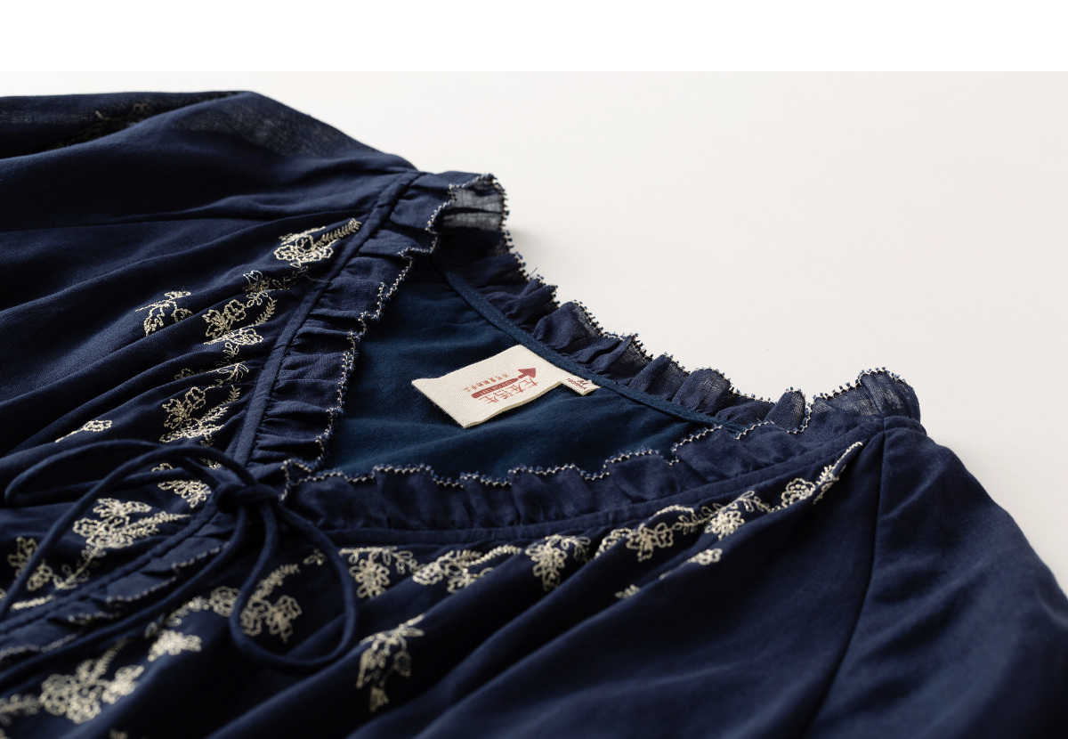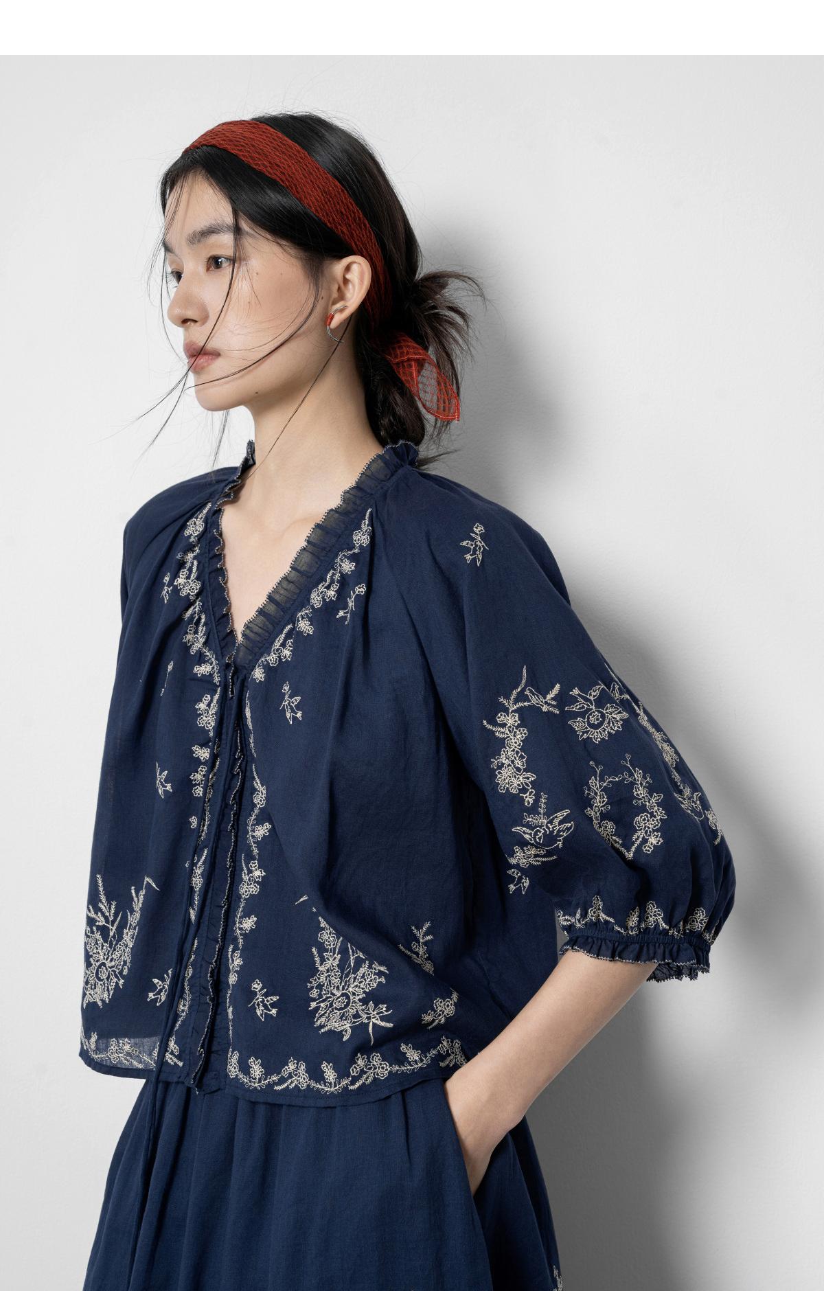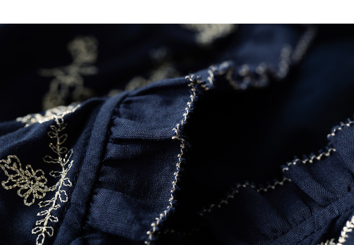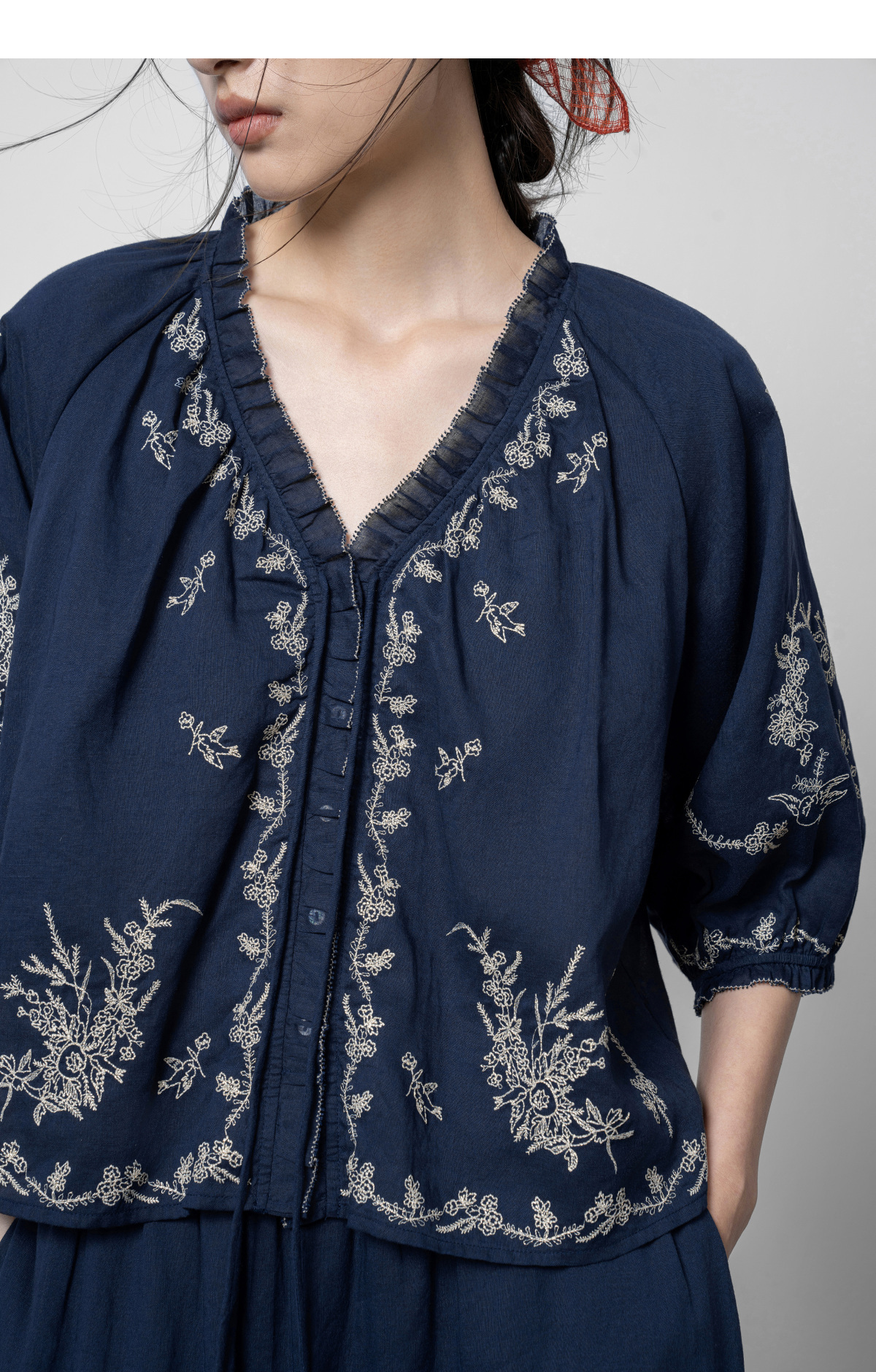 【林栖设计小店】鸟戏花间|藏青色绣花肌理宽松百搭2026春新款优雅衬衣1961146
