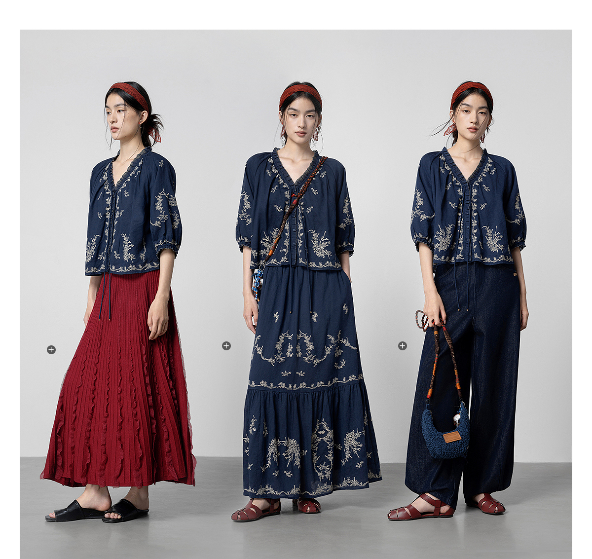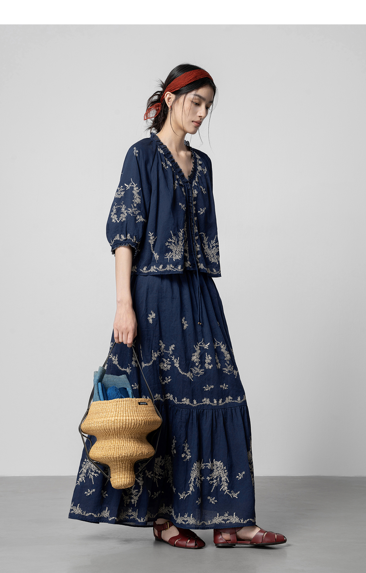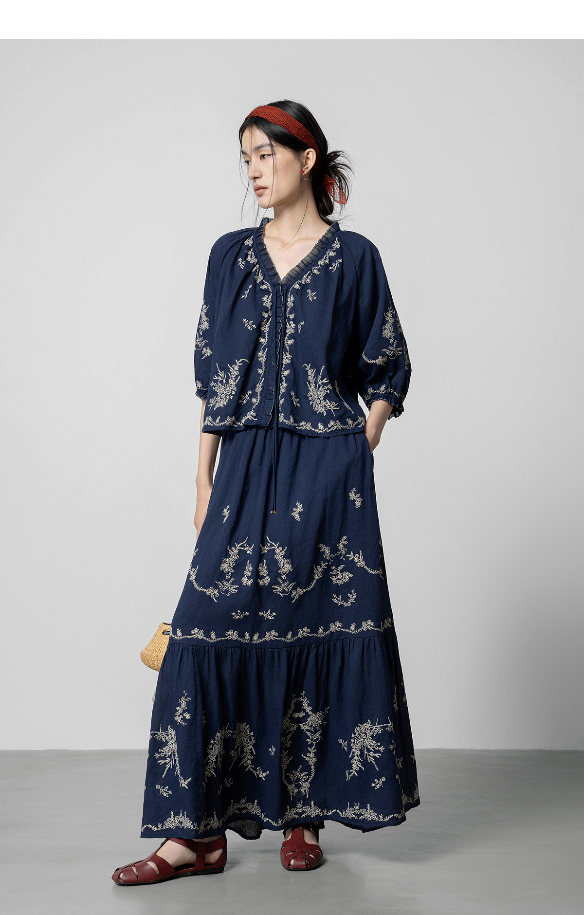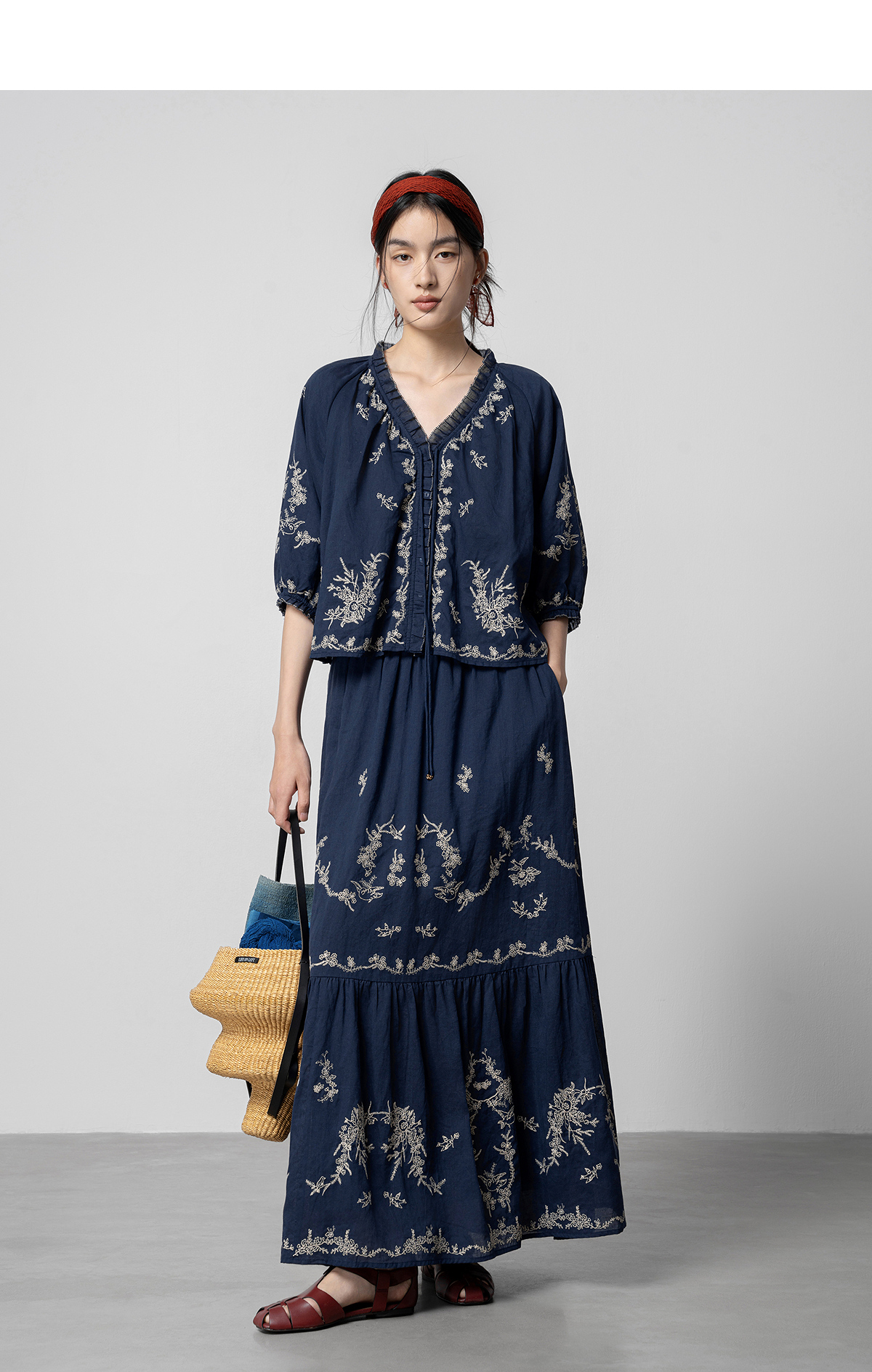 【林栖设计小店】鸟戏花间|藏青色绣花肌理宽松百搭2026春新款优雅衬衣1961146