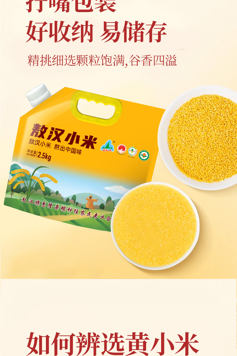 疯抢中!!现磨现发【世界小米之乡·敖汉有机地标小米】色泽晶莹剔透 颗粒饱满 营养丰富 2.5kg/手提袋包装