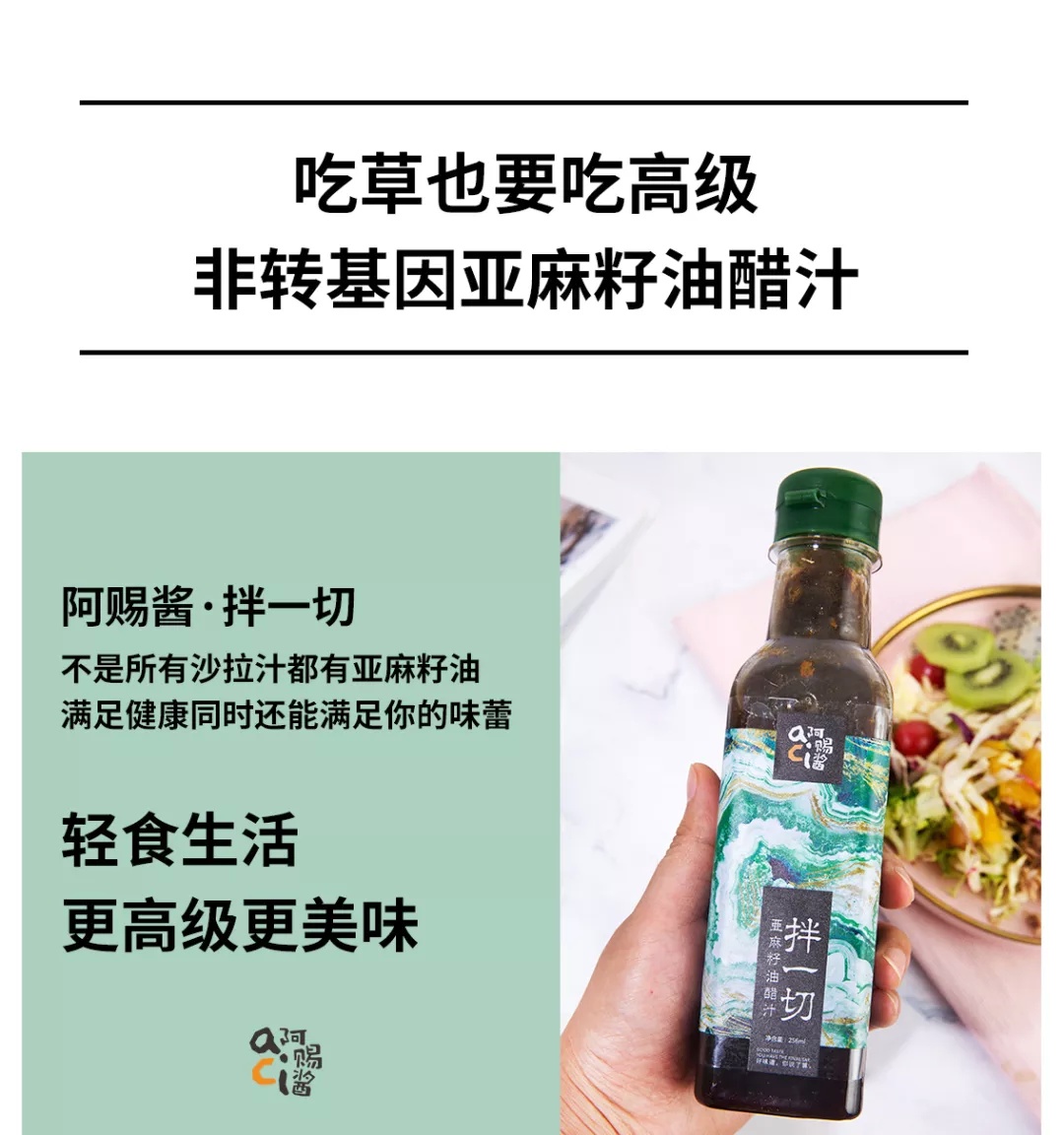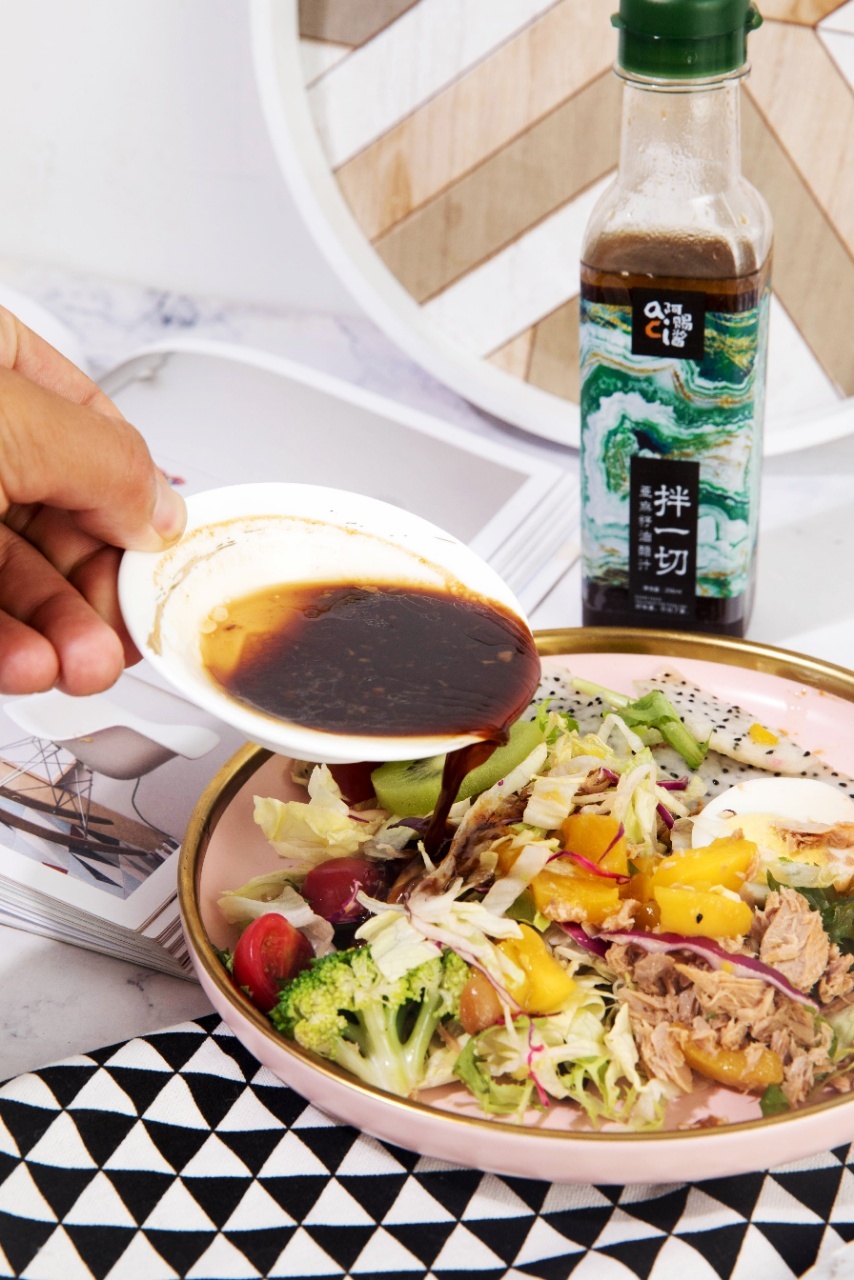 热量不高,口味清爽,适合中国胃,四川盆地酿造酱油,山西的陈醋,云南的蜂蜜,宁夏的亚麻籽油,配料简单,却充满想象力的油醋汁。