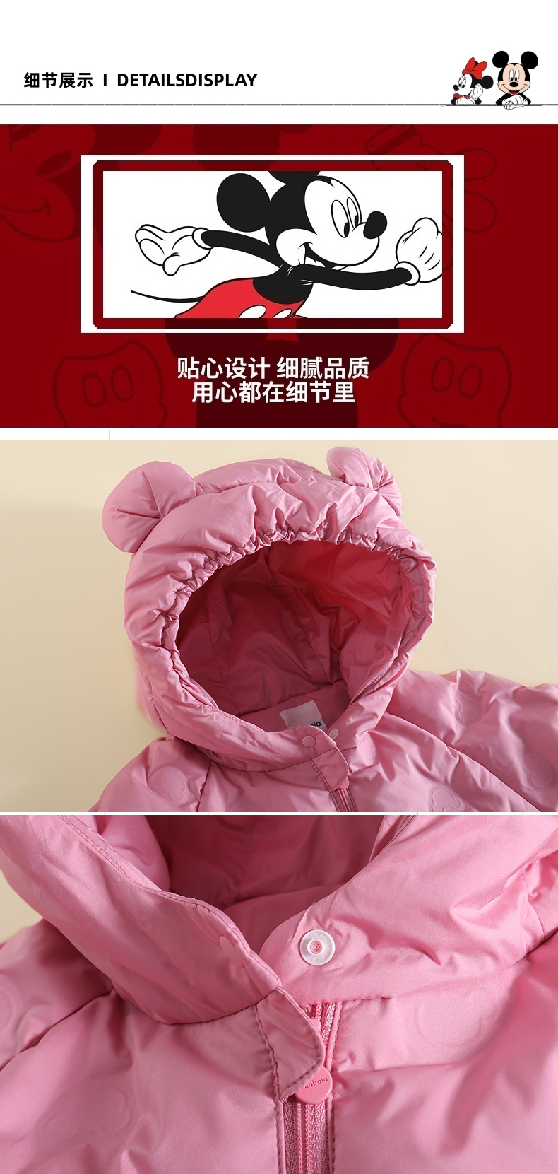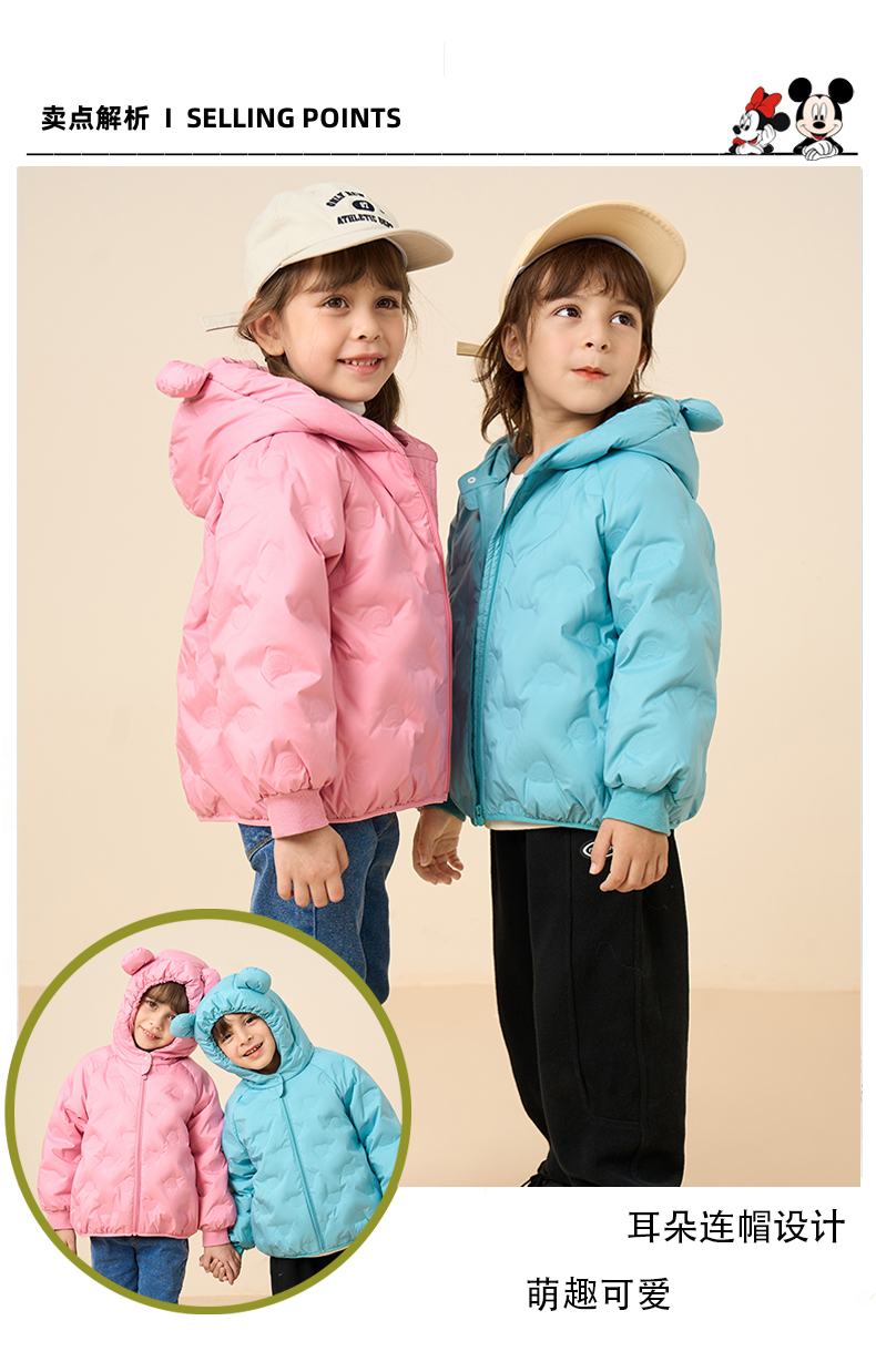 Disney/迪士尼snb儿童外套纯色耳朵款男女童小童羽绒服XME4SU396