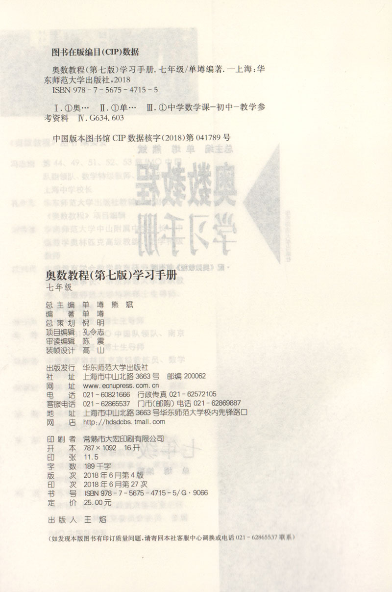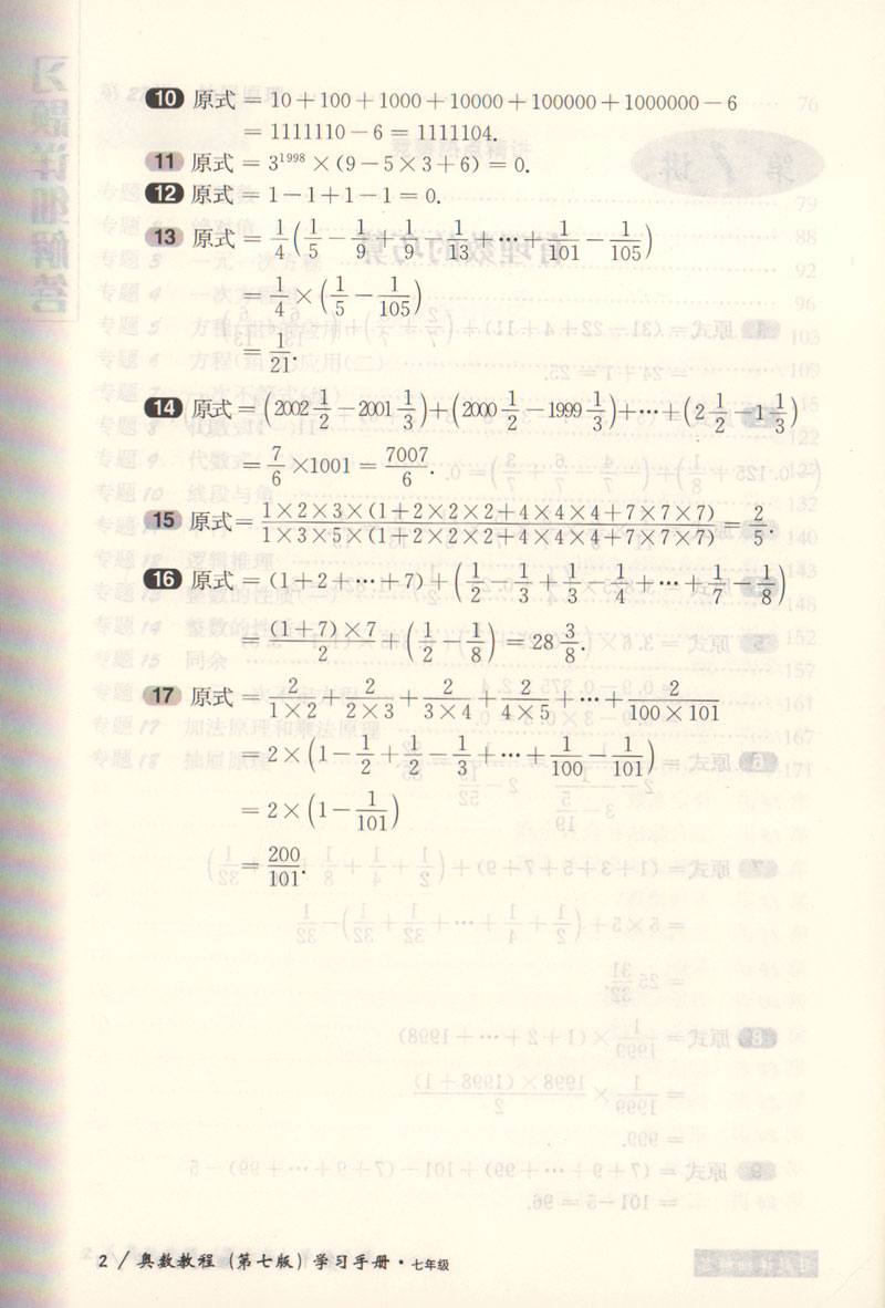 畅销20年 小蓝书伴你成长 奥数教程学习手册 7年级/七年级 第七版