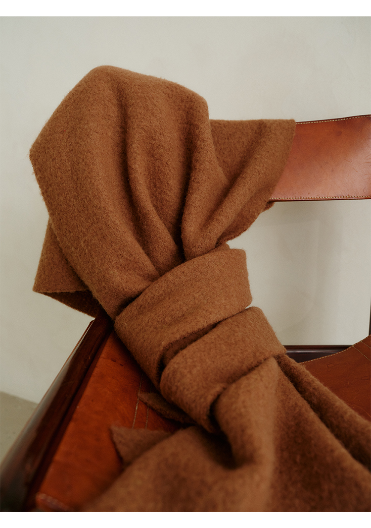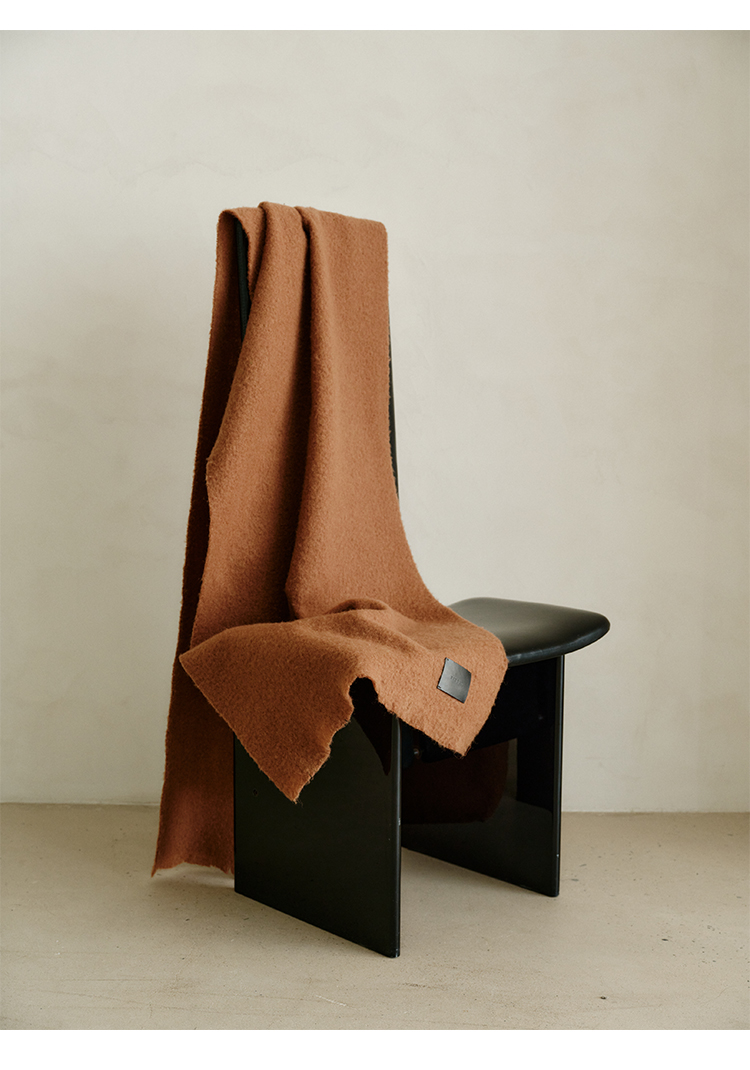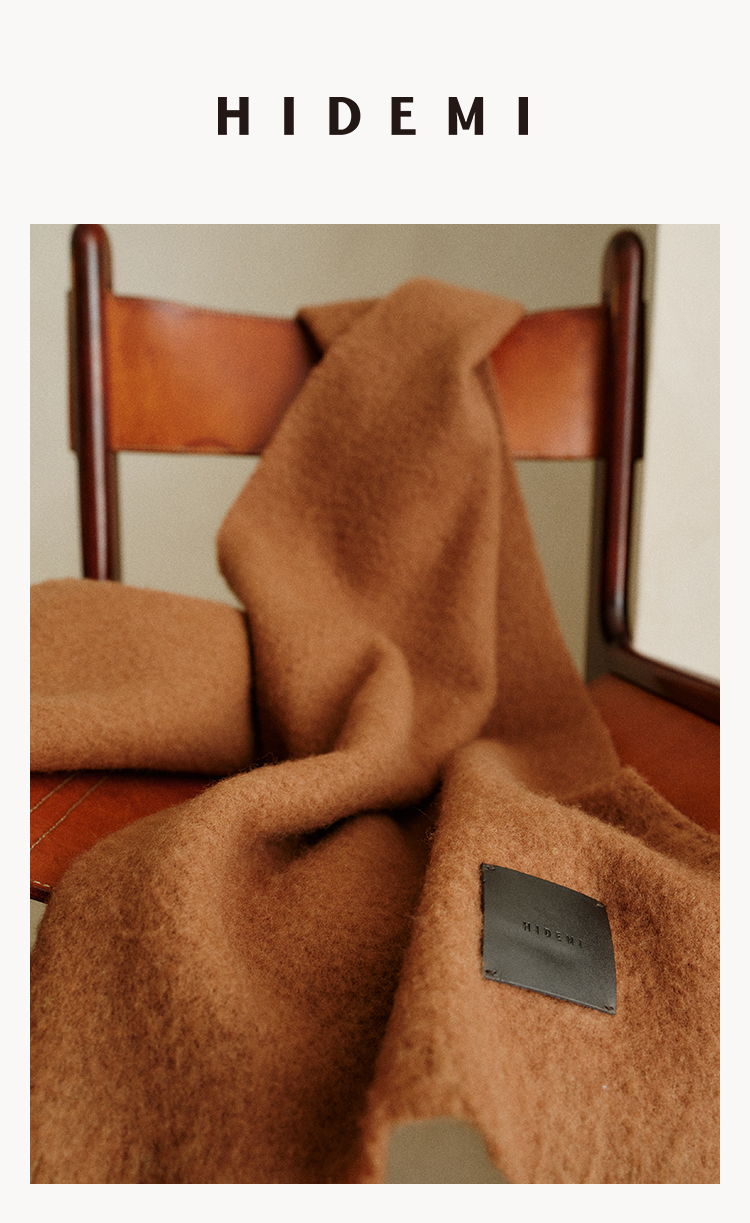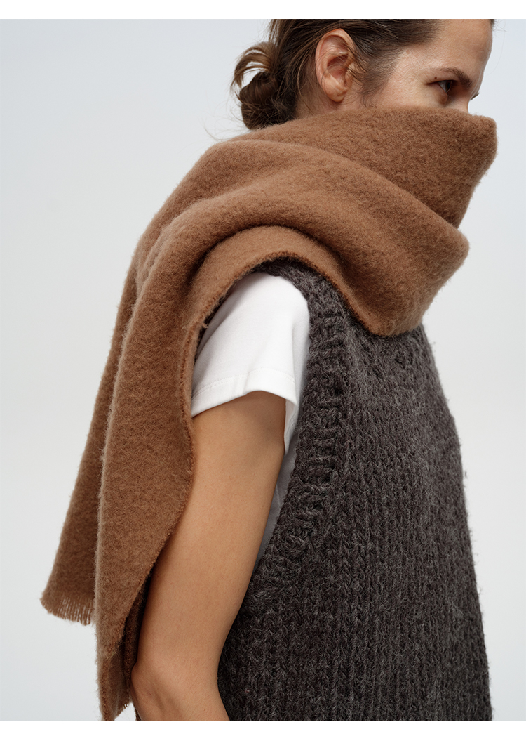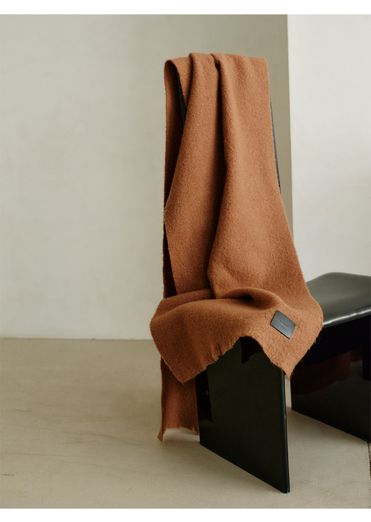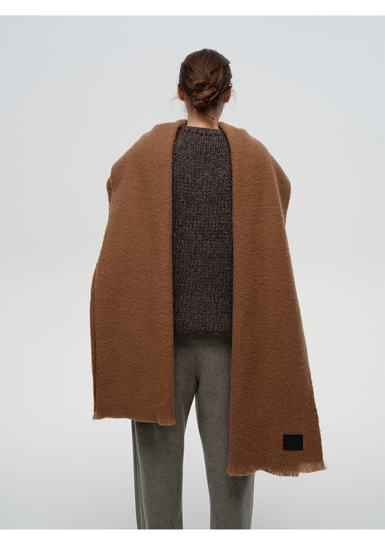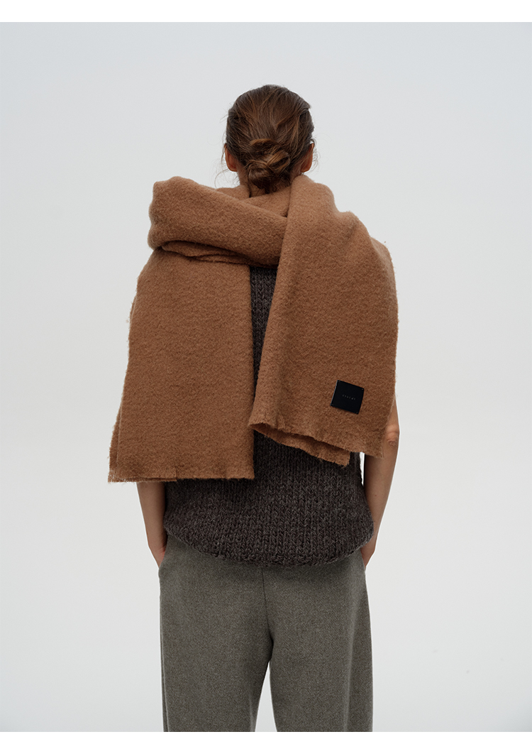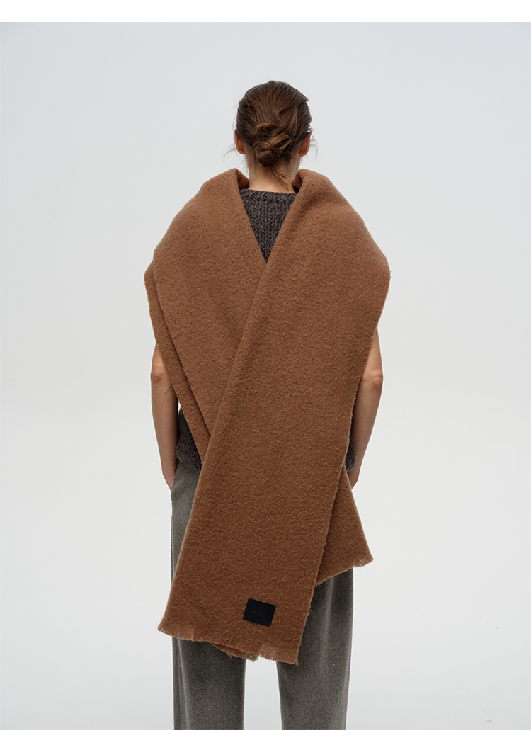 HIDEMI【辛芷蕾同款】进口羊羔绒拉毛做旧感加厚款皮标系列超大围巾披肩 驼色/黑色