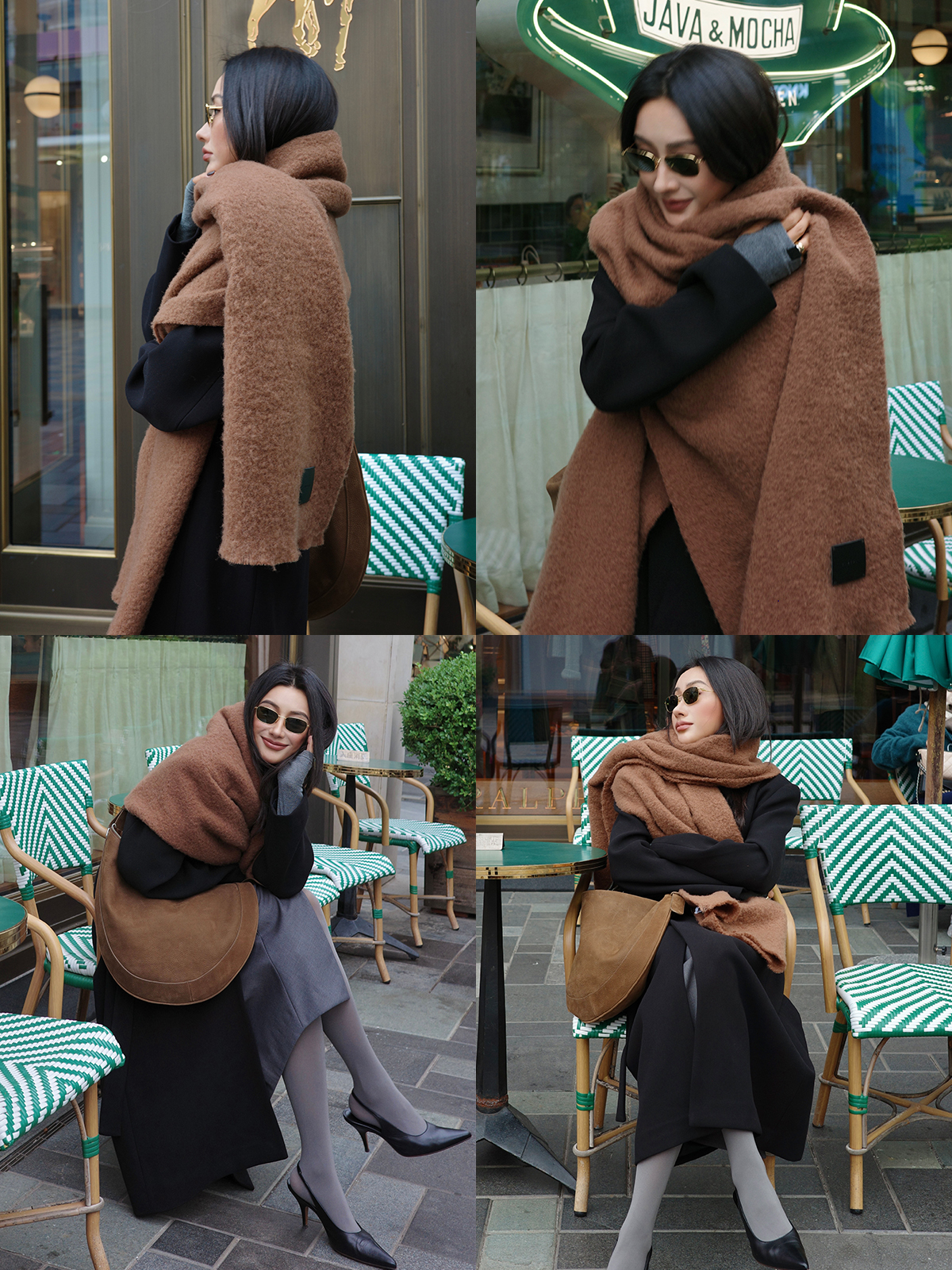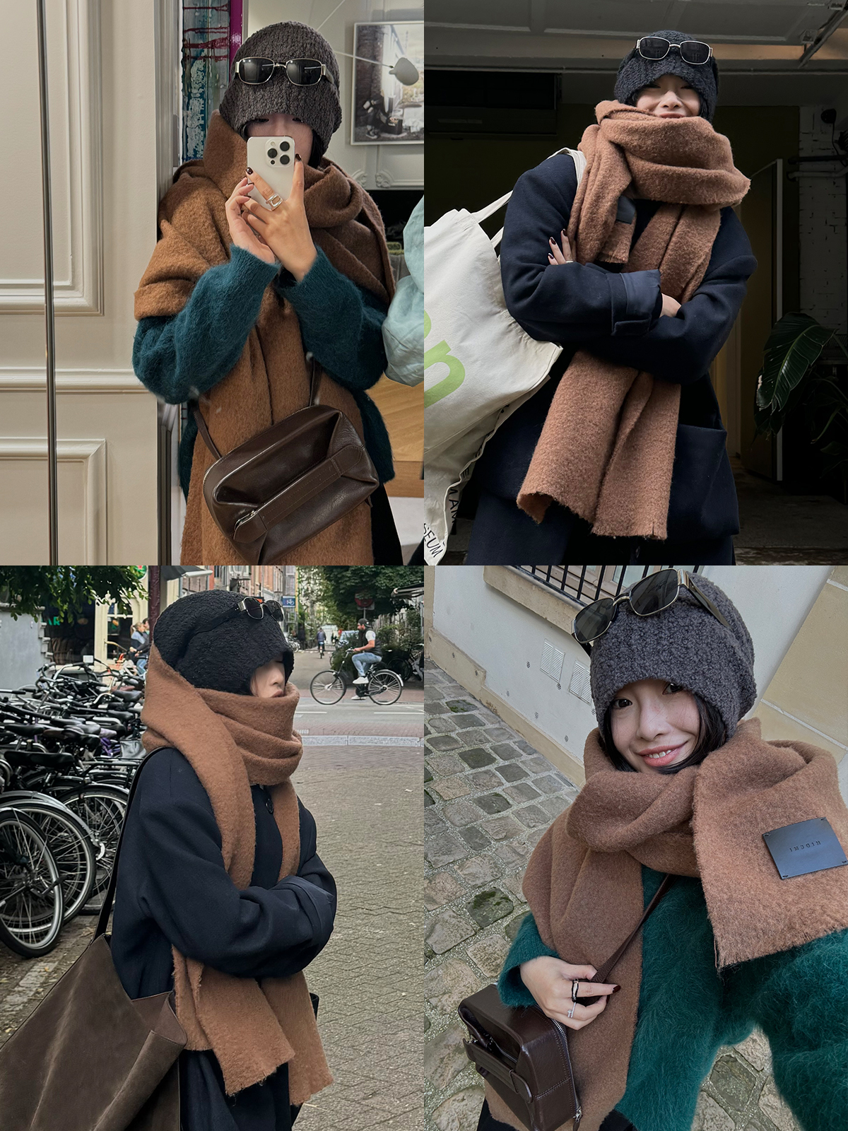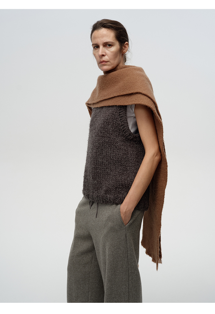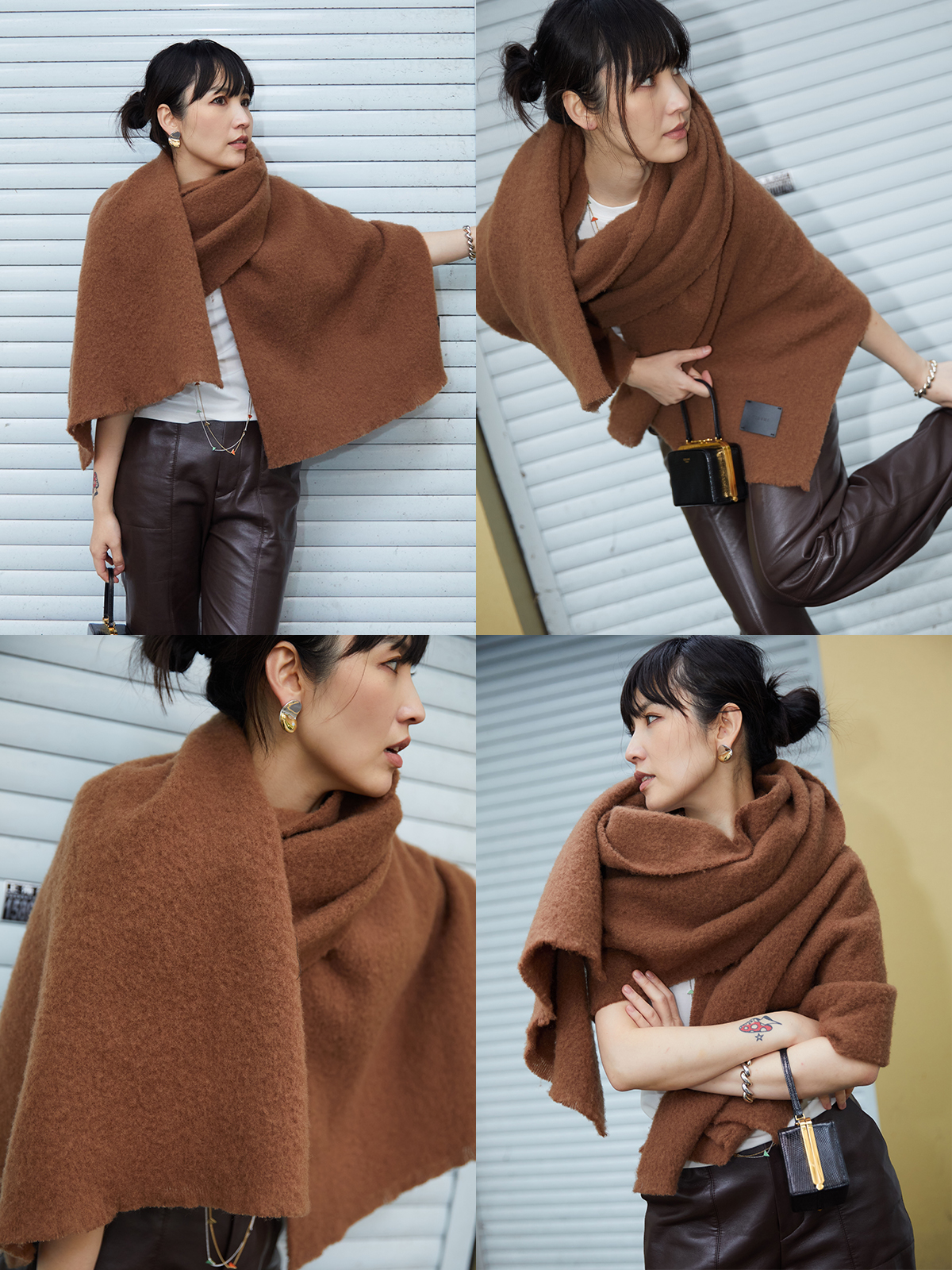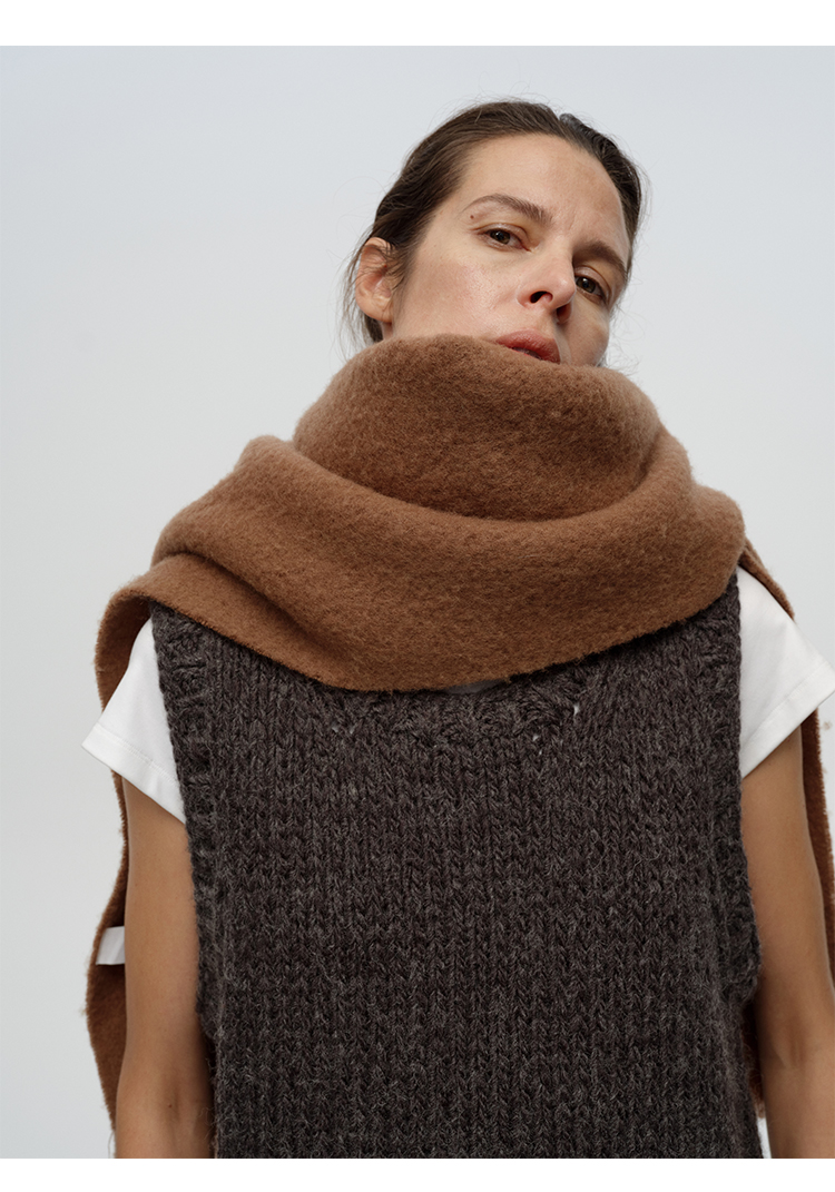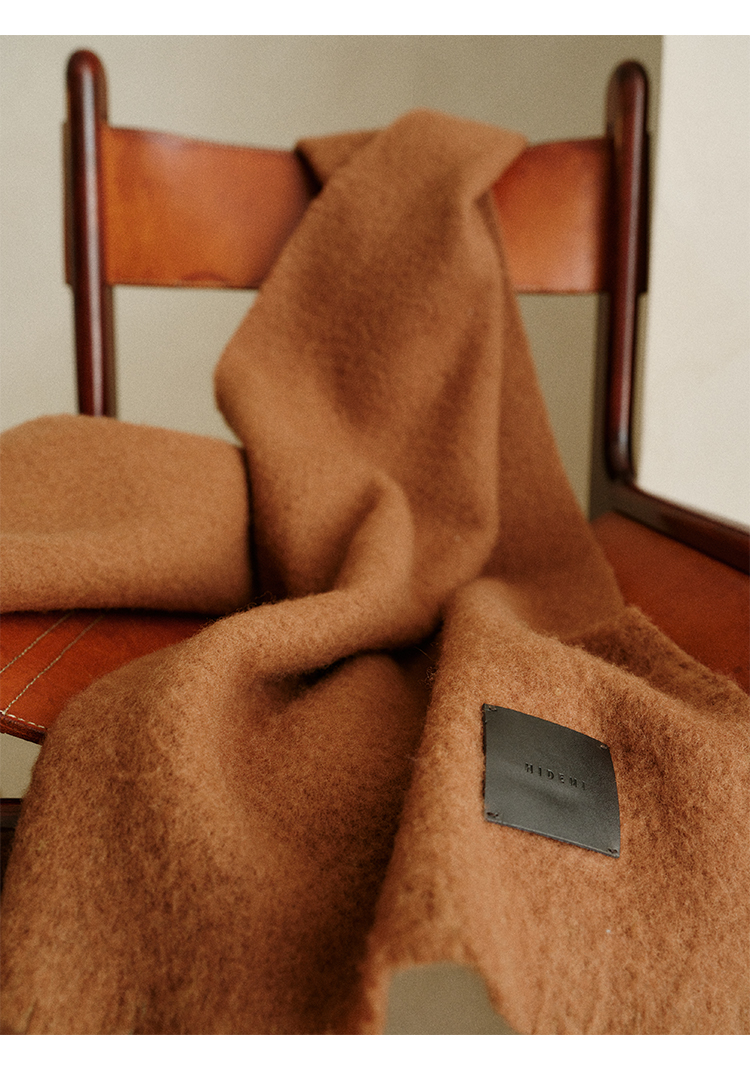 HIDEMI【辛芷蕾同款】进口羊羔绒拉毛做旧感加厚款皮标系列超大围巾披肩 驼色/黑色