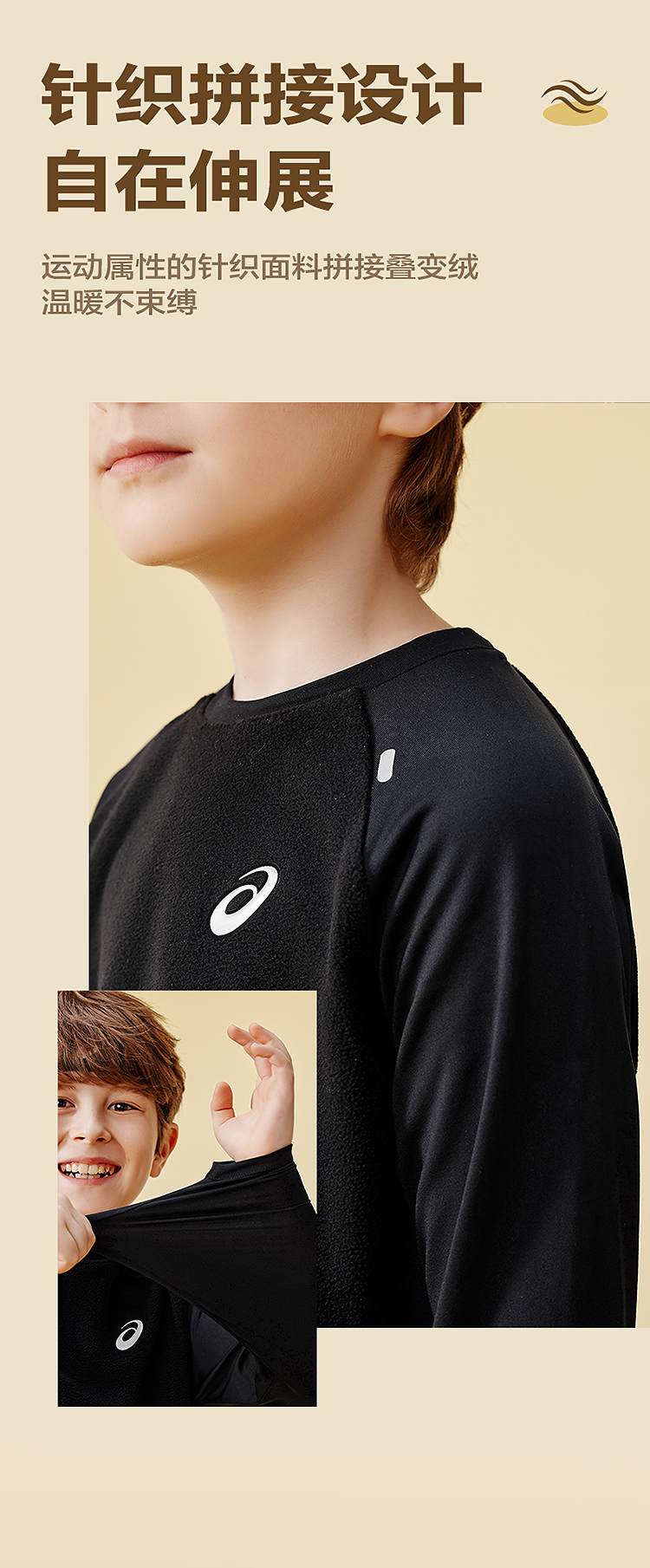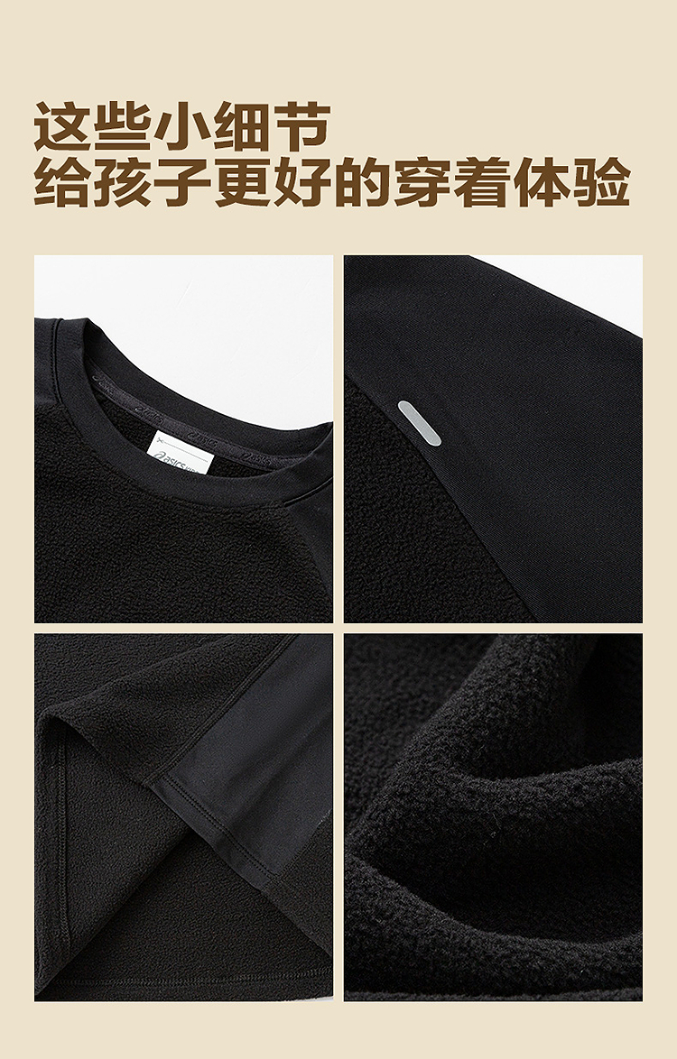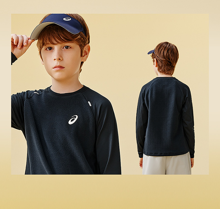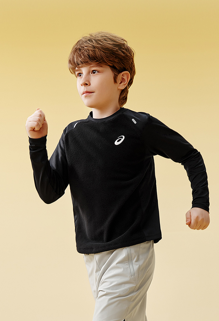 ASICS/亚瑟士童装25年秋季中大童摇粒绒长袖T恤保暖透气运动百搭