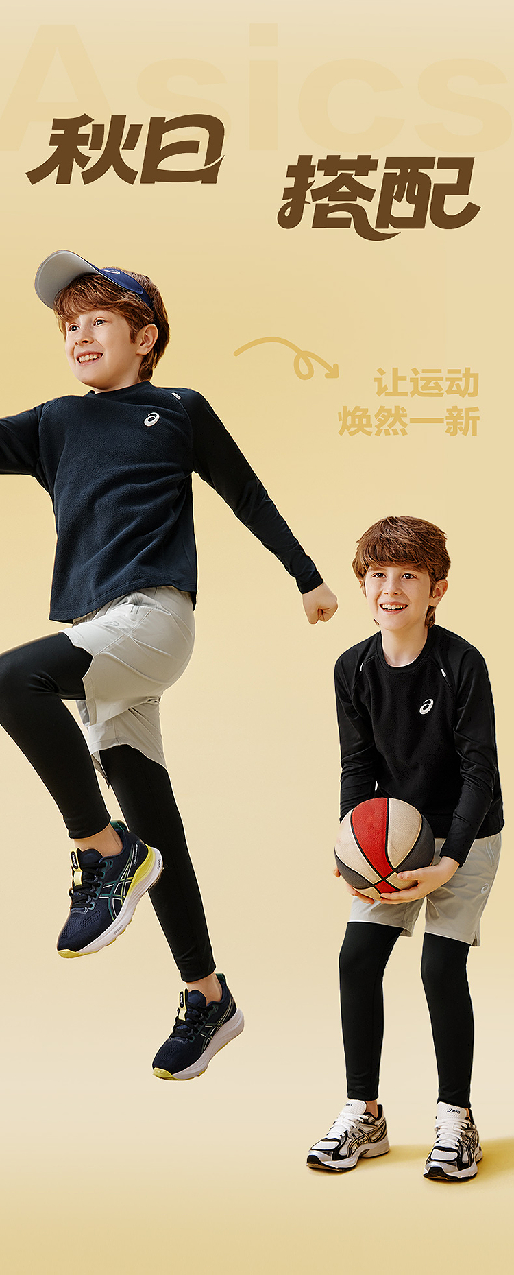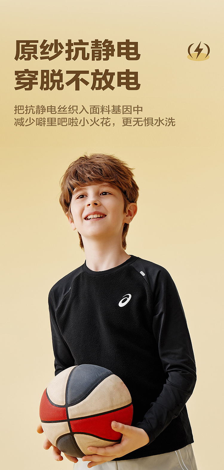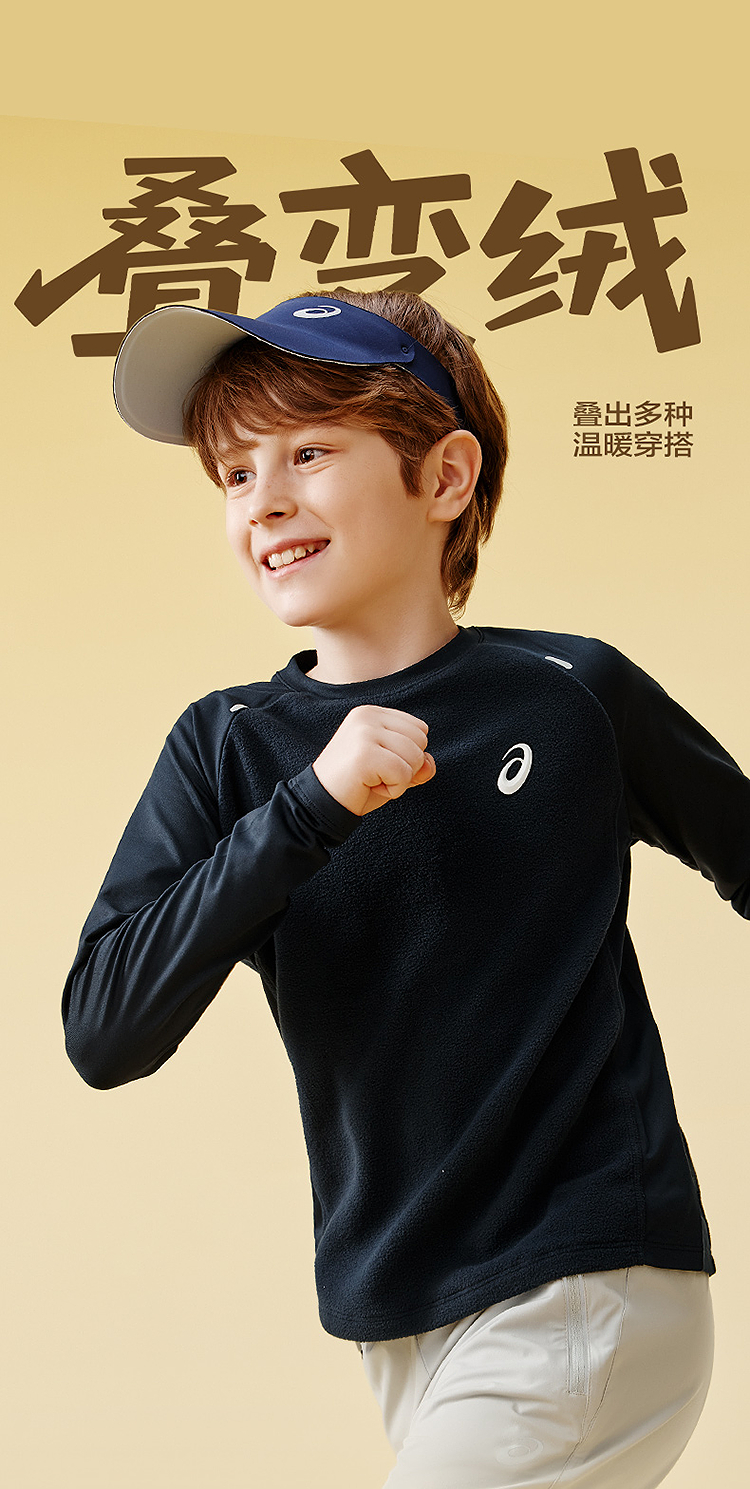 ASICS/亚瑟士童装25年秋季中大童摇粒绒长袖T恤保暖透气运动百搭