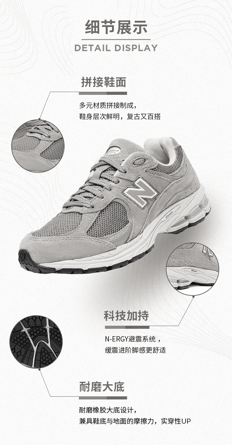NEW BALANCE/NB 男女款 2002R 低帮复古舒适运动休闲跑步鞋