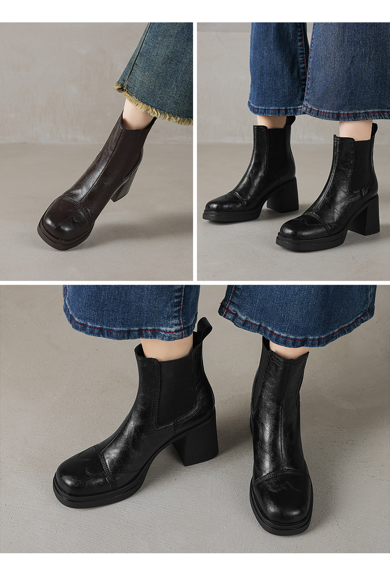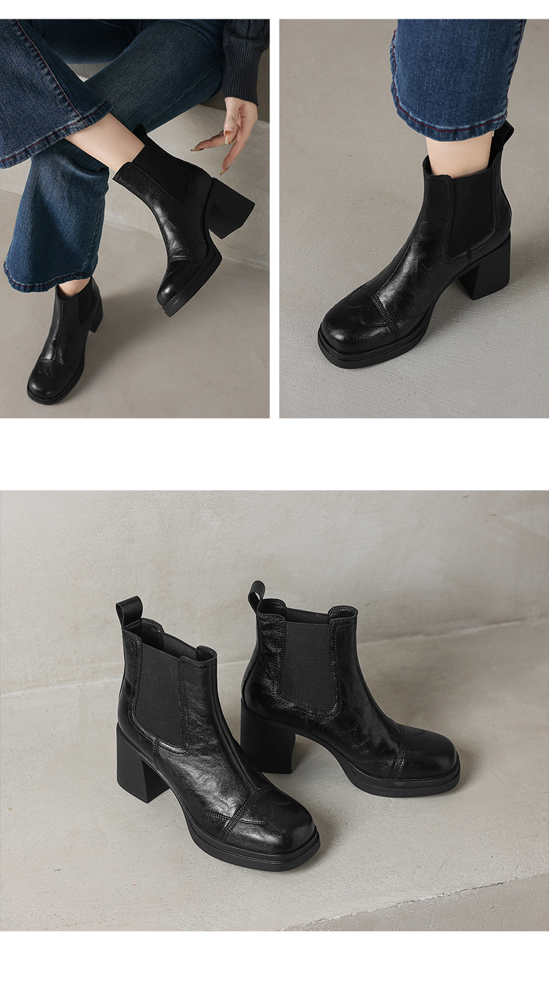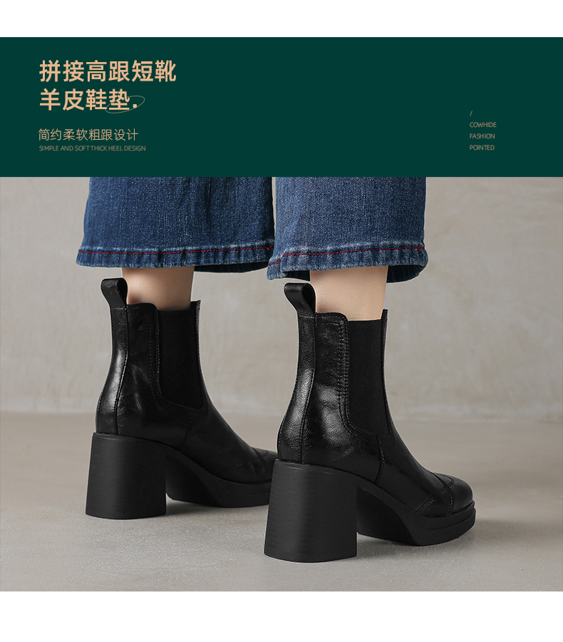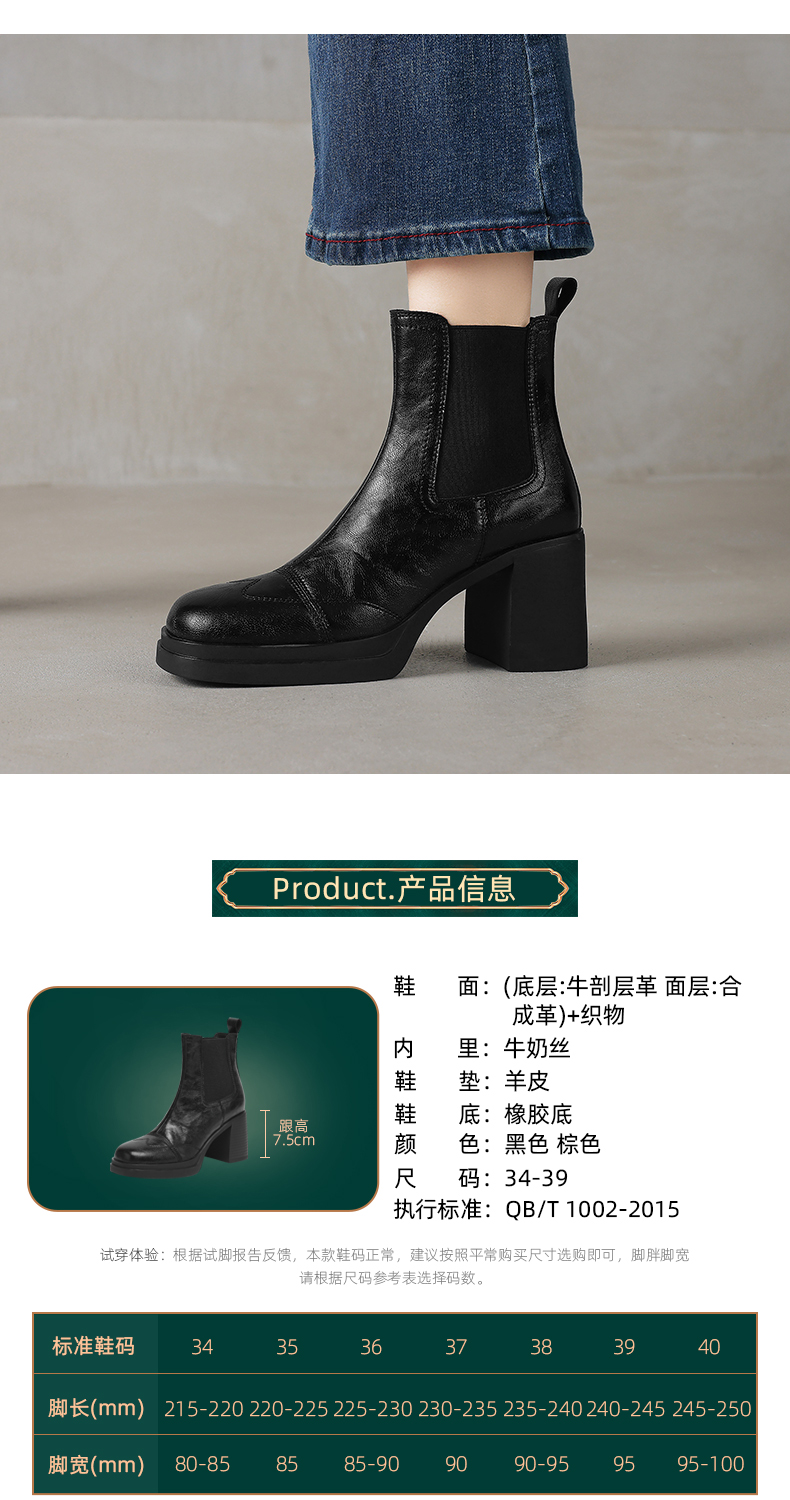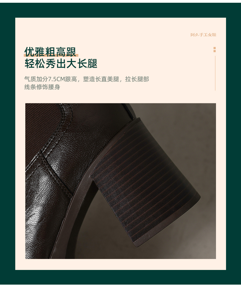 阿么手工女鞋时髦高跟切尔西靴2025新款百搭小个子短靴轻便7.5CM