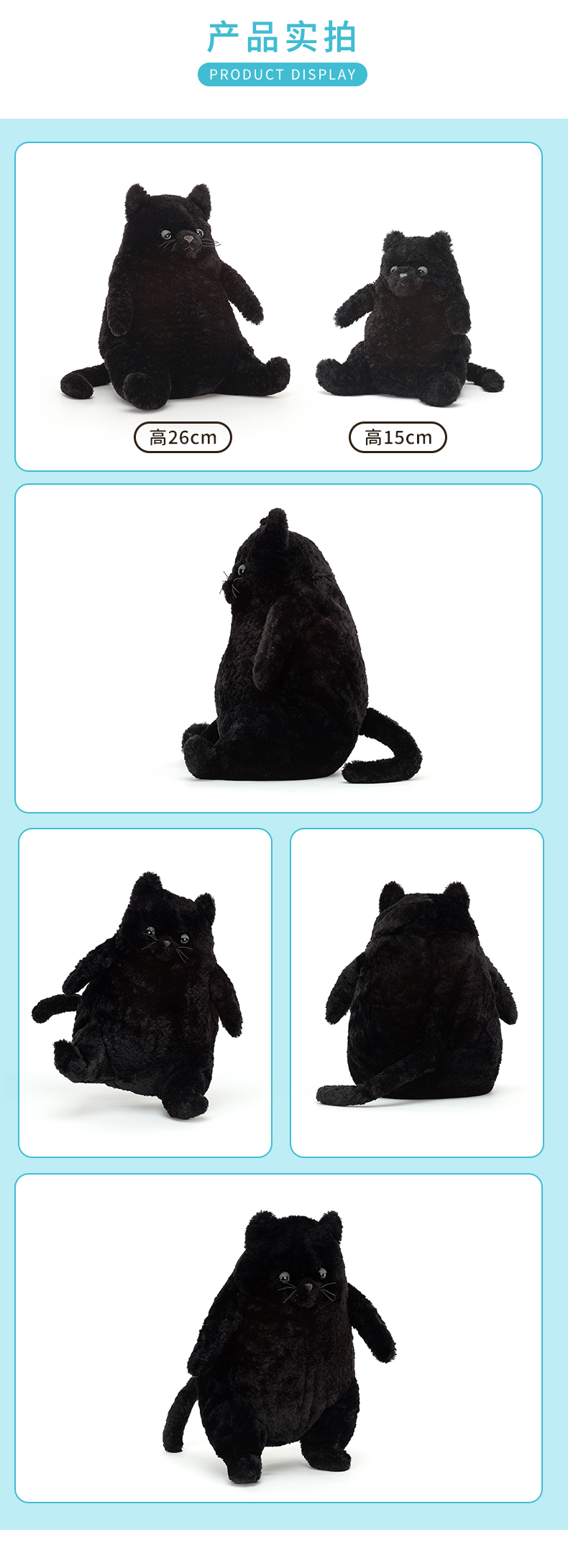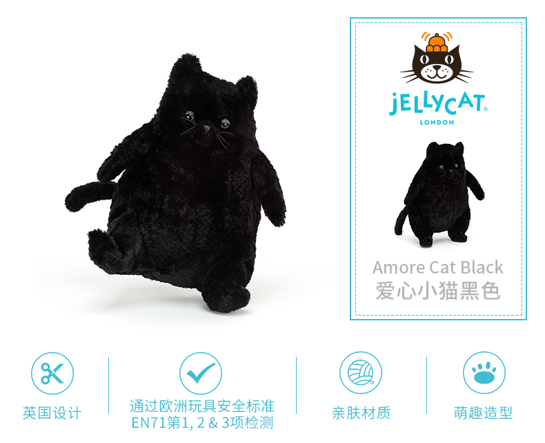 Jellycat 爱心小猫黑色 26cm