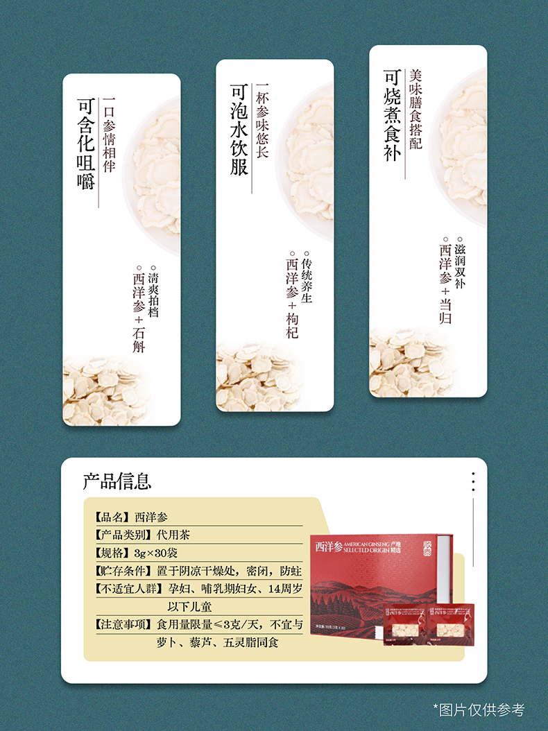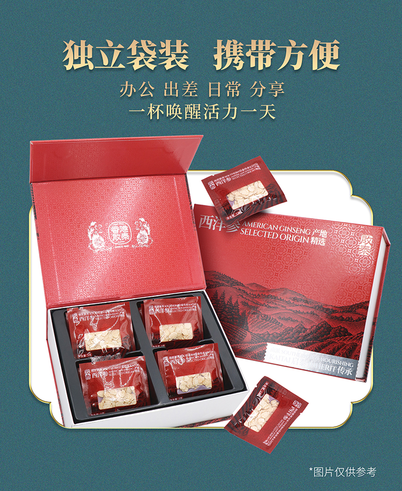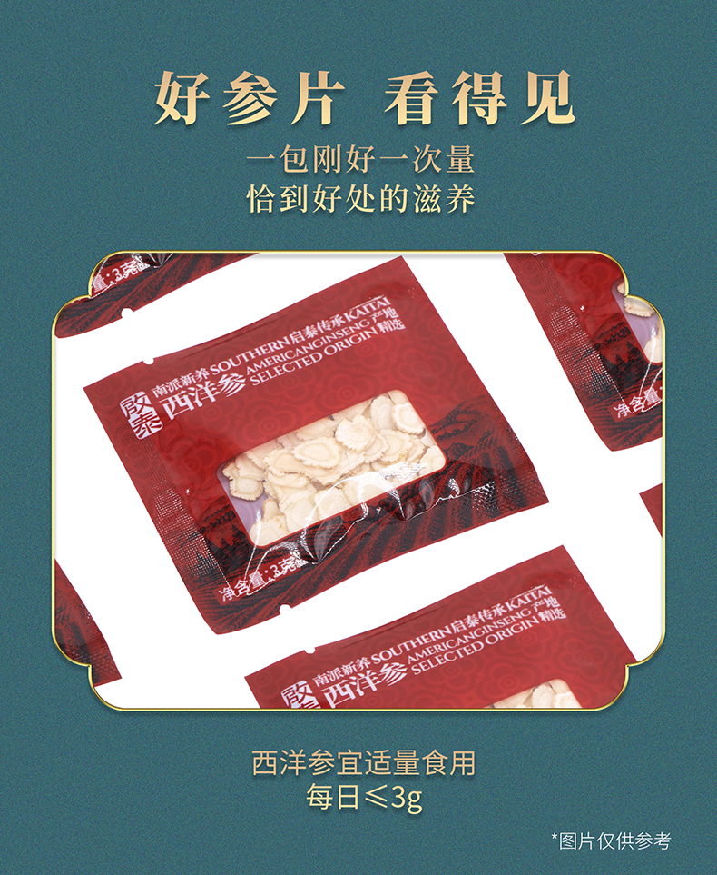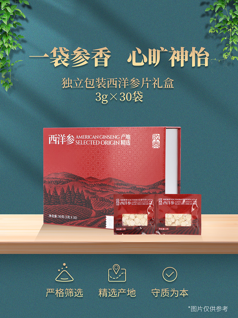 启泰西洋参礼盒 独立包装西洋参原枝营养品高端礼品参泡水人参片袋装3g×30袋/盒