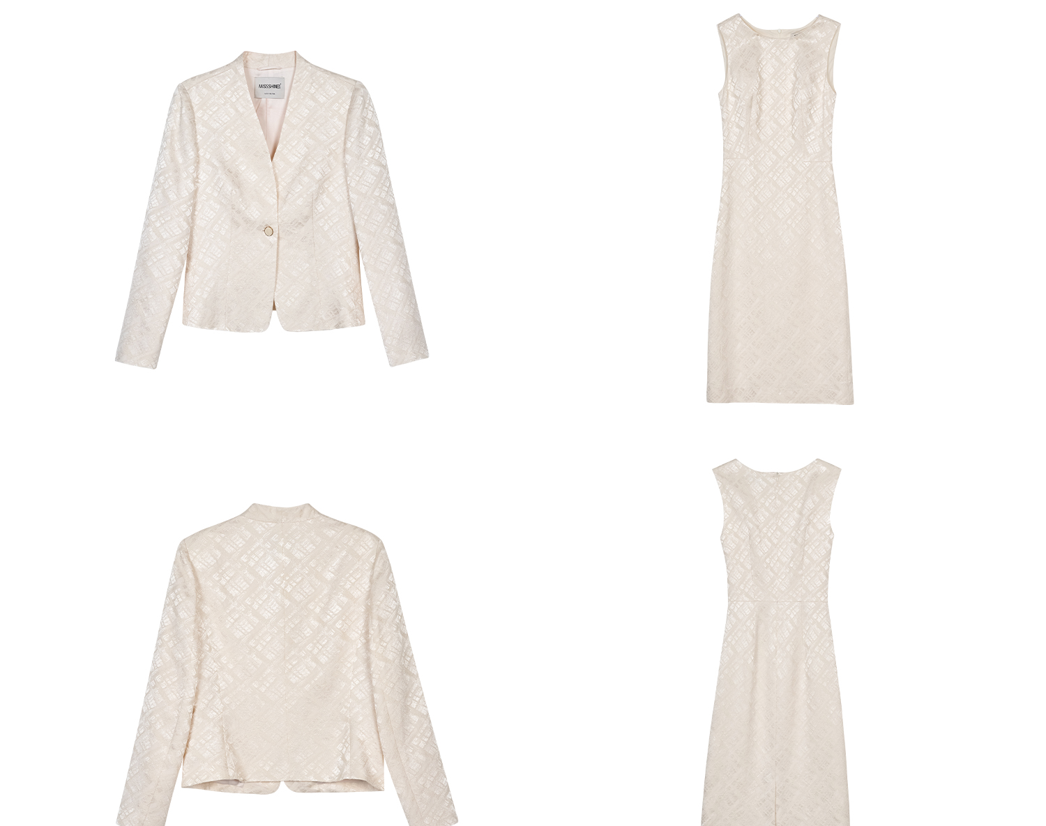 连衣裙面料:粘纤85.7%亚麻14.3%里料:聚酯纤维100%外套面料:粘纤45.4%莱赛尔42.4%亚麻12.2%里料:聚酯纤维100%