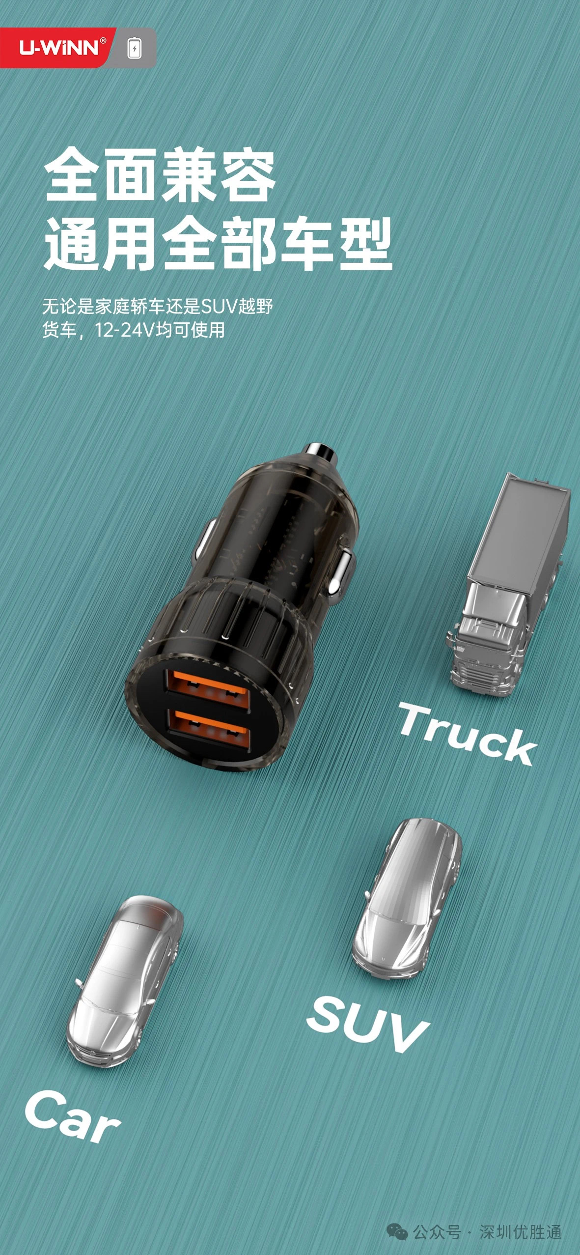 4A双usb接口朋克车充全兼容透明车载充电器汽车卡车插座手机车充