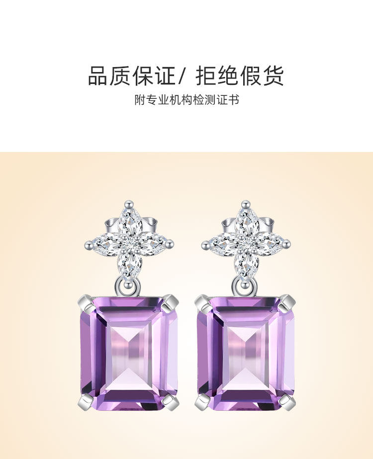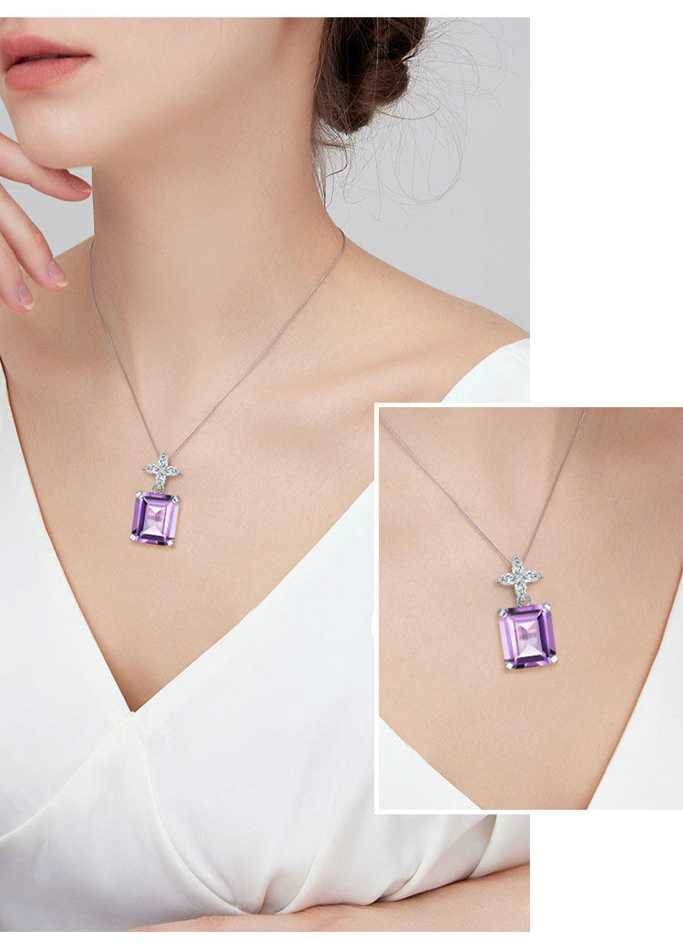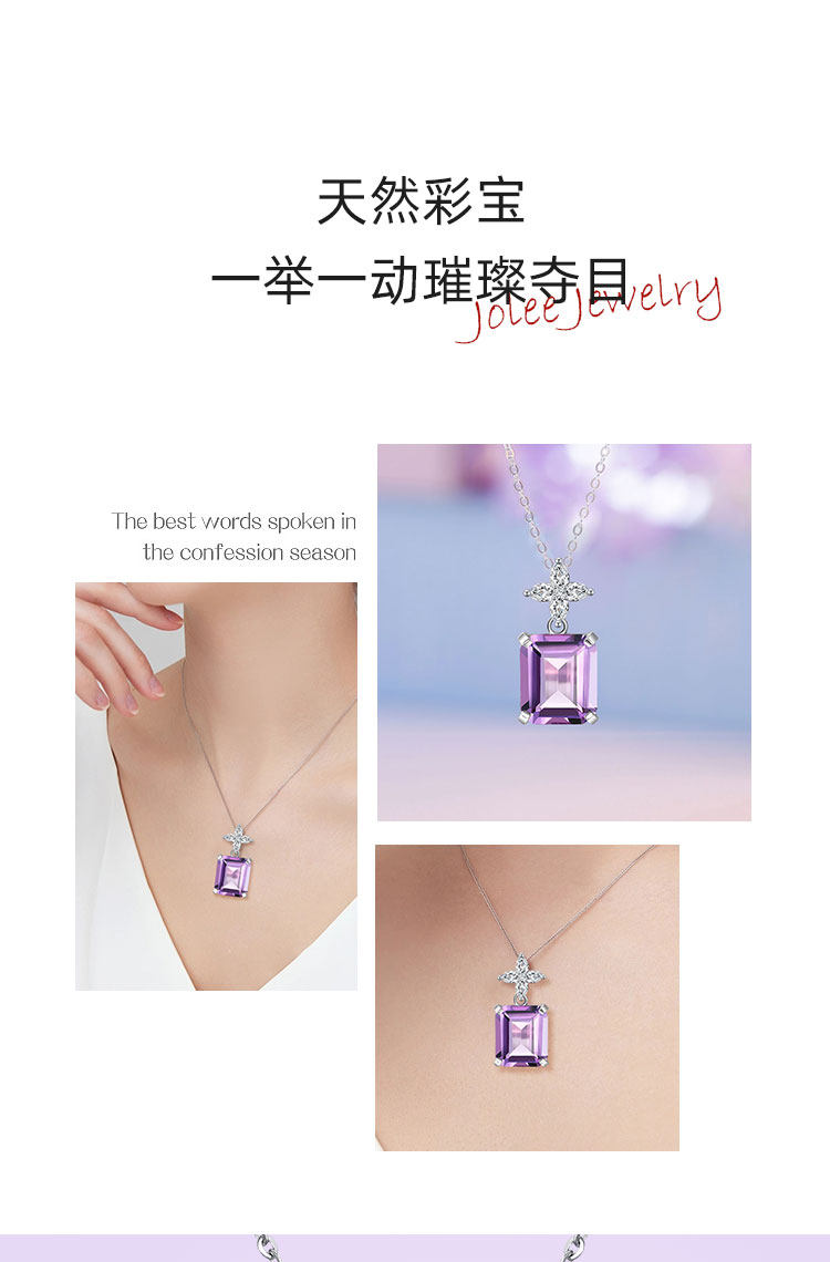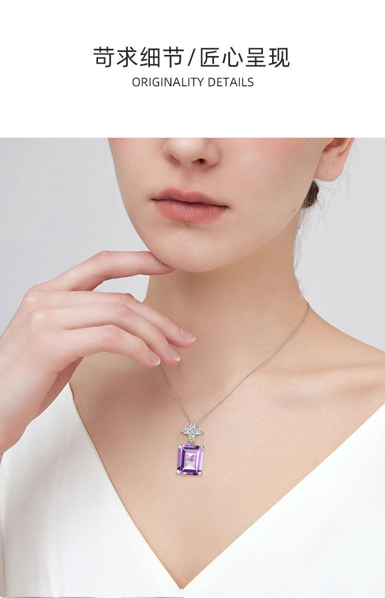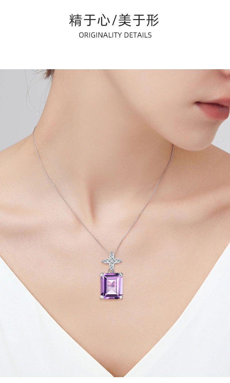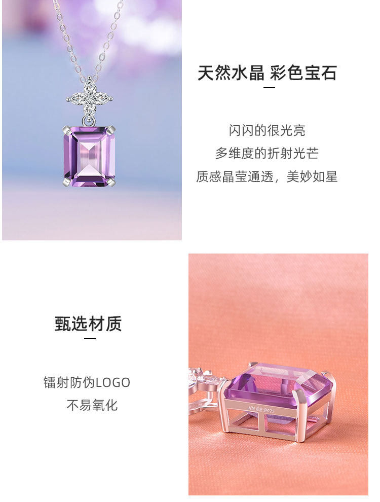 【紫水晶项链/耳钉】S925银轻奢吊坠饰品送女生节日礼物一物一证JP25009/JE25019-水晶CC