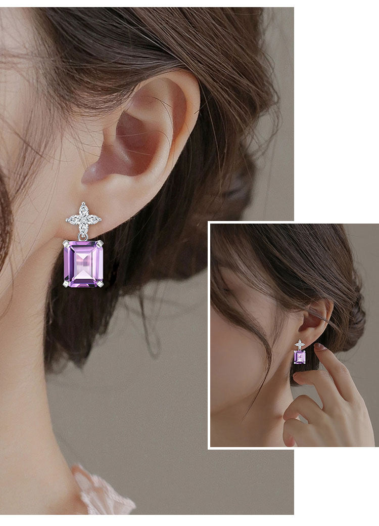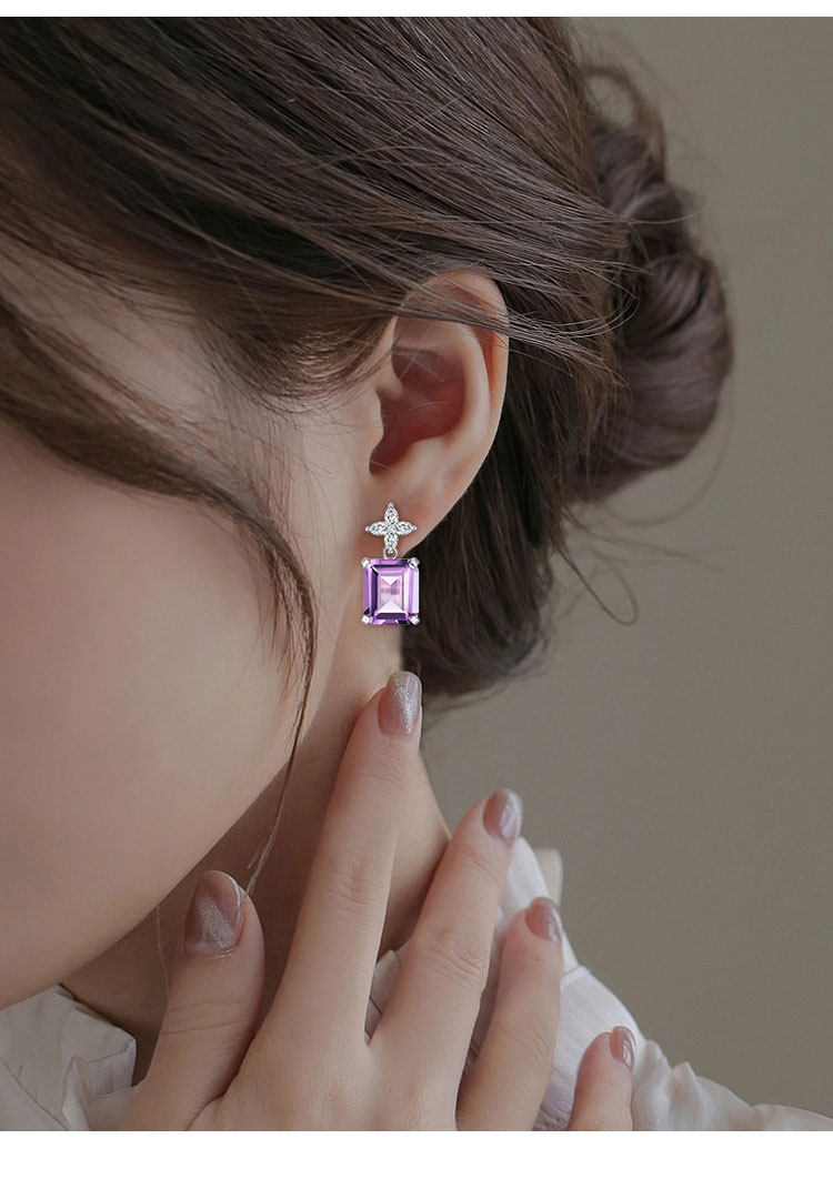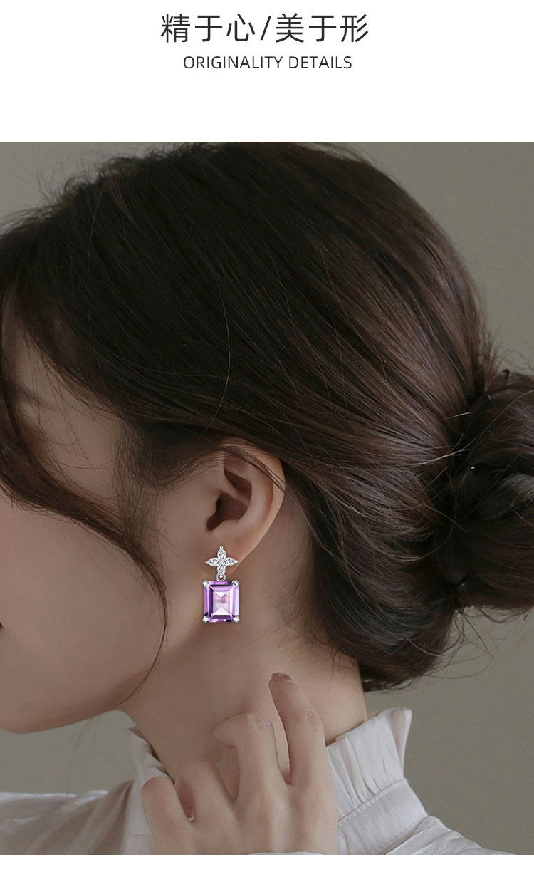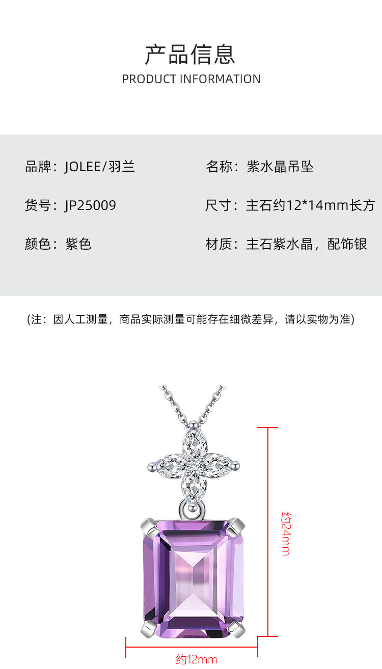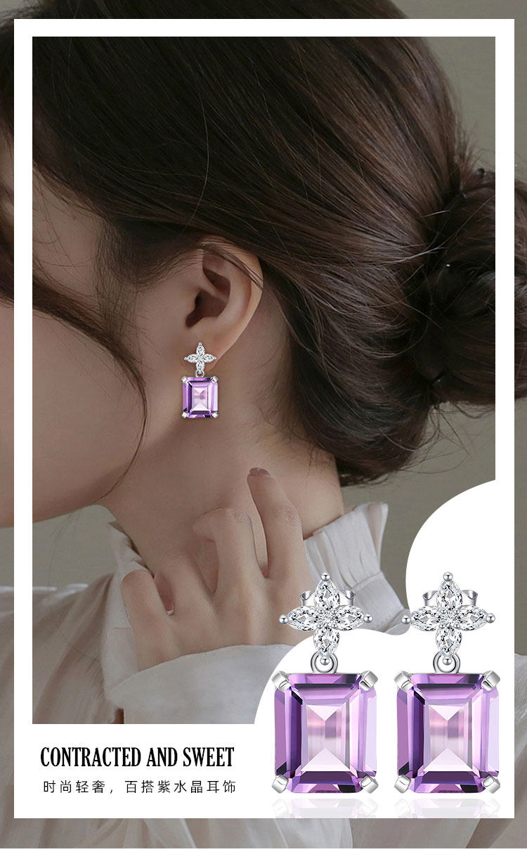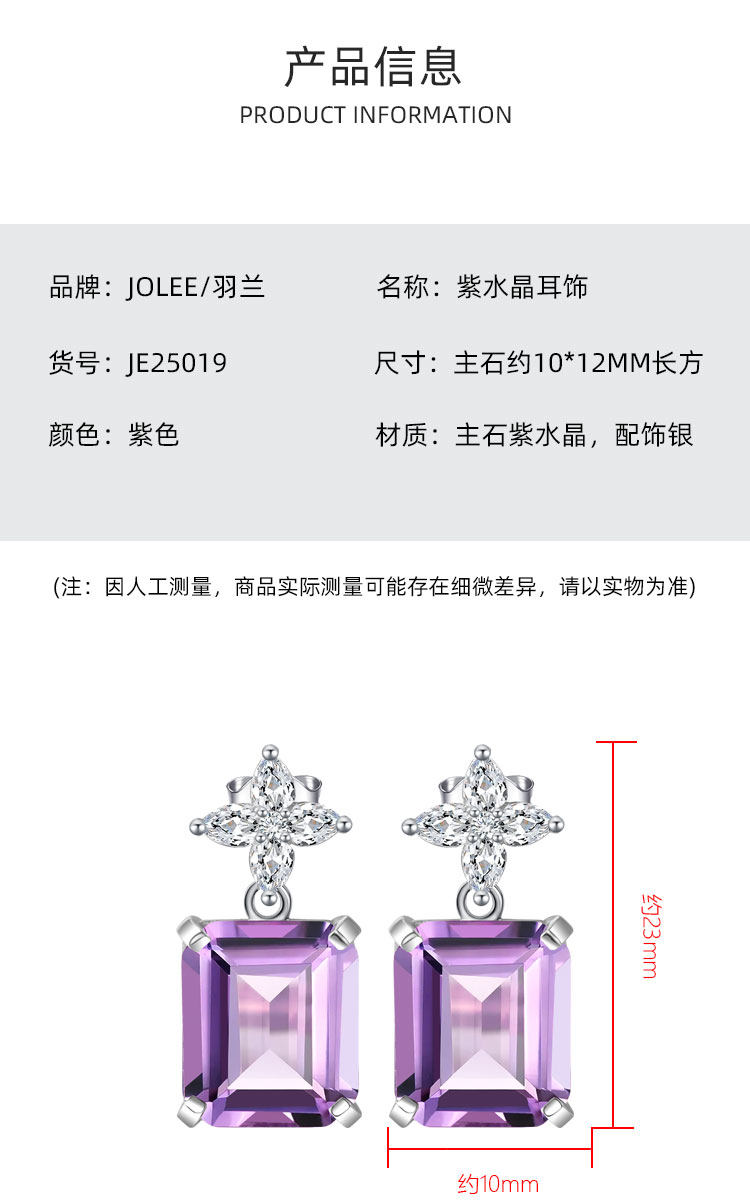 【紫水晶项链/耳钉】S925银轻奢吊坠饰品送女生节日礼物一物一证JP25009/JE25019-水晶CC