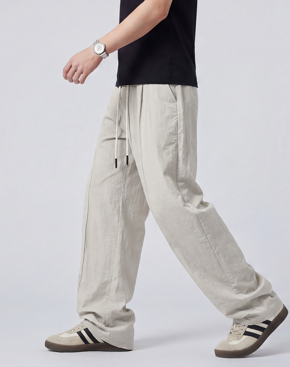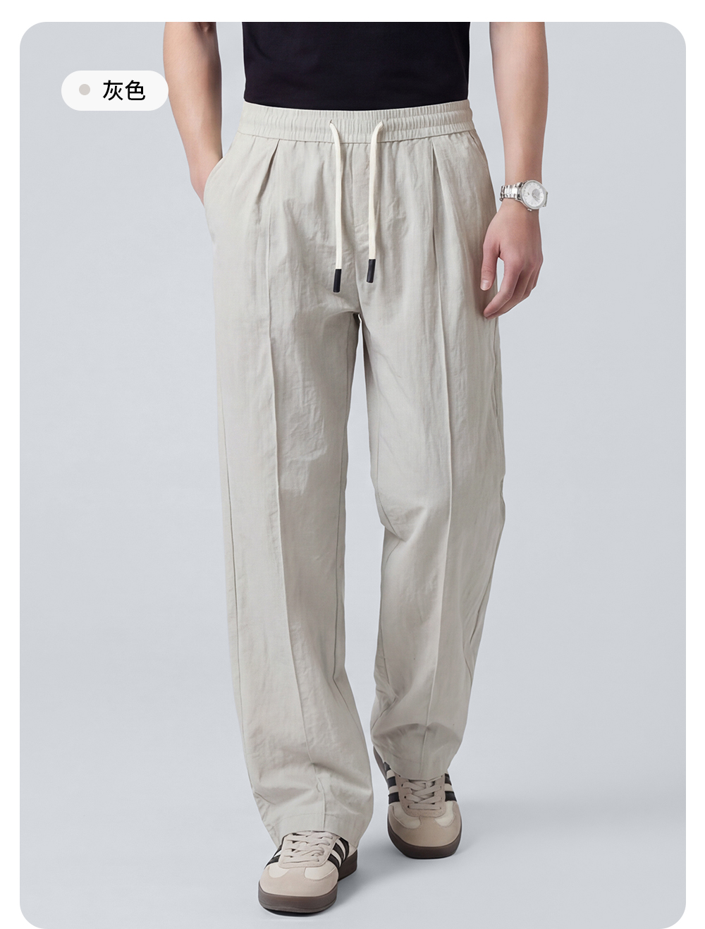 圣得西直筒休闲裤男2025新款纯色设计感弹力垂顺西裤子
