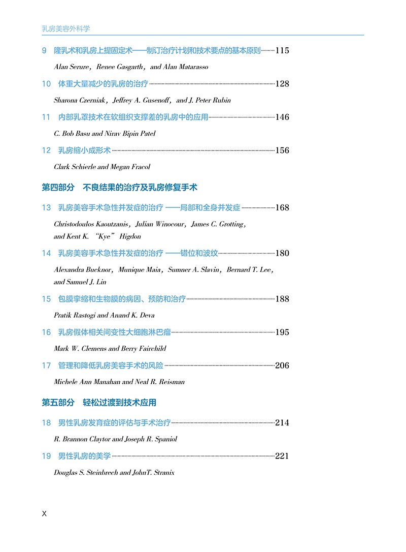 主译:罗盛康,男,现任广东省第二人民医院整形美容激光中心主任。擅长乳房整形、疤痕修复、人体整形等,有丰富的临床工作经验。从事各类胸部整形近30余年,长期致力于研究世界乳房整形前沿技术,双平面丰胸技术的创始人,做过上万例好评的丰胸手术,亲手缔造了50000多位女性的完美蜕变。在行业内影响深远,被业界尊称中国丰胸教父,亚洲美胸圣手!主持国家、省级科研课题9项。韩宝三,男,1973年生,医学博士,博士后,副主任医师,中国民主同盟盟员。中国抗癌协会乳腺癌专业委员会青年委员,中国光学学会生物医学光子学委员会青年委员,中华医学会上海市分会会员,中国抗癌协会会员。董新,厦门美莱整形中心副主任,在整形美容行业工作快二十年,拥有非常扎实的理论基础知识和丰富的临床实践经验,他曾在辽宁省人民医院整形科工作,跟着名师高景恒医师学习,多次被邀请到韩国,日本,新加坡等地区参加整形技术交流大会及培训活动。